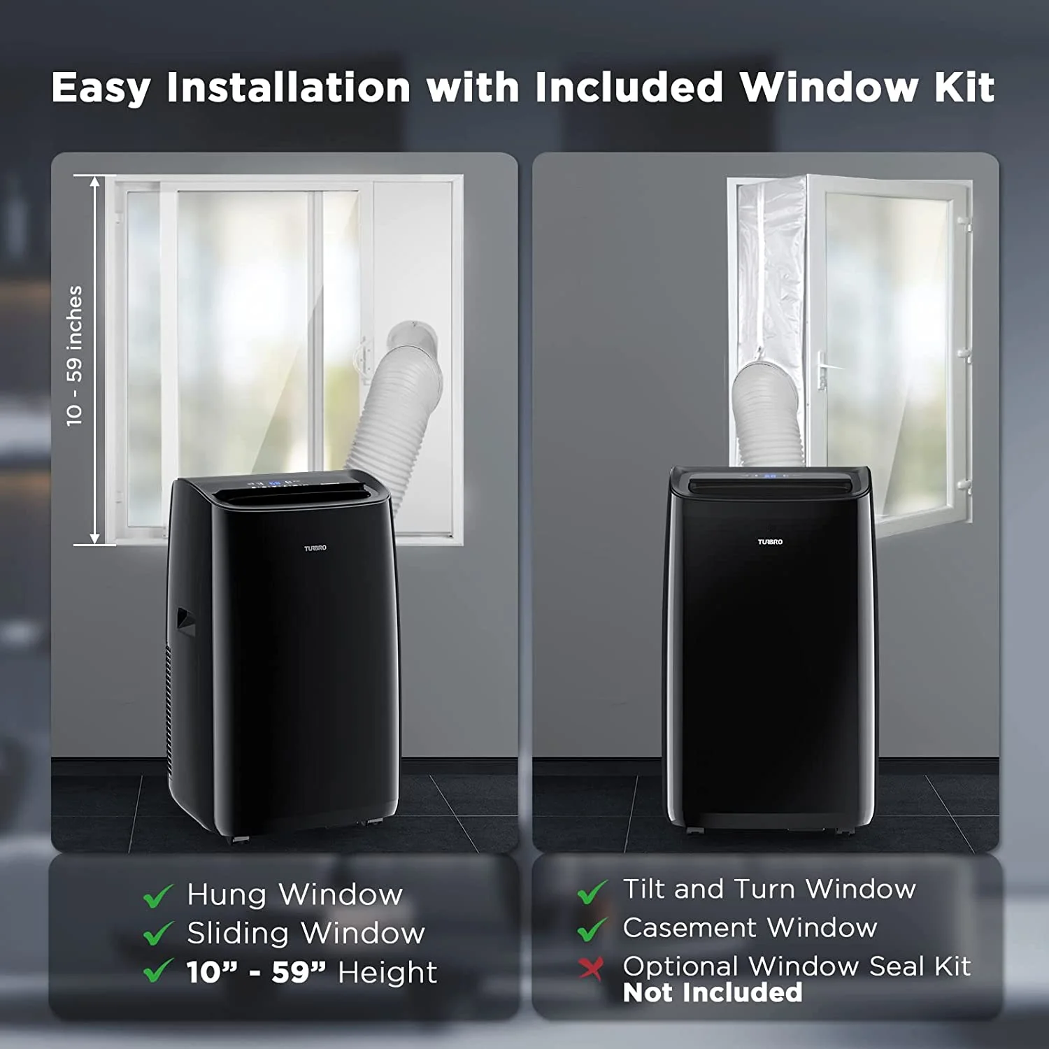- ??[Easy-Peasy Installation] Installation can usually be completed in less than 15 minutes. The full window kit allows you to run the heat exhaust hose to any vertical or horizontal sliding window. A detailed installation guide is included in the box.