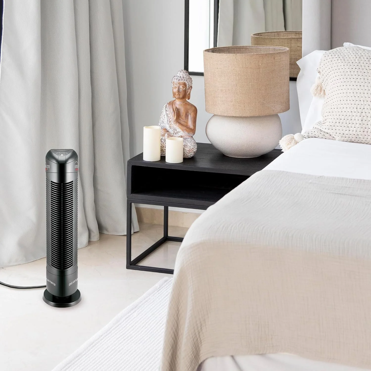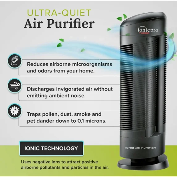- Removes 99.9% of Irritants: Premium ionizer technology removes airborne pollutants including dust, pollen, pet dander, smoke particles, & household odors