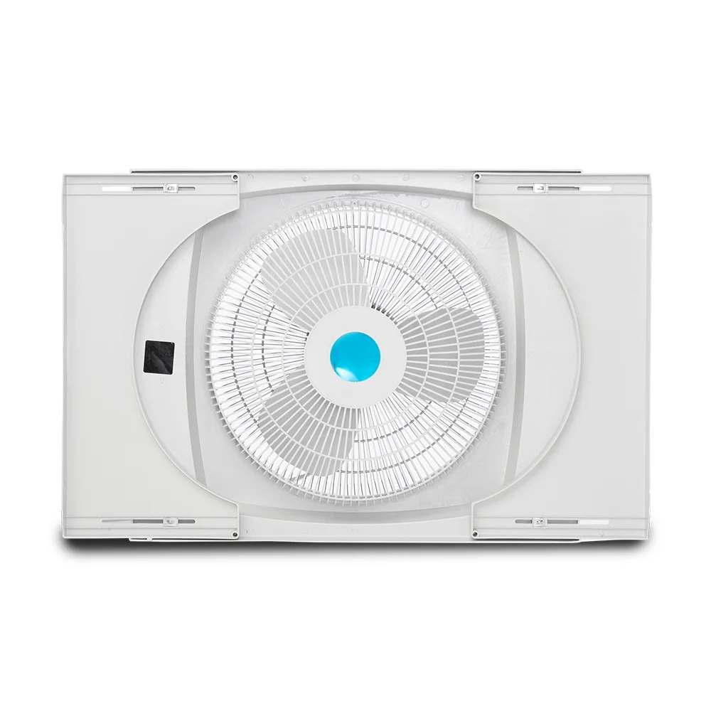 - Storm Guard system allows window to be closed behind fan during inclement weather or to secure home