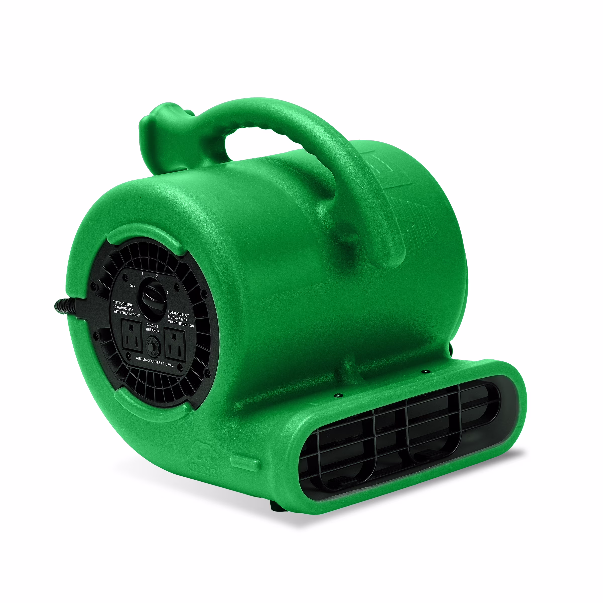 Dry light water damaged or just cleaned carpeting and flooring with the B-AIR Vent VP-25 Air Mover. The B-AIR Vent VP-25 Air Mover is ideal for use throughout the home. Providing powerful air circulation with a horsepower motor, this smaller unit is ideal for homeowners, retail businesses, and contractors. With an easy to carry, ergonomic handle, the B-AIR Vent VP-25 Air Mover gives you the many of the benefits of larger blowers without the inconvenience of their size and weight. Use the B-AIR Vent VP-25 Air Mover for drying light water damaged areas or to dry carpet and/or floors that have just been cleaned. The B-AIR Vent VP-25 is daisy chain capable for up to five units, delivering a torrent of air to quickly dry a variety of flooring or odd jobs. With its 3 speed settings, the dryers can efficiently circulate up to 900 rated cubic feet per minute (Rated CFMs). The VP-25 can be positioned in 3 angles to dry floors, walls and ceilings. Just like any B-Air products, Vent VP-25 is made with durable roto-molded housing that can withstand extreme weather environment and rough handling of professional contractors.