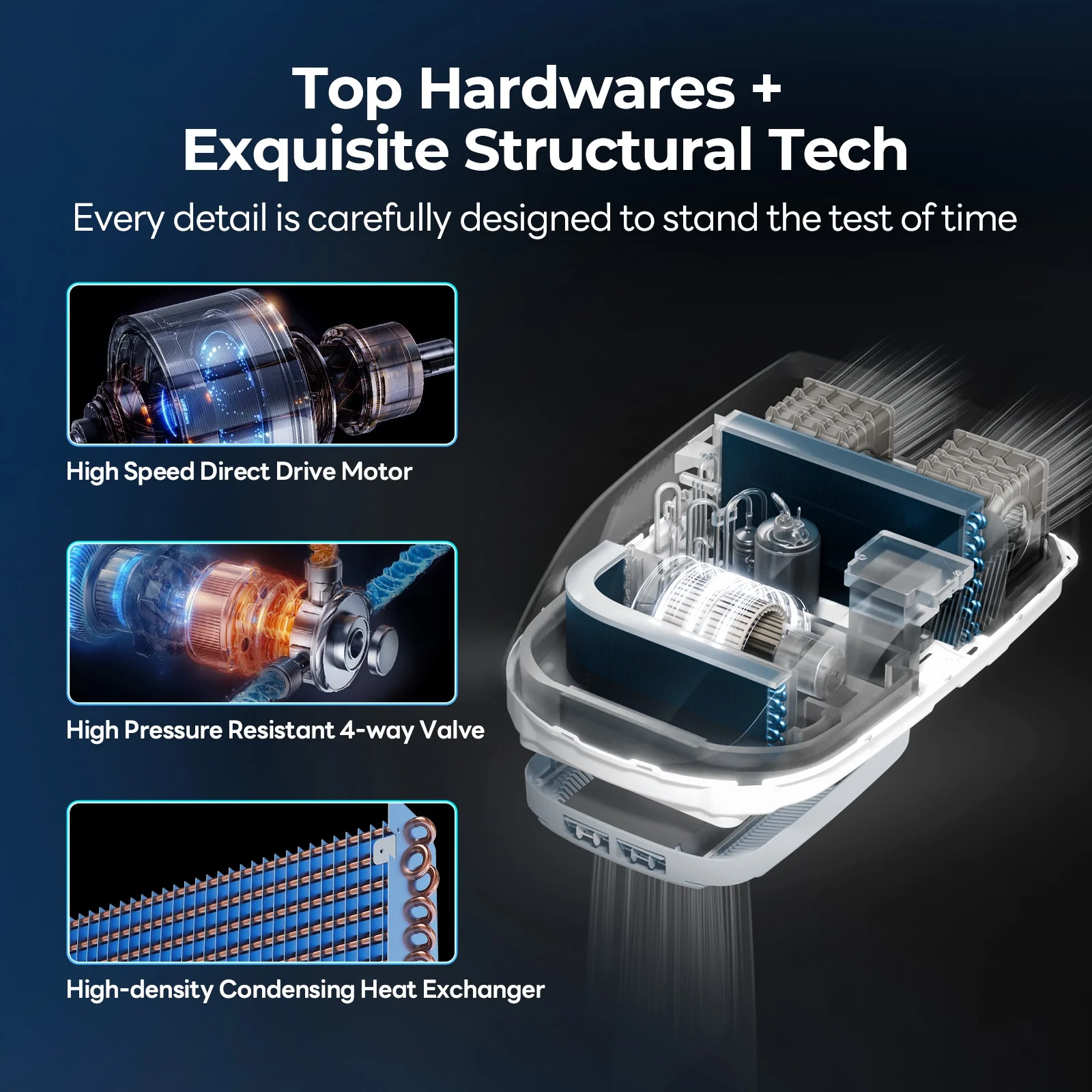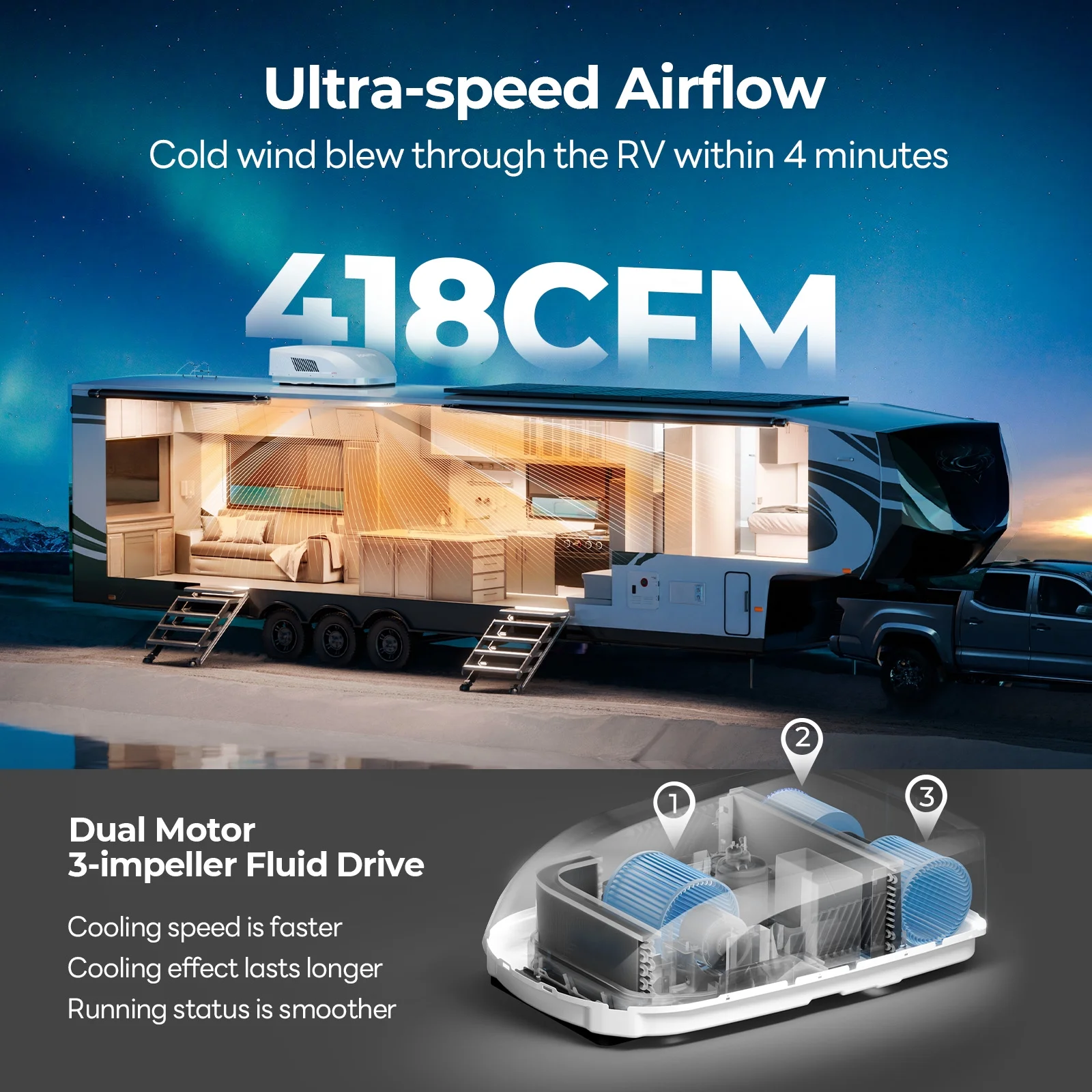 - 115-Volts A/C power 60Hz and 12-Volts D/C power, 13,500 BTU cooling, Eco-friendly efficient R32 refrigerant for rapid cooling.
