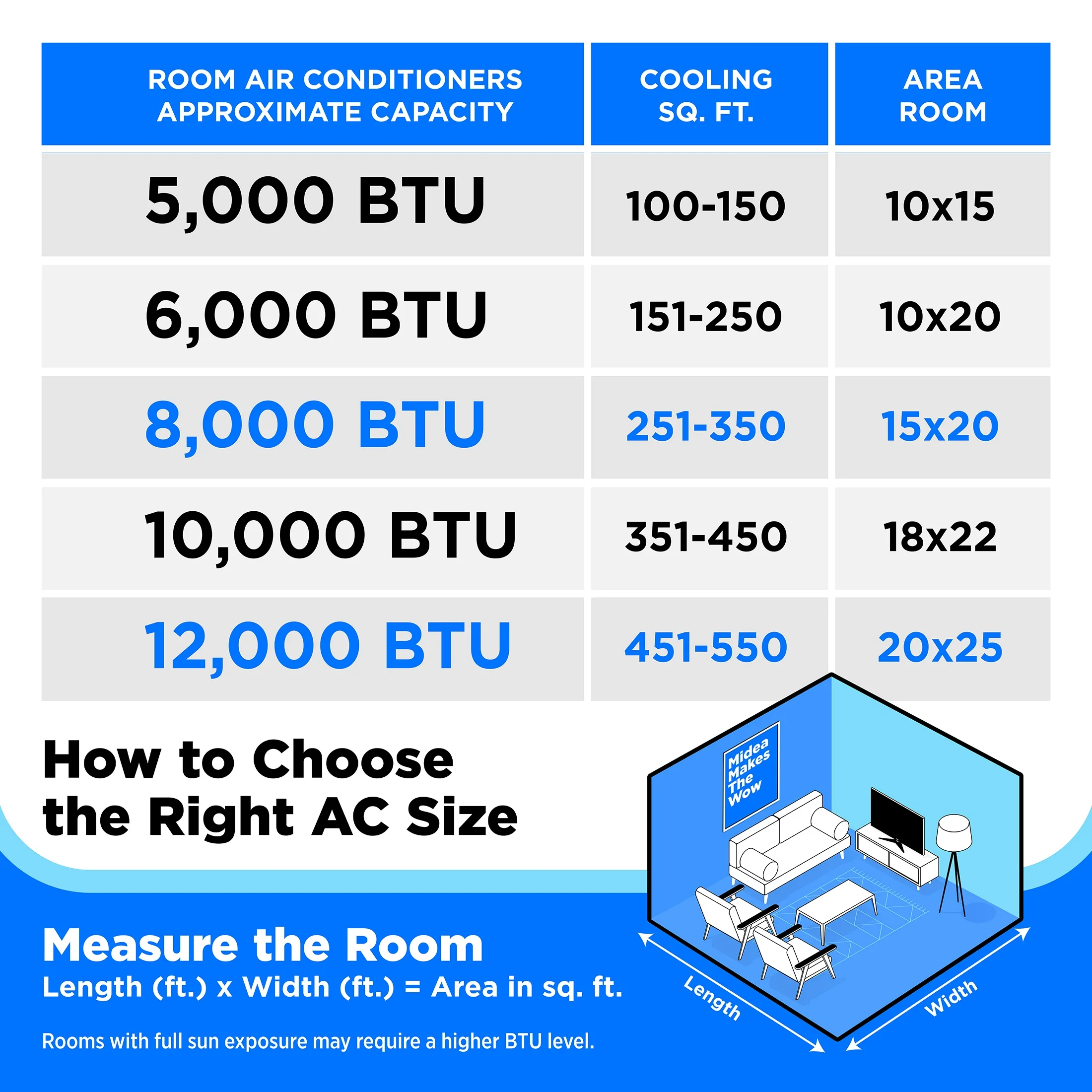 - Midea 8,000 BTU Smart Inverter U-Shaped Window Air Conditioner, 35% Energy Savings, Extreme Quiet, Cools up to 350 Sq. ft., MAW08W1QWT-T, New