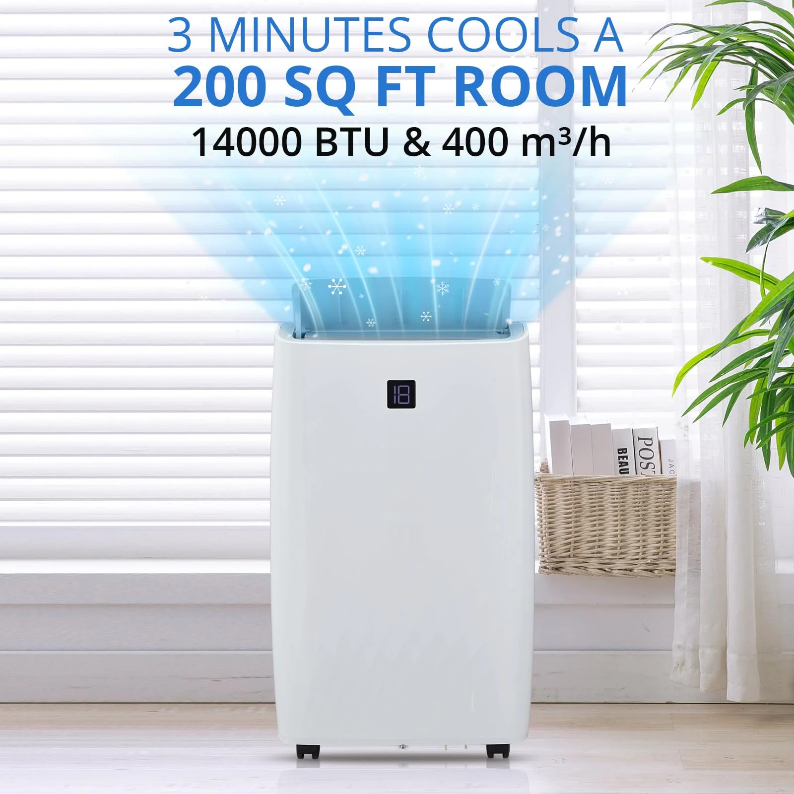 - Rapid Cooling Performance: This portable air conditioner delivers quick cooling in just 3 seconds, with a powerful 14,000 BTU cooling capacity. It's perfect for cooling large rooms up to 750 sq. ft, ensuring a comfortable atmosphere even during the hottest summer days.