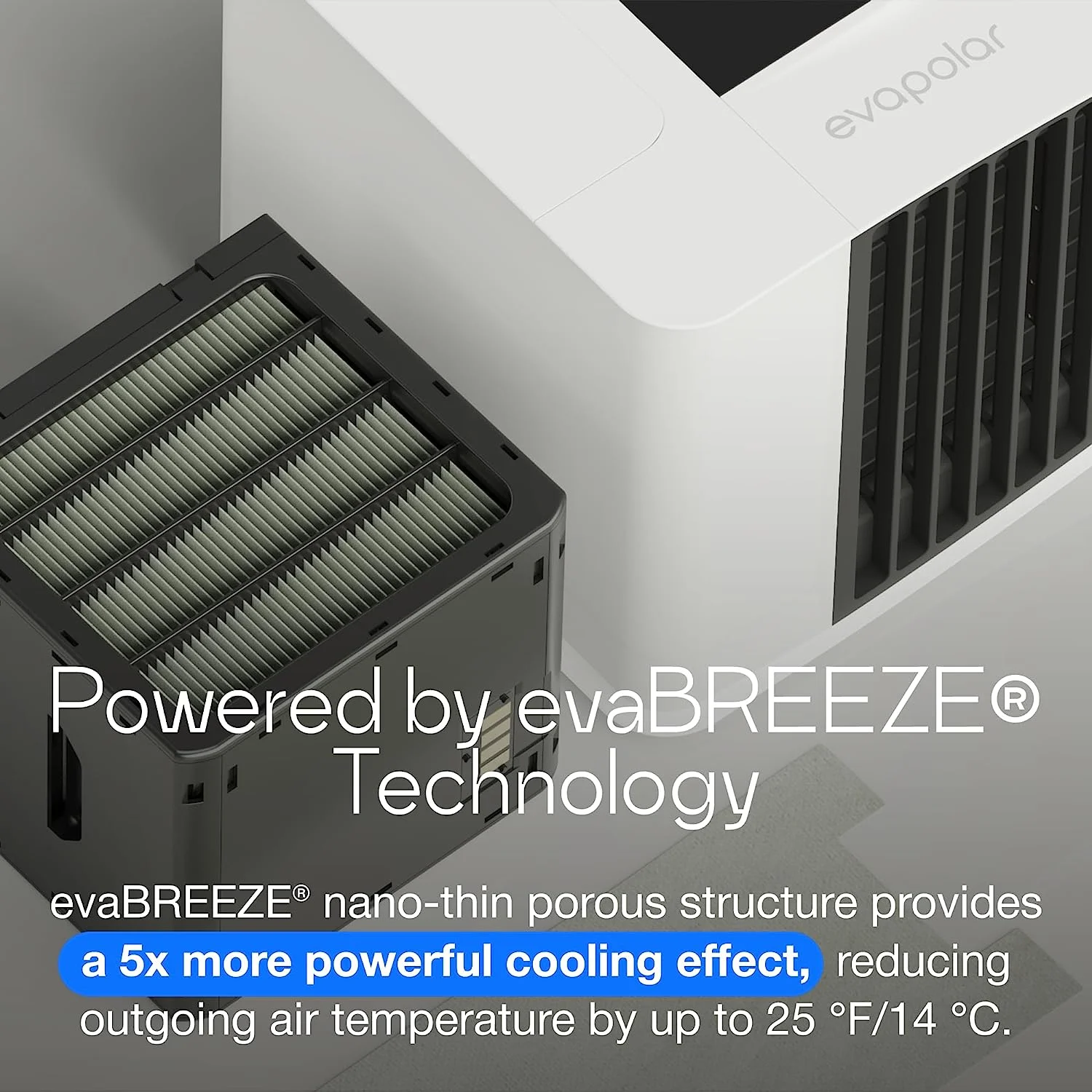 - 100% SAFE FOR BREATHING �C Evapolar functionality is based on natural evaporative cooling powered by our patented Evabreeze technology that cools and humidifies the air in a most efficient, innovative, and eco-friendly way. Our material is made from long-lasting basalt fibers, which means no odor, no mold, no bacteria, and 100% safe for breathing. *Please, note: the natural color of evaBREEZE bazalt-based cartridge material may differ from white to dark green. Small amount of basalt dust inside the device is okay.