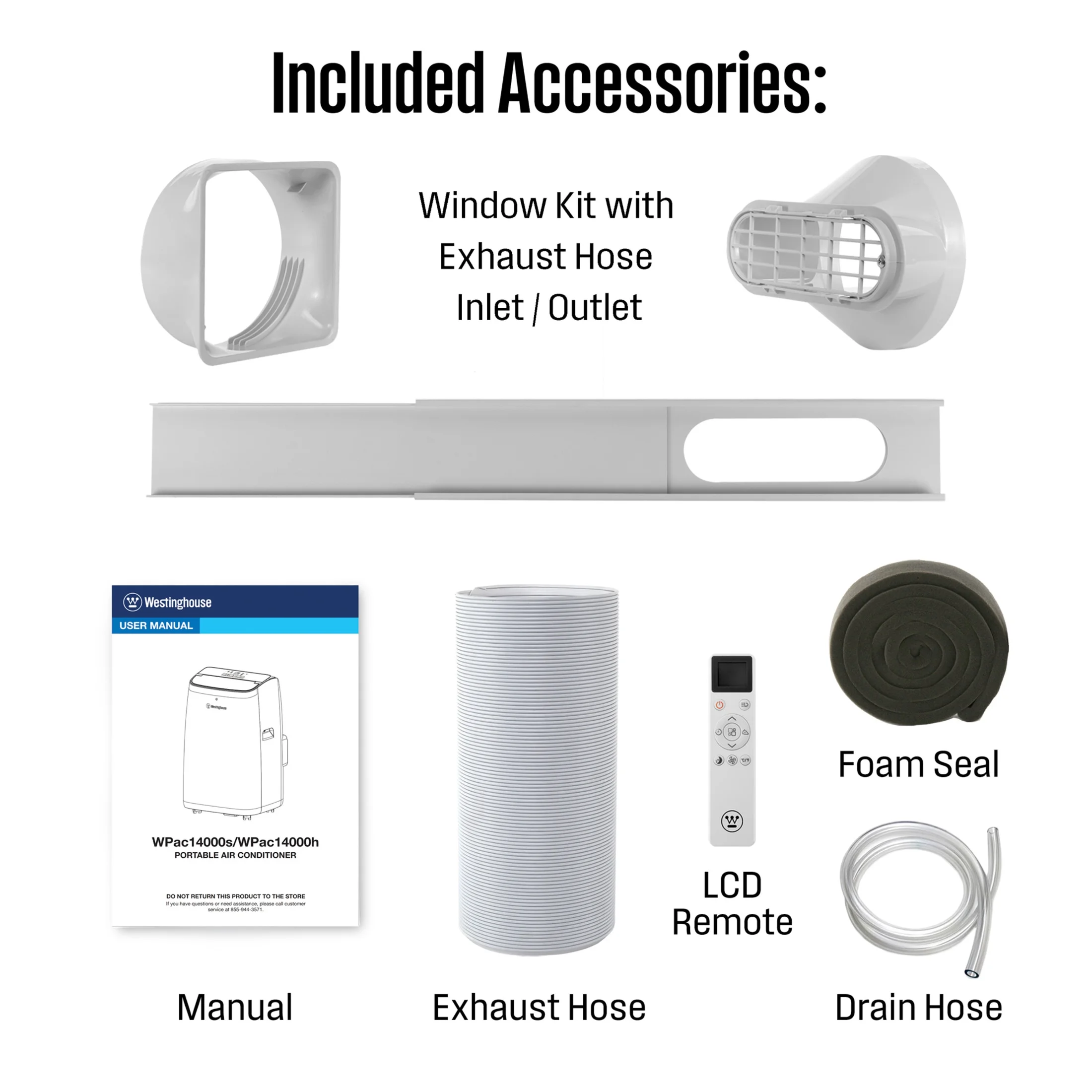 - IN THE BOX: REMOTE CONTROL, 2 AAA BATTERIES, CLEANABLE AIR FILTER INSTALLATION KIT: Exhaust Duct and Connector WINDOW VENT KIT: Quick-Adjust Window Panel with Extension Panel, Watertight Adhesive Foam Seal, Leak-Proof Rain Guard and Screen, Exhaust Cover