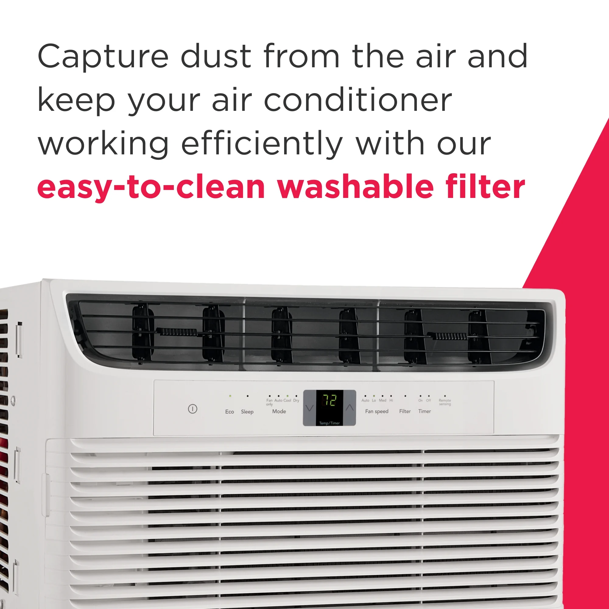 - Easy to Clean Filter: Capture dust from the air and keep your window air conditioner running efficiently with an easy to clean washable dust filter with an alert when it's time to clean