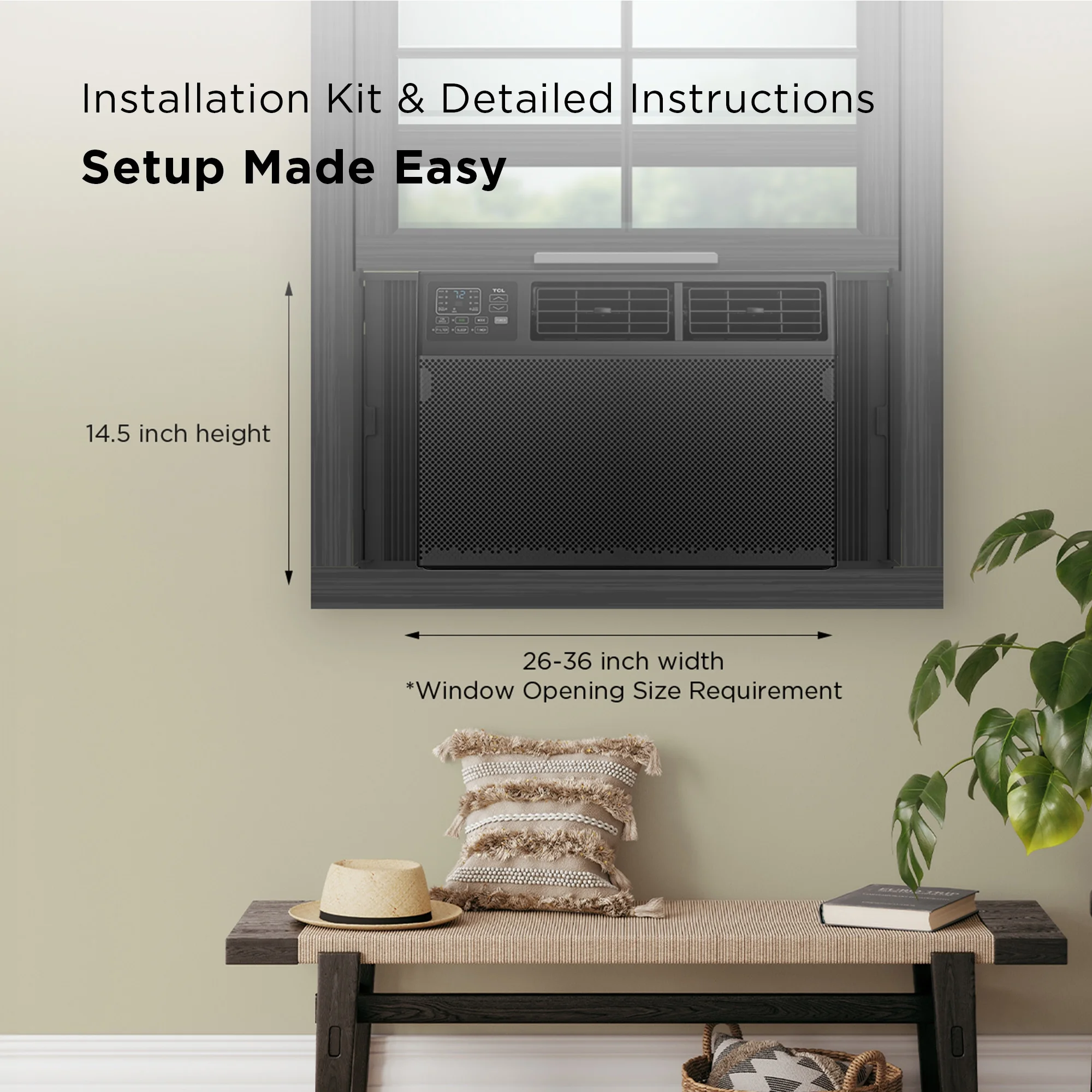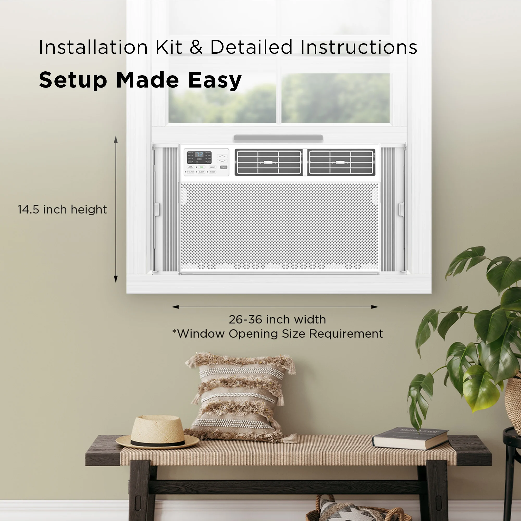 - SETUP MADE EASY: You don��t have to be an expert technician to set up your new window AC unit with the simple and easy installation kit. A screwdriver is required for setup but not included. Some window frames may require pre-drilled pilot holes (Window Size Requirement: 26-36 inch width, 14.5 inch opening height)
