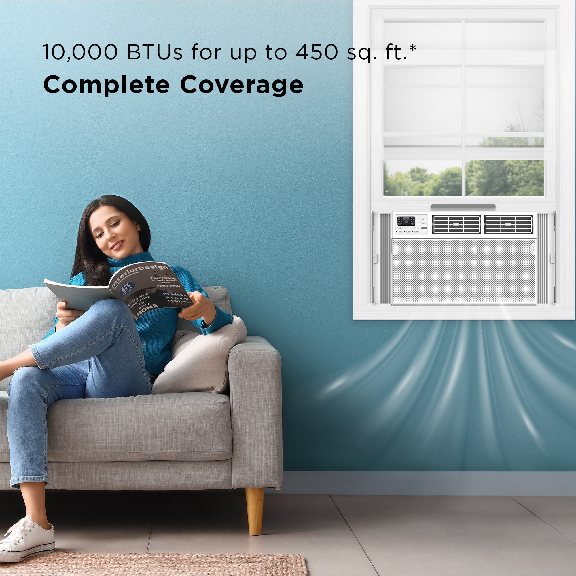 - MAXIMUM PERFORMANCE: The 10,000 BTU window air conditioner is powerful enough to cool rooms up to 450 sq. ft. and features multiple fan speeds that allow you to choose your level of comfort.