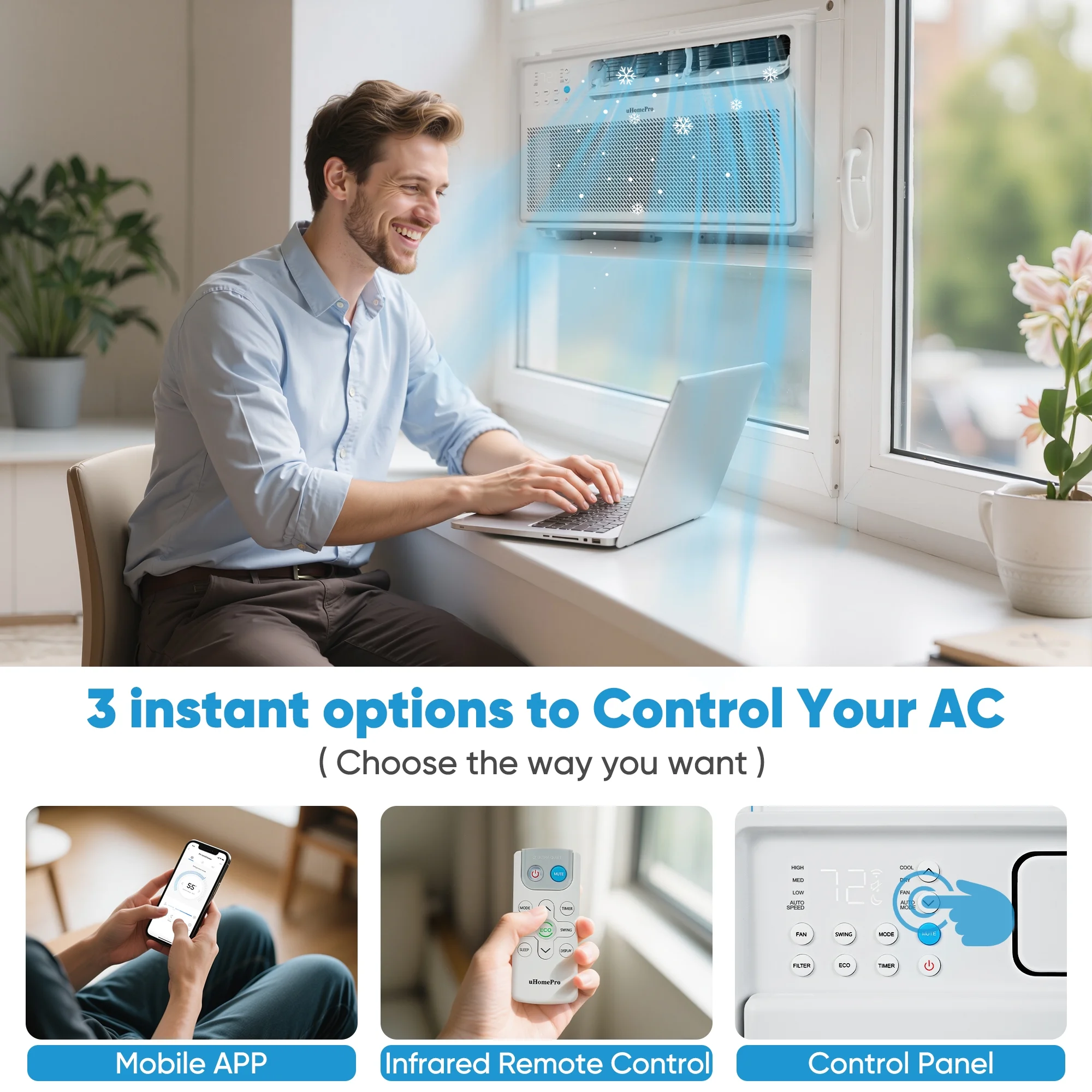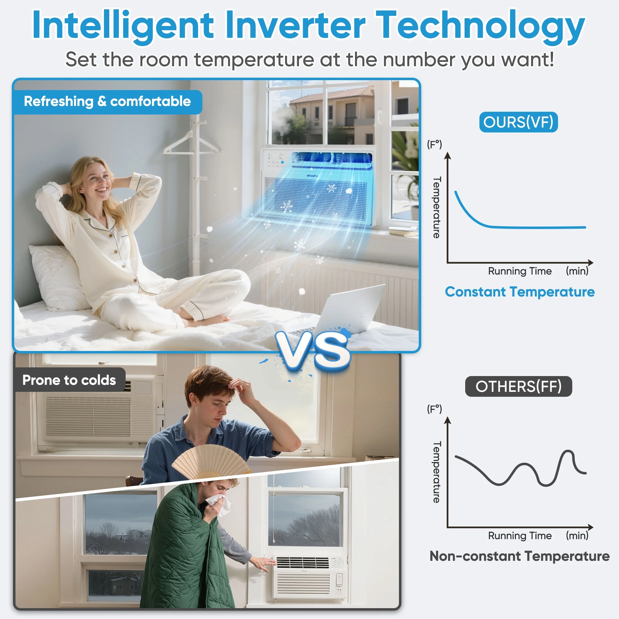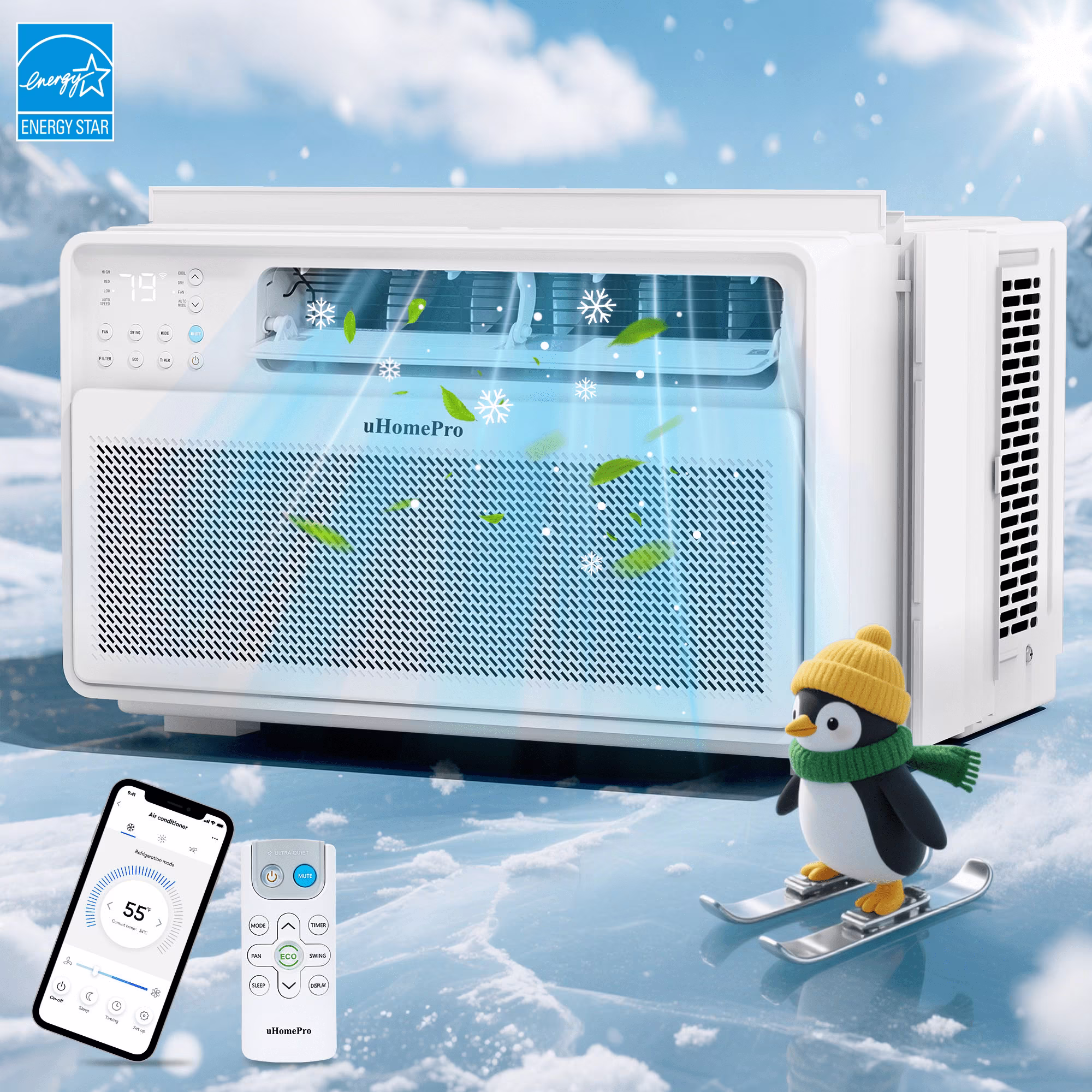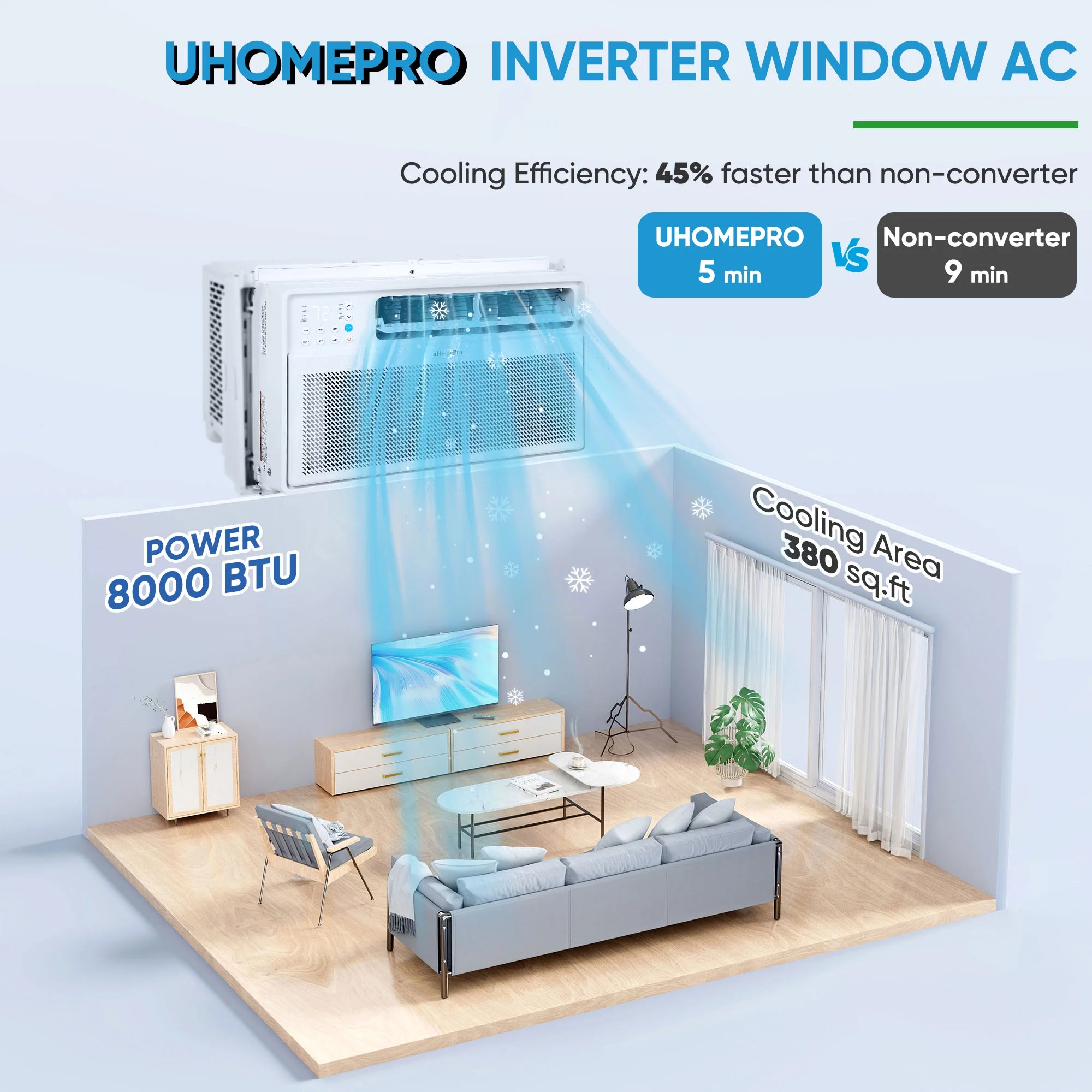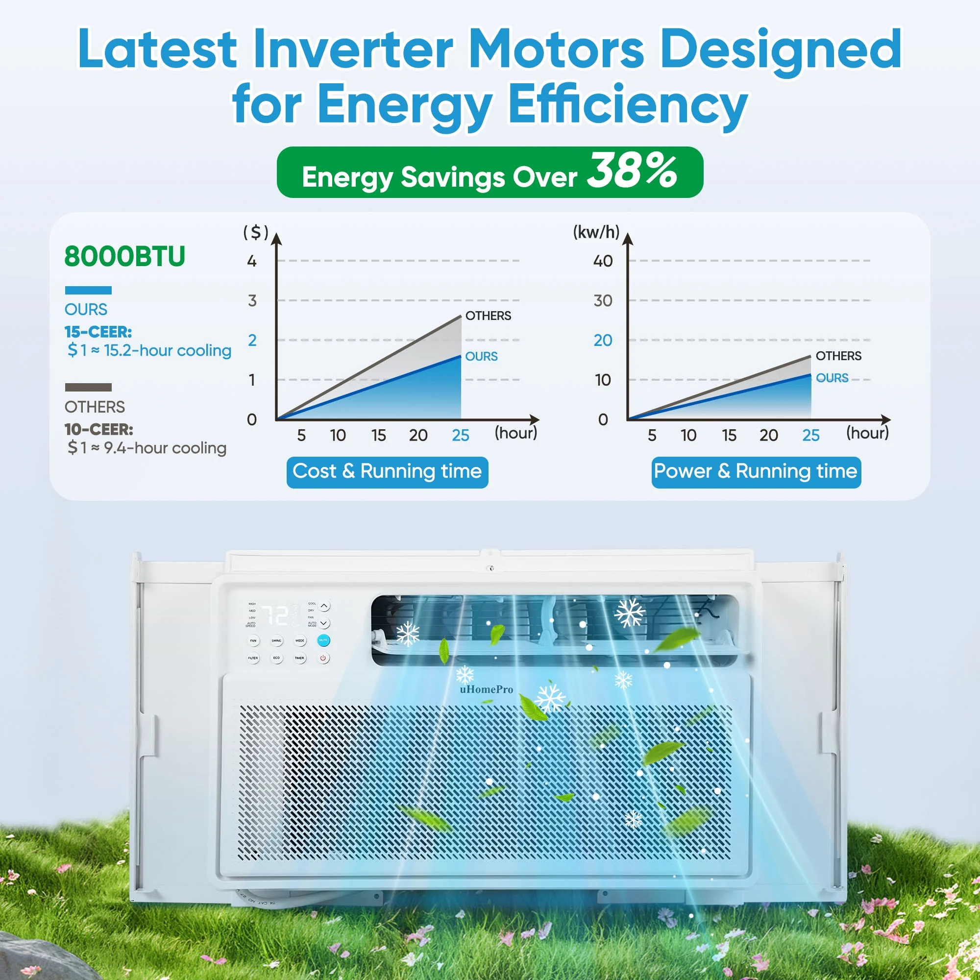 UHOMEPRO Smart Inverter Window Air Conditioner combines revolutionary energy-saving technology with library-level quietness to create your own quiet and cool space!
