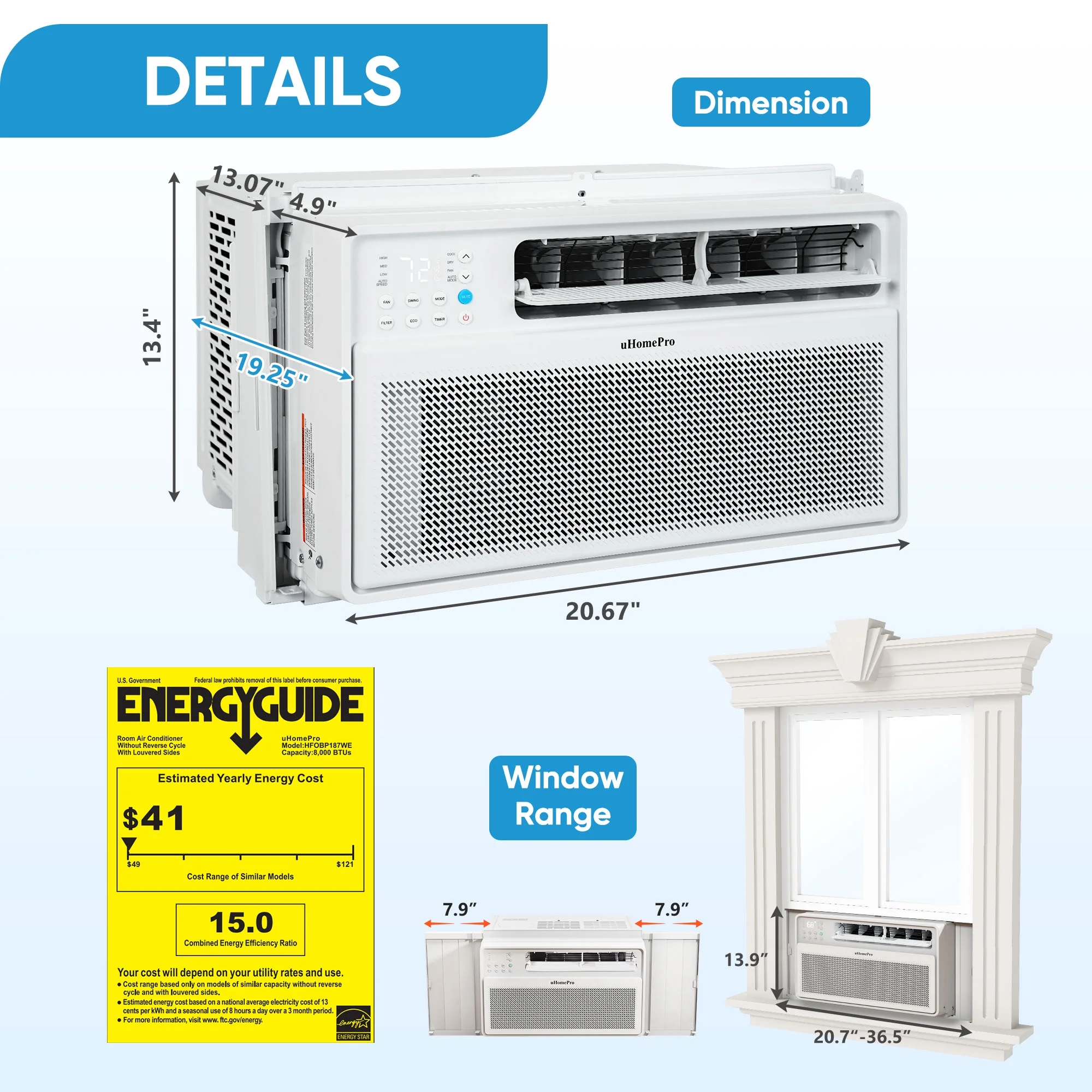 - Dimensions: 20.67�� �� 19.25�� �� 13.4�� (Suitable window width: 20.7���C36.5��; window height: ��13.4")