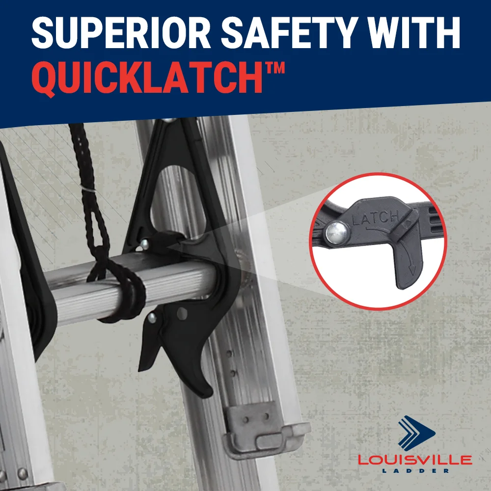 • QUICKLATCH SYSTEM: Seamlessly offers a straightforward and intuitive solution for our extension ladders, securing both the fly and base sections during extension.