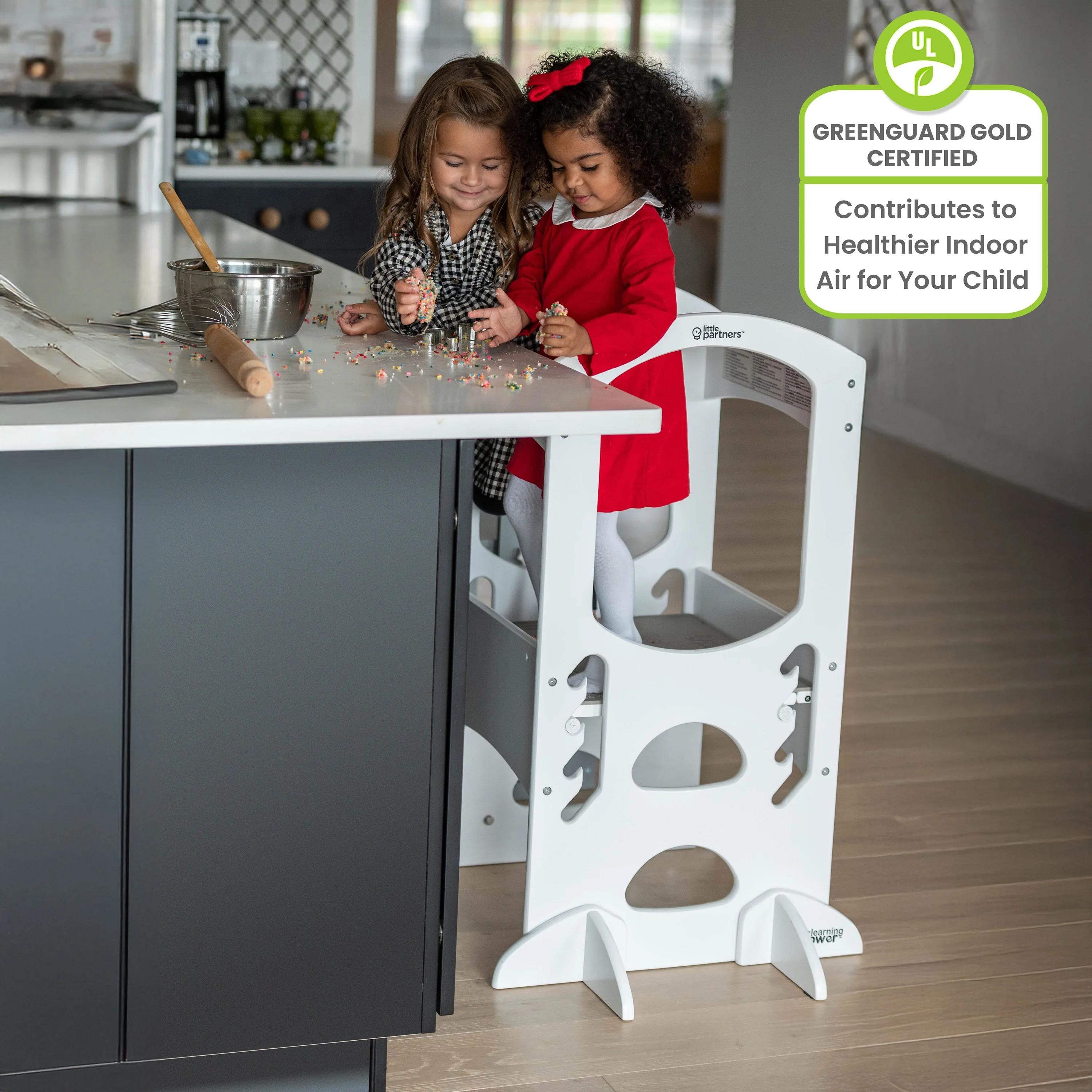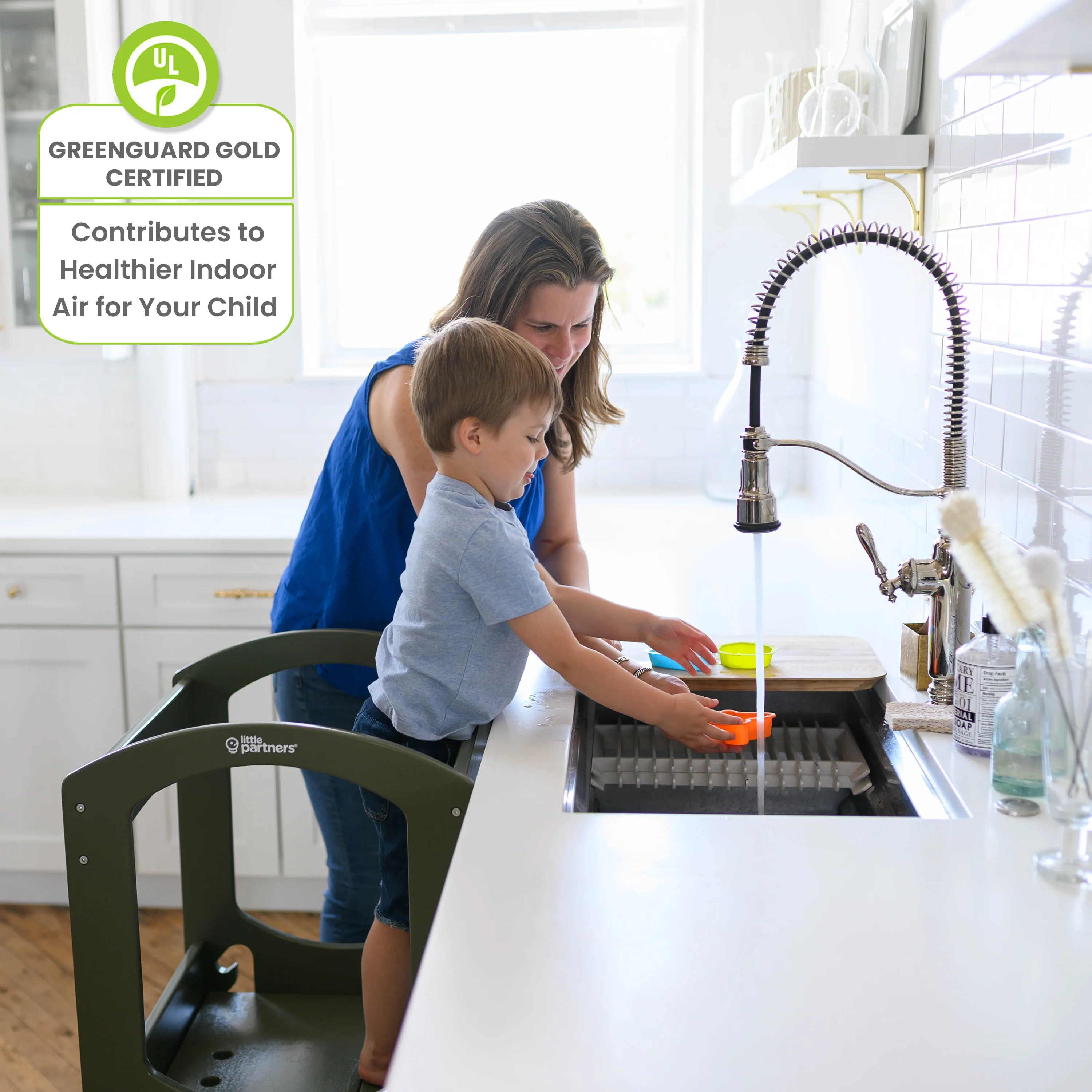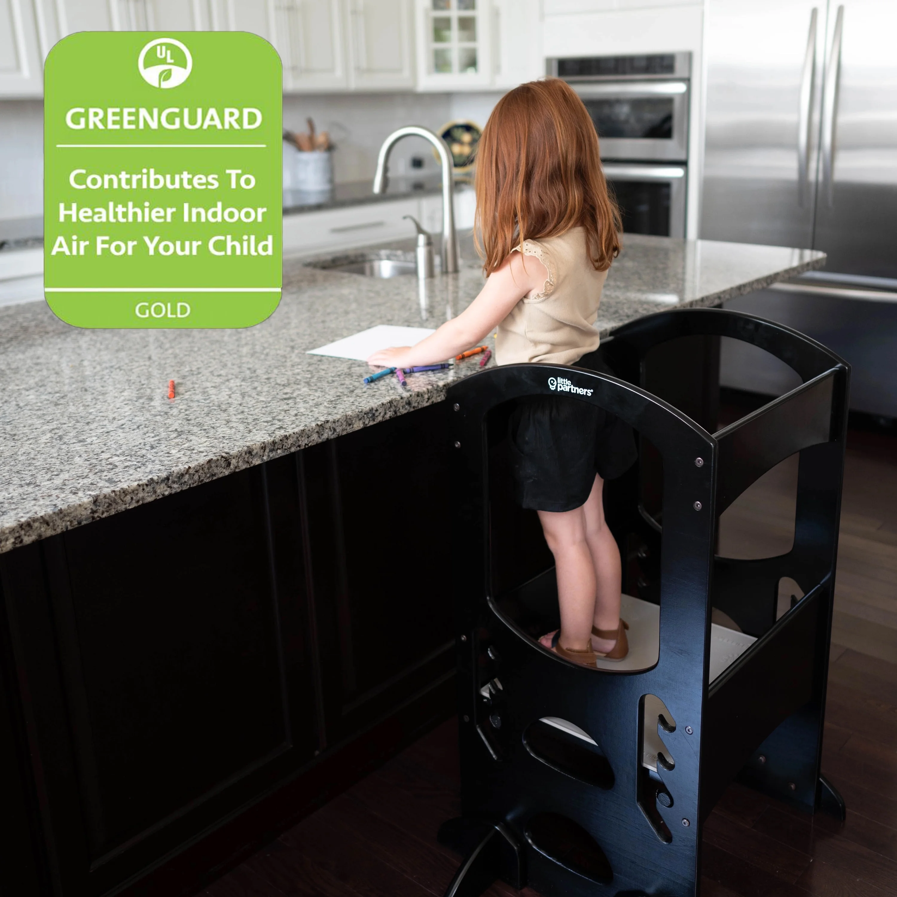 - GREENGUARD GOLD: In addition to meeting all government safety standards, we go the extra step with Greenguard Gold Certification. Our products have gone through ASTM testing, contributing to cleaner indoor air and a healthier environment. Our stepping stool is made with the future in mind.