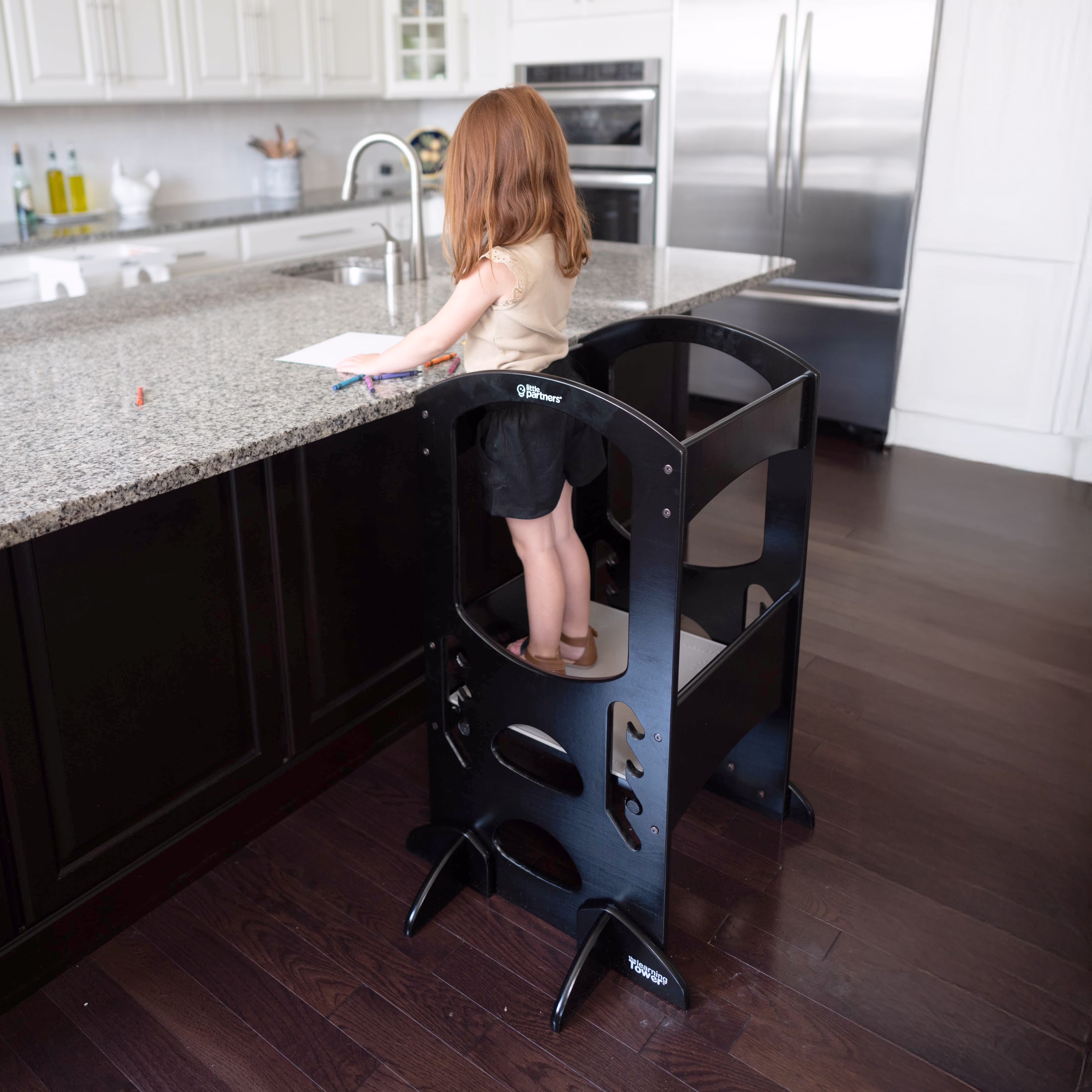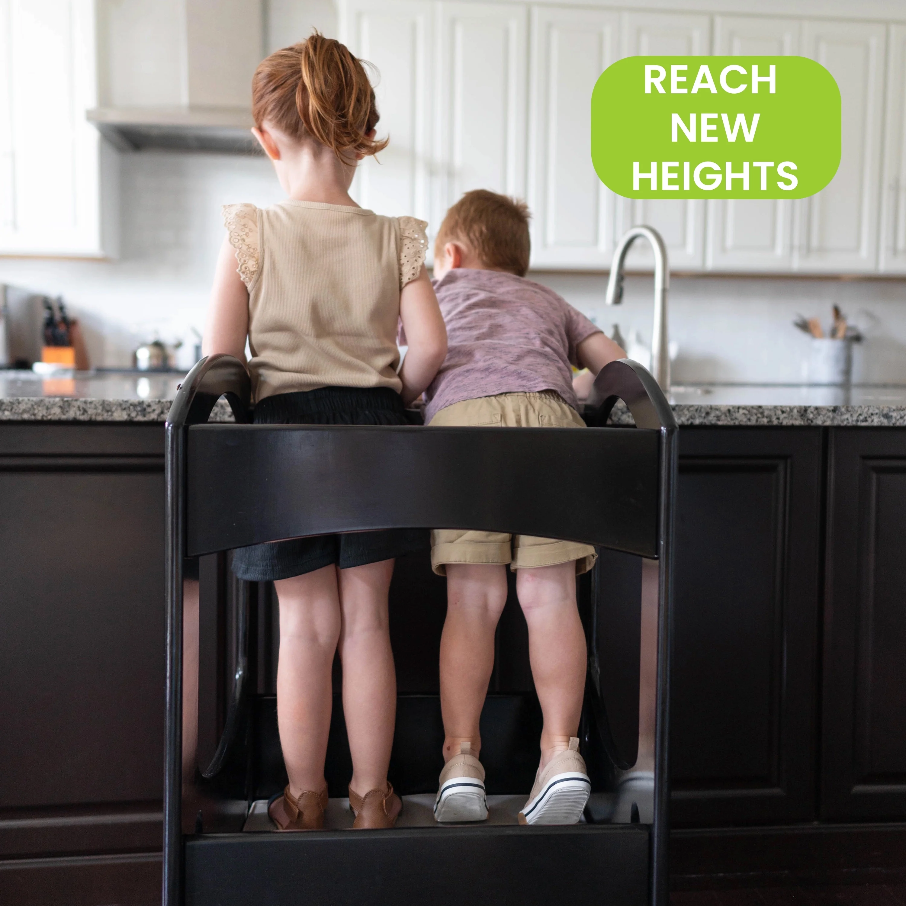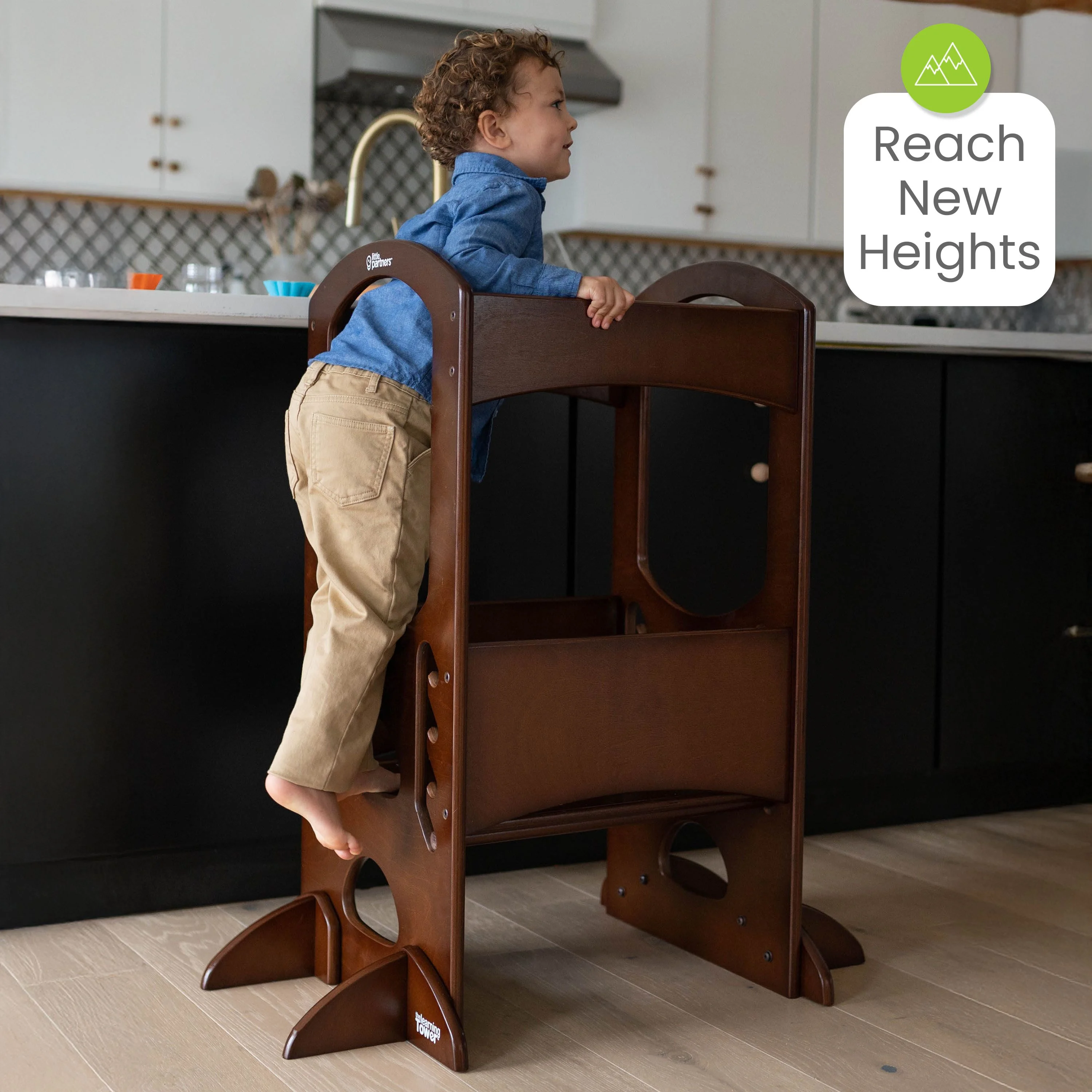 - LEARNING TOWER FOR TODDLERS: This Learning Tower stool is inspired by the Montessori learning principles. It can lift your child up to counter height of a kitchen bar. Our Learning Tower encourages interaction, exploration and togetherness between children and parents for bonding activities.