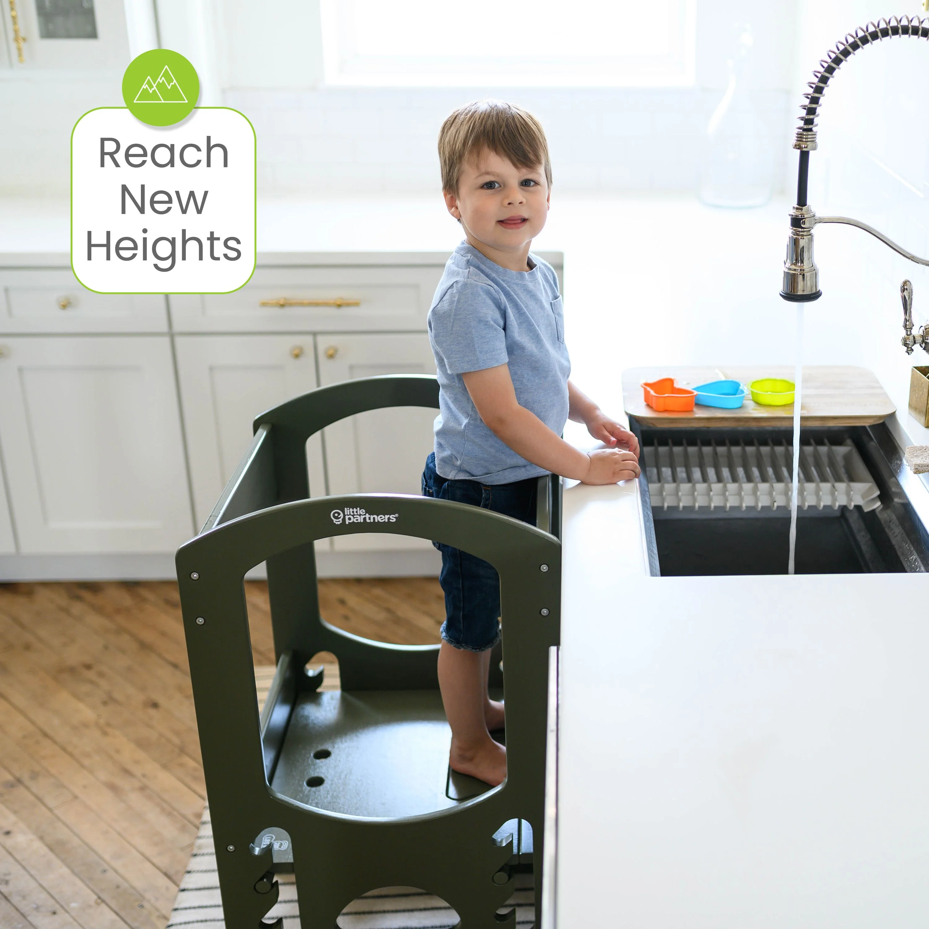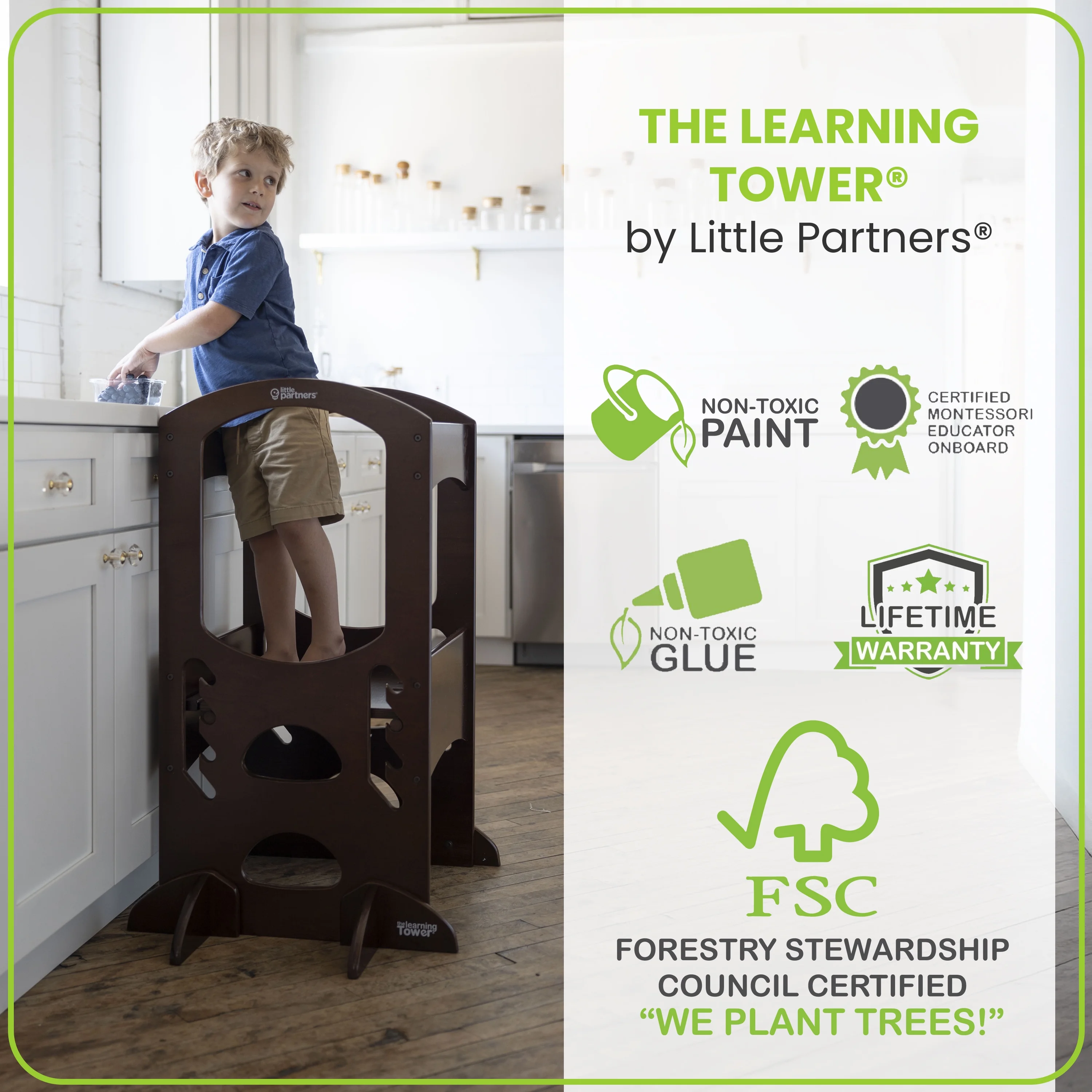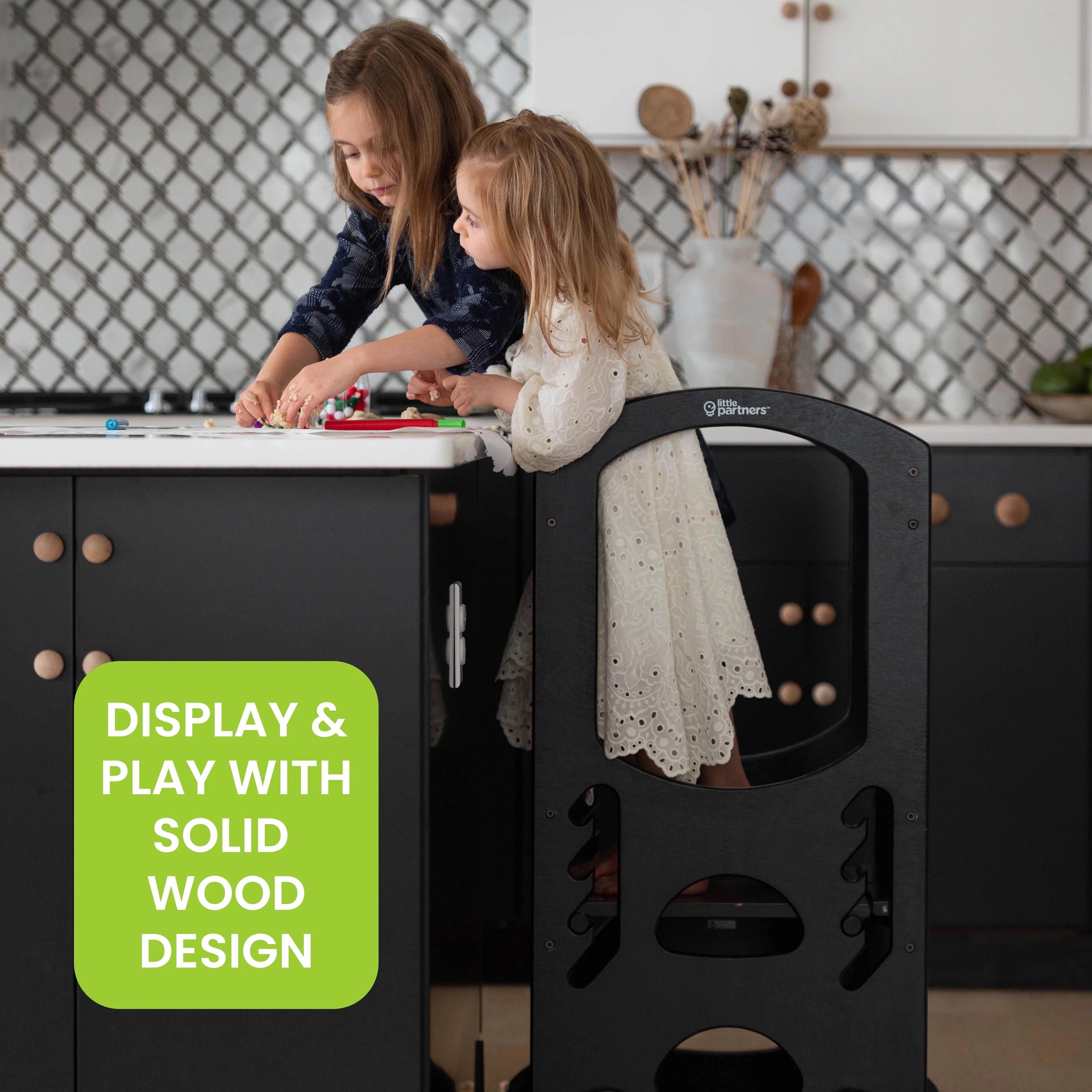 - LEARNING TOWER FOR TODDLERS: This Learning Tower stool is inspired by the Montessori learning principles. It can lift your child up to counter height of a kitchen bar. Our Learning Tower encourages interaction, exploration and togetherness between children and parents for bonding activities.