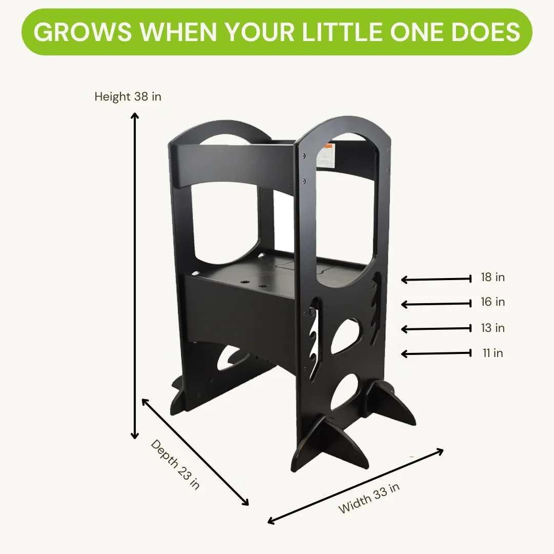 - ADJUSTABLE DESIGN FOR GROWTH: Easily adjust to four different heights as your toddler grows so you can use the step stool to gradually encourage independence and engagement in a safe manner. Our helper tower lets your little one see comfortably. No tools are needed to adjust to different heights.