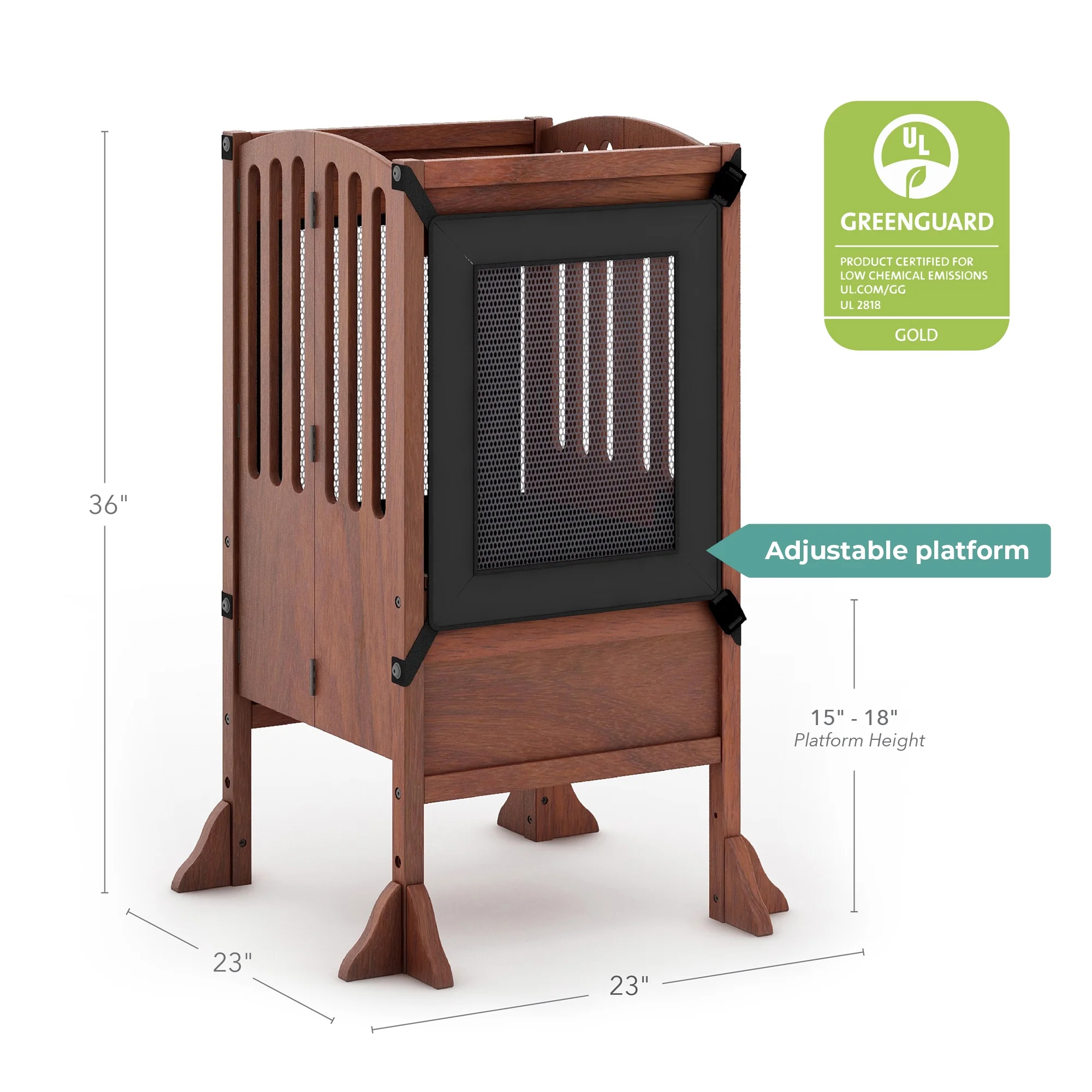 - GROWS WITH YOUR CHILD: Adjust the platform to 15" or 18" to keep your stool at the perfect height for your growing child. Assembled dimensions: 23"L x 23"W x 36"H.