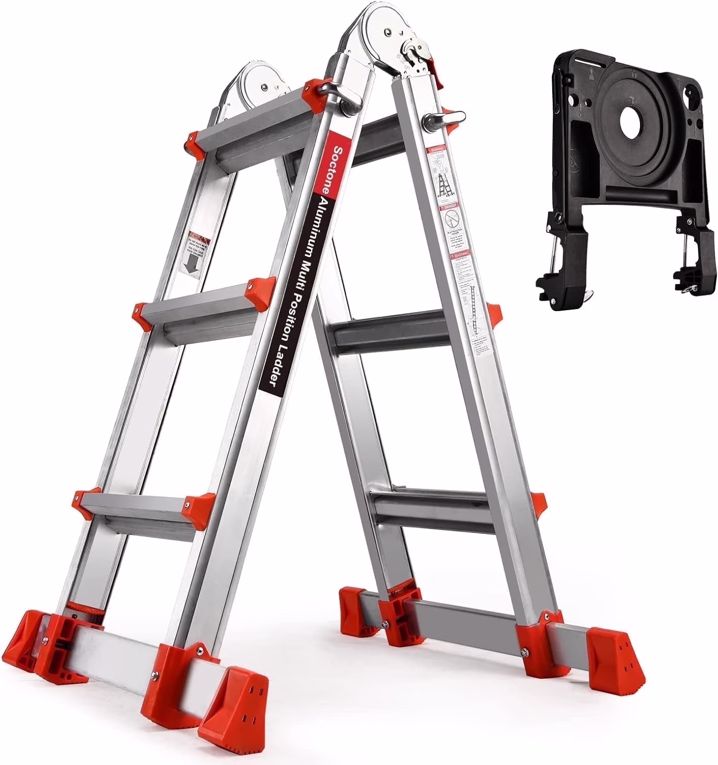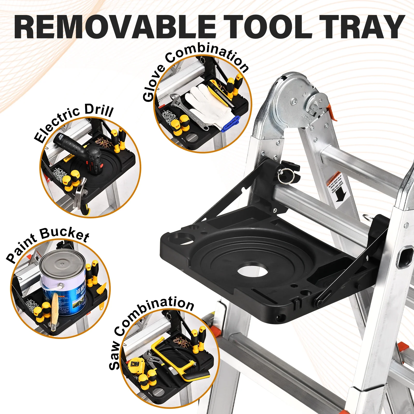 - The ladder come with a large removable tool platform to accommodate tool equipment and reduce the number of times you climb up and down the ladder.