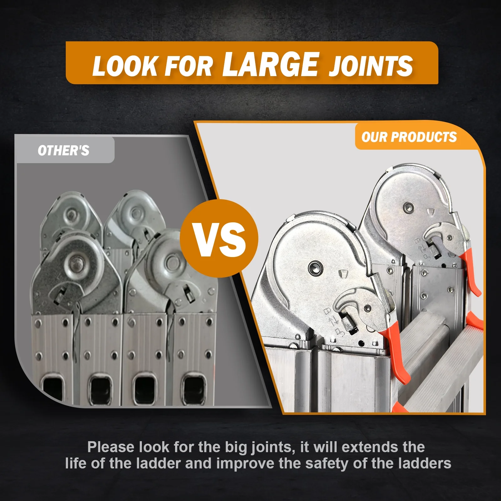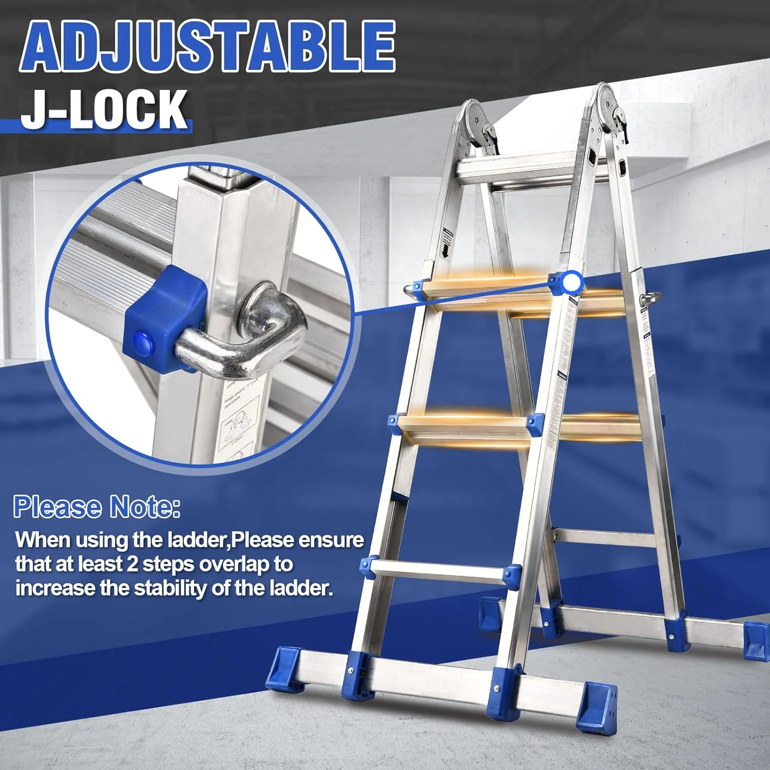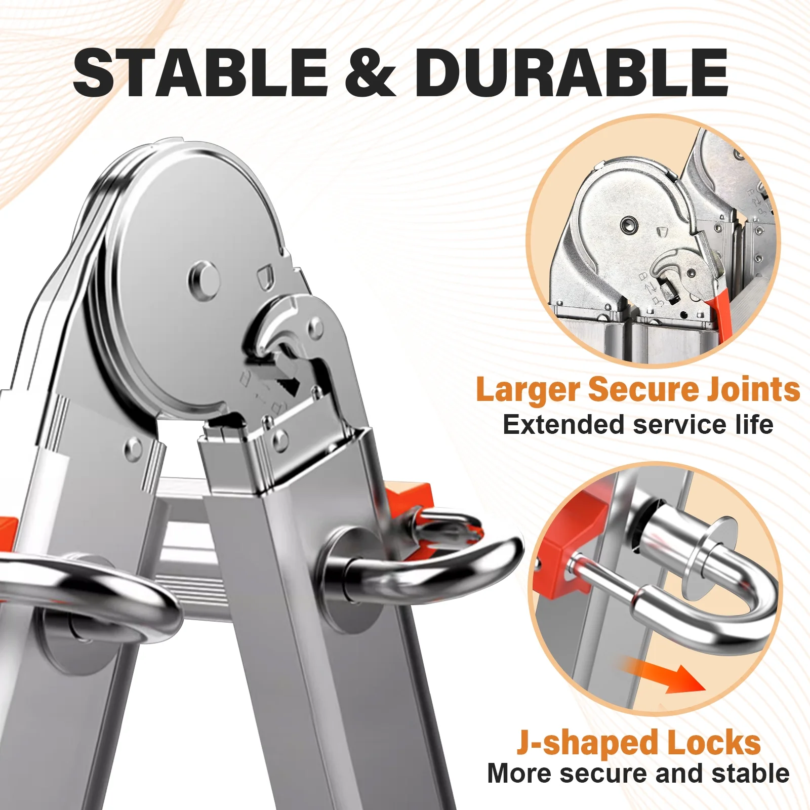 - We use safety protection hinge Lock and solid J lock, which allows the ladder to be fixed at a certain height and angle, guaranteeing your safety.
