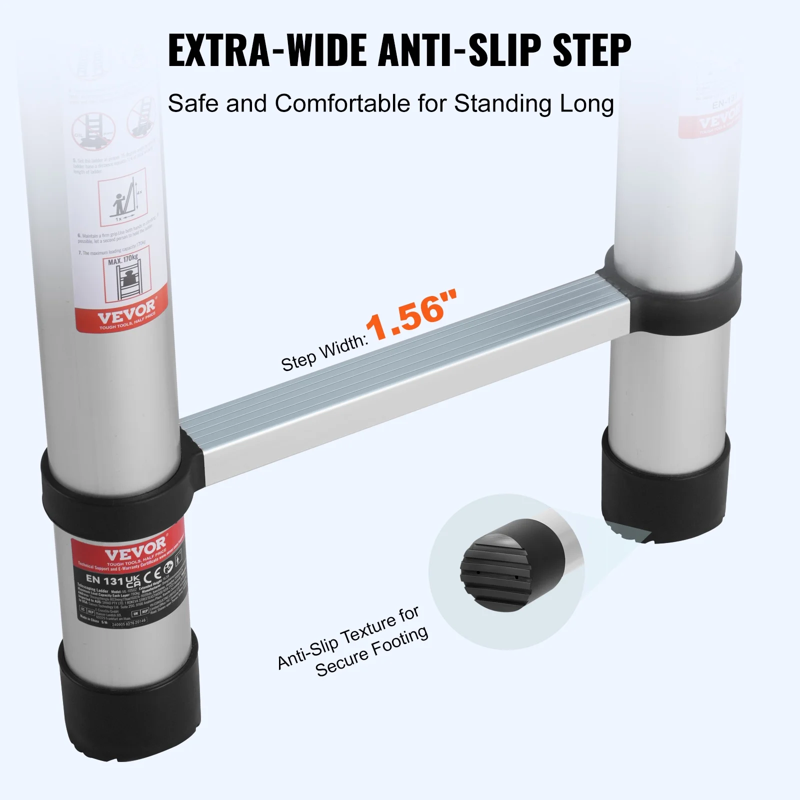 VEVOR Telescoping Ladder, 16.4FT Aluminum Lightweight Extension Ladder, Multi - Button Retraction Collapsible Ladder, 375 lb Capacity with Non - Slip Feet, Portable Compact Ladders for Home, RV, Loft