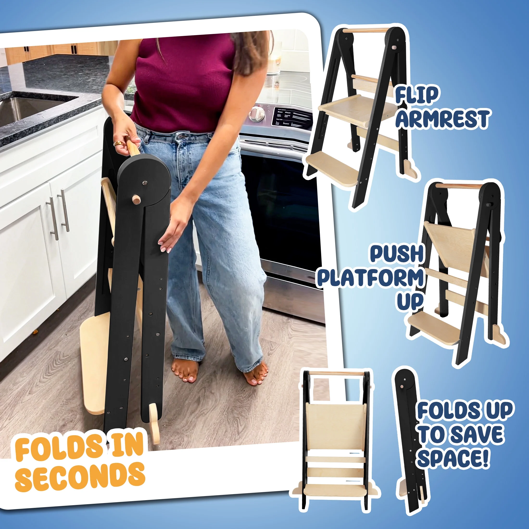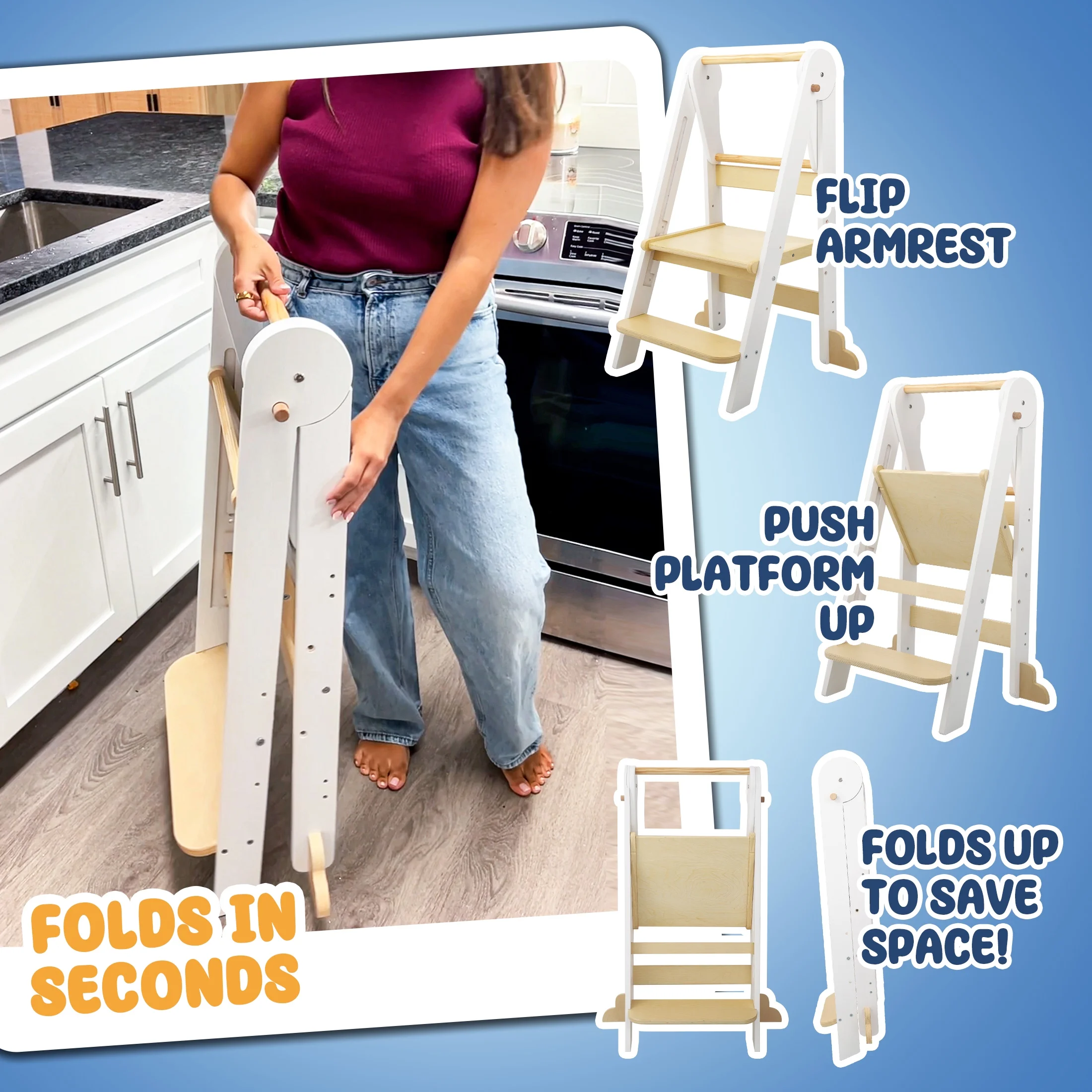 - Kid Safety Tower: Anti-slip feet and side support rails provide maximum stability and prevent falls. The Nordi Foldable Toddler Tower supports up to 130 lbs, making it reliable for everyday use.