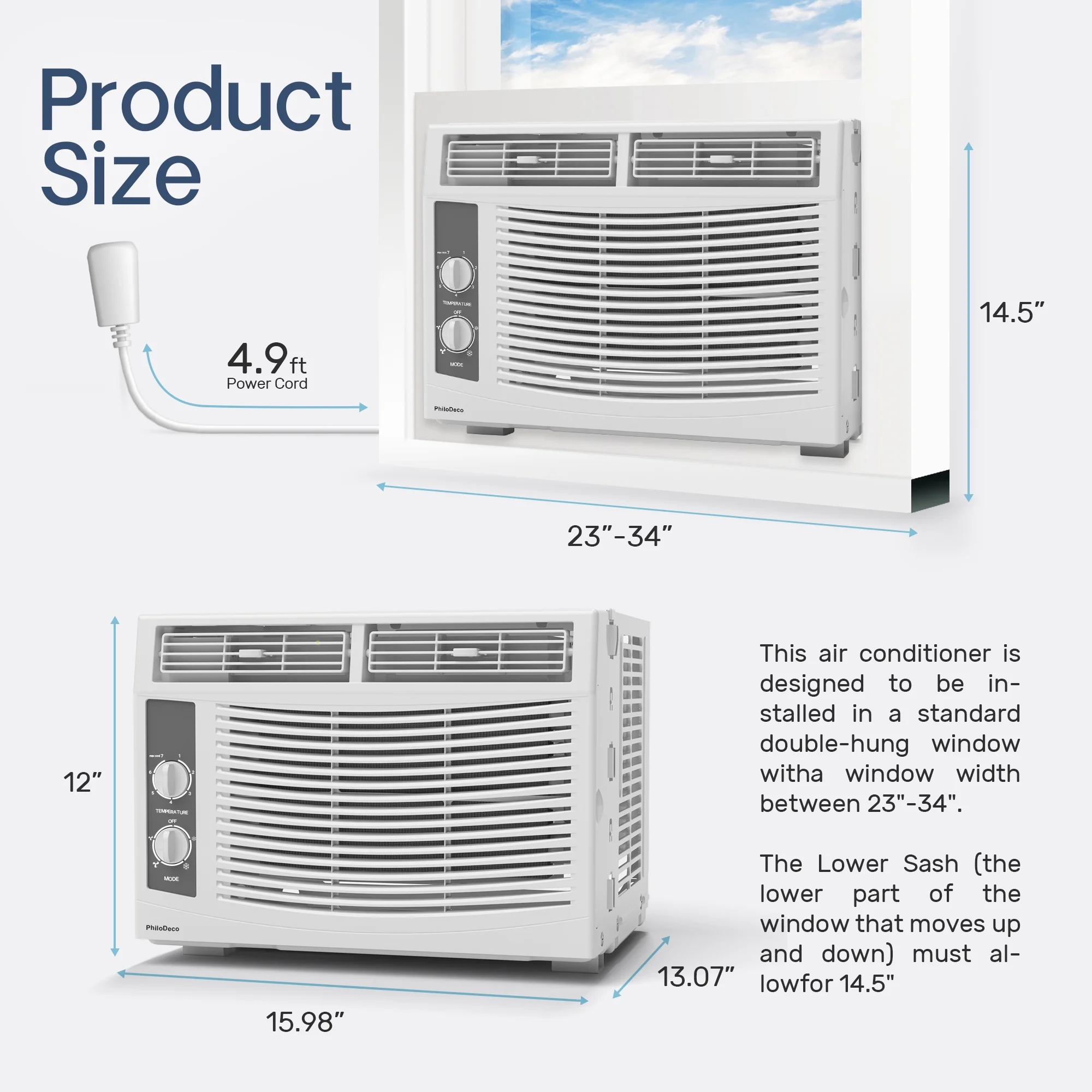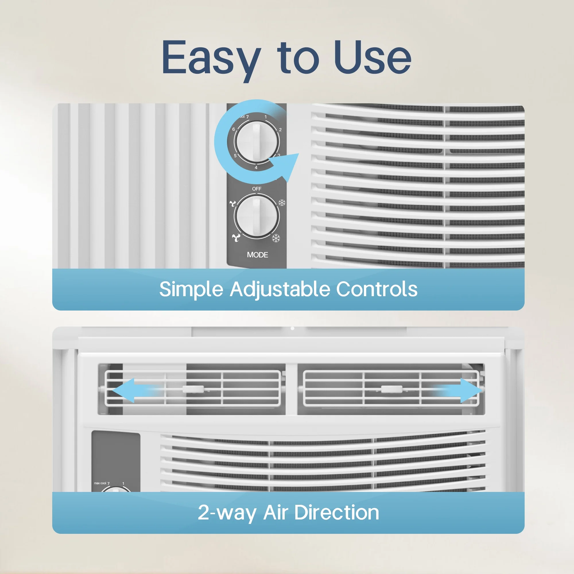 5000 BTU Window Air Conditioner Easy Cool - Capable of Cooling up to 150 Sq Ft. 2 Fan Speeds, 4 - Way Air Direction, Mechanical Control, Filter, for Small Room Air Conditioner, Small Ac Unit