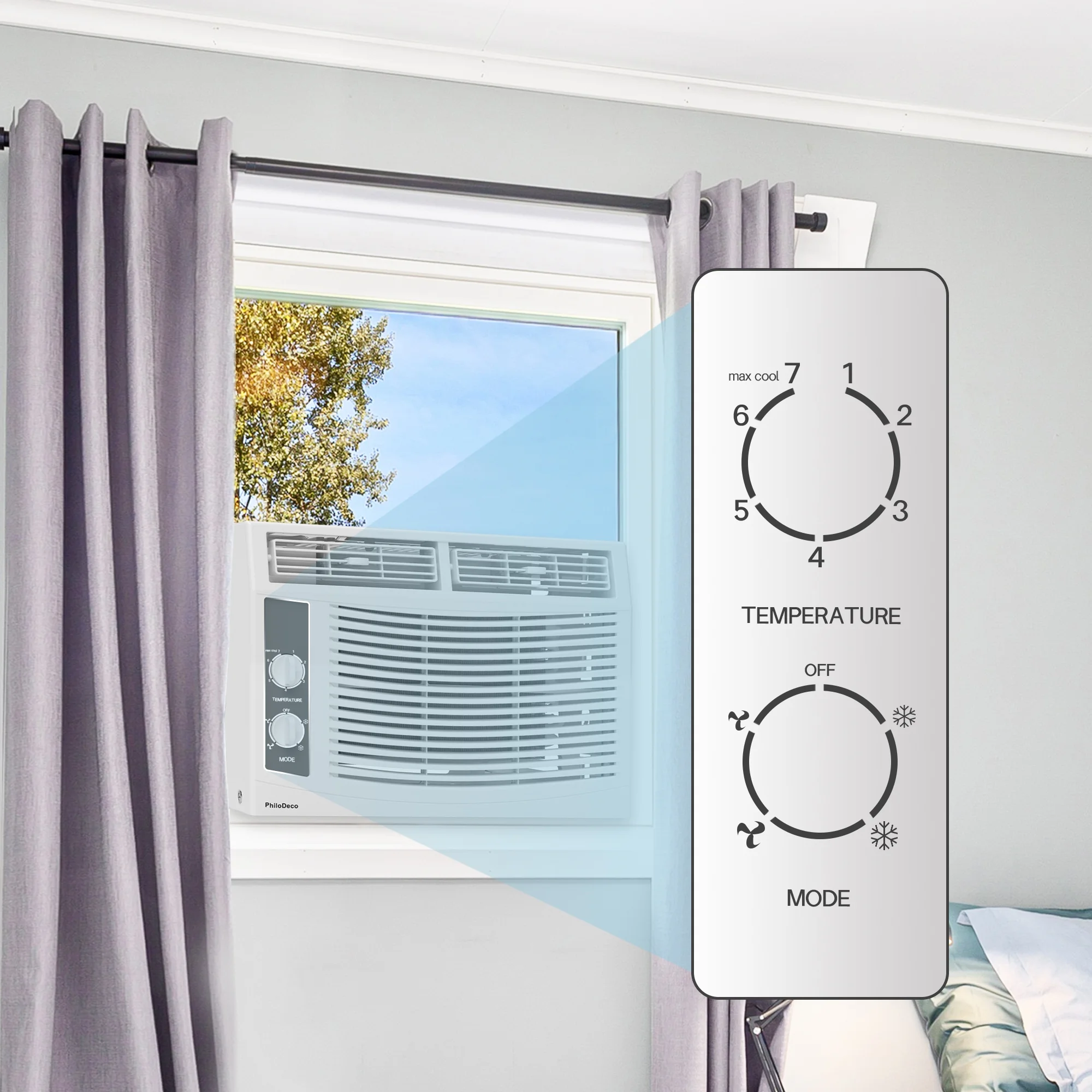- ��Mechanical Window Air Conditioner�� PhiloDeco Button Control Affordable Window Air Conditioner is perfect for making your room as comfortable as possible. ac air conditioner With a cooling area of 150 Sq Ft, it features 7 temperature settings, 2 modes/2 fan speeds/4-way air delivery for perfect cooling every time.