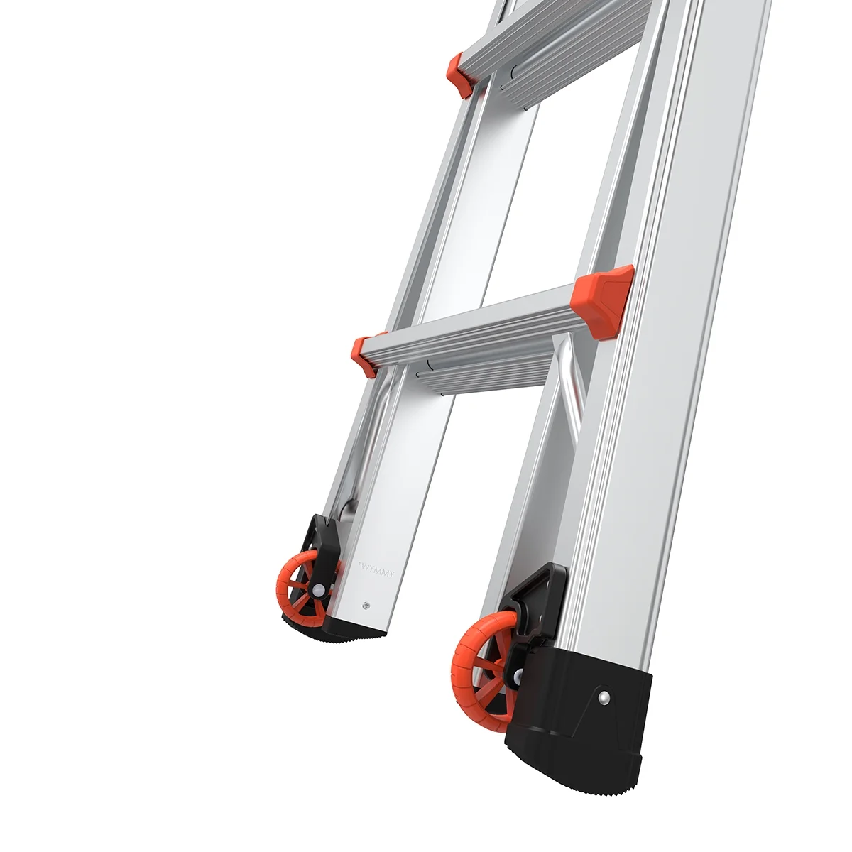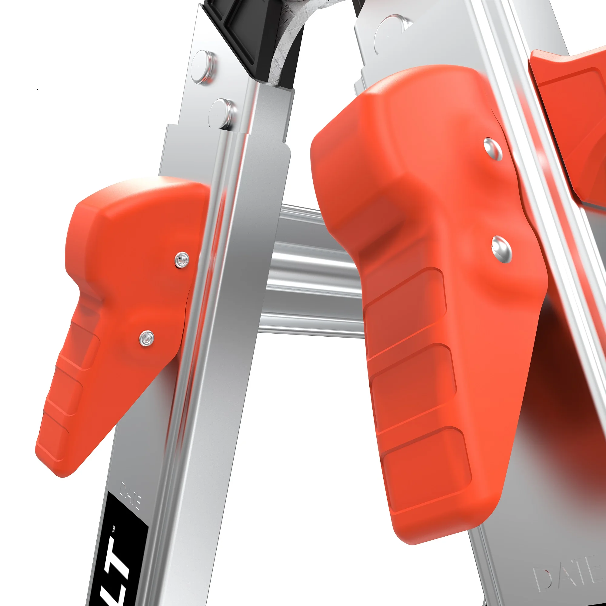 The LT is a lightweight, multi-position ladder with added features to make set up and take down simple. To adjust the height of the ladder, simply push in the Rock Lock adjusters and move the inner section to the height you need. When you need to move the ladder from place to place, tip the ladder on its wheels and roll it with the Tip & Glide wheels.