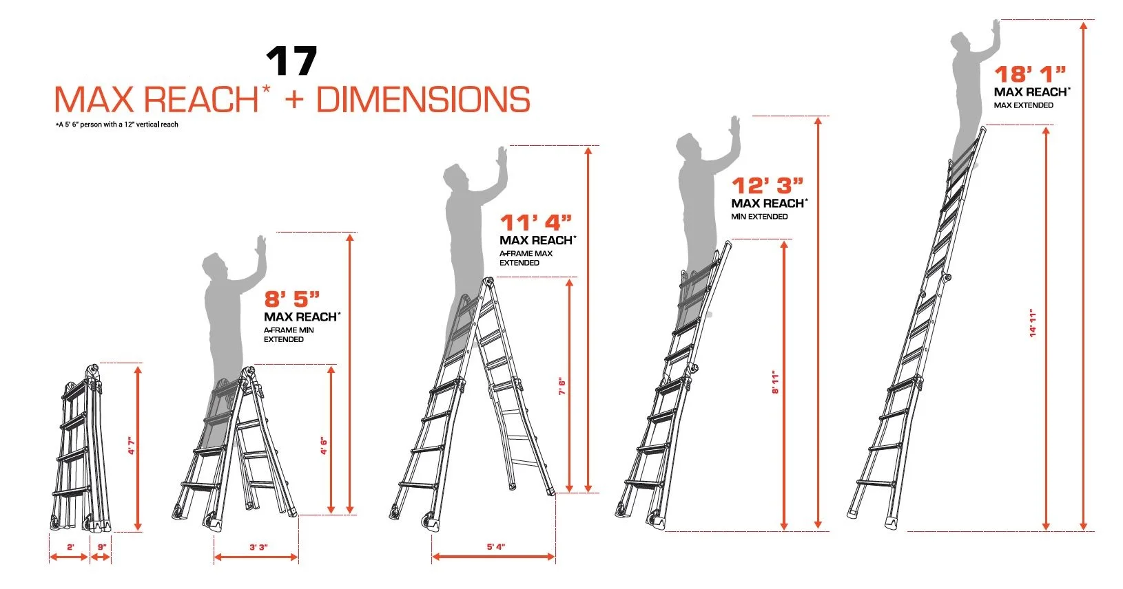 - Step Ladder Max Reach*: 11 feet 4 inches