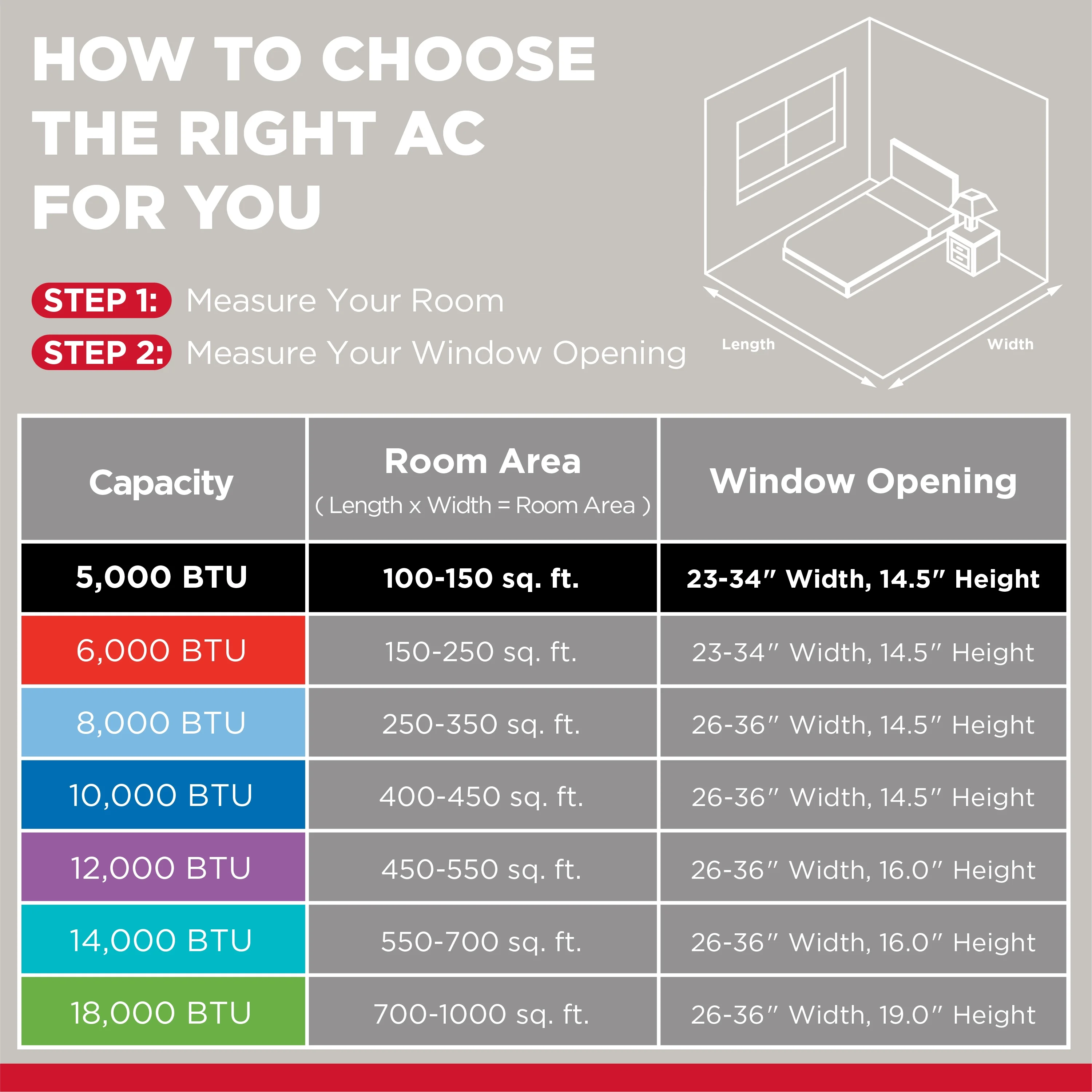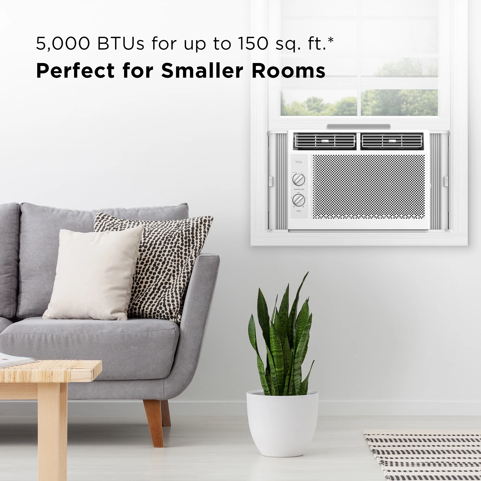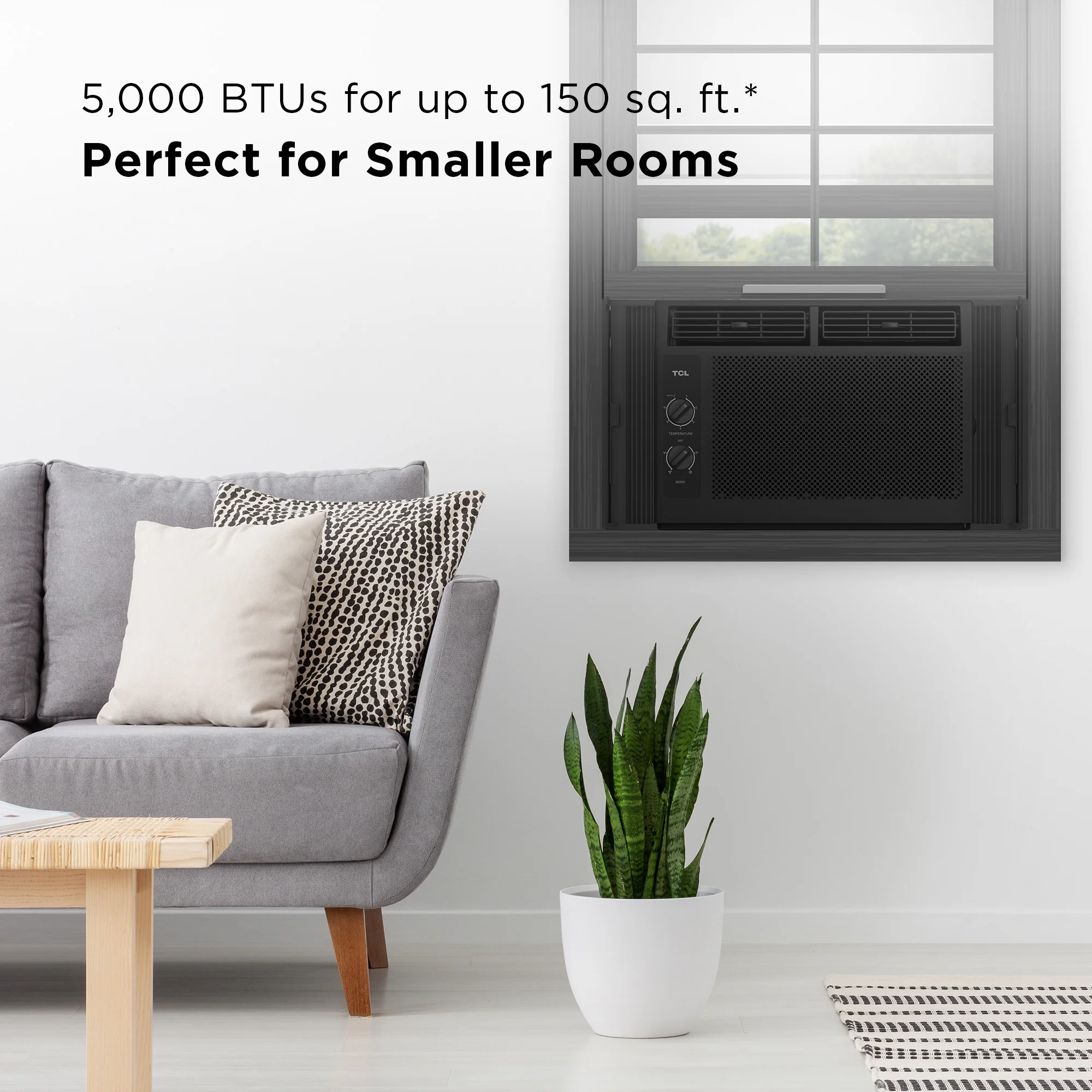 - PERFECT FOR SMALL ROOMS: The 5,000 BTU window air conditioner is powerful enough to cool rooms up to 150 sq. ft. and features multiple fan speeds that allow you to choose your level of comfort.