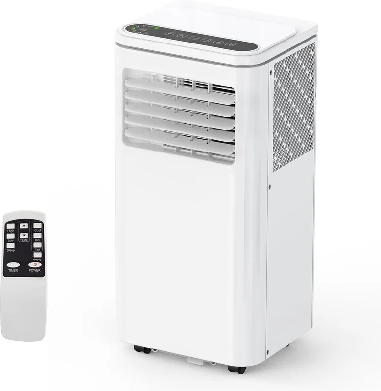 - Easy Installation: Simply roll this room air conditioner into any room with a double-hung or sliding window. It includes an exhaust hose and window kit, with no additional tools required for assembly. The compact design and four wheels allow for convenient placement in your home