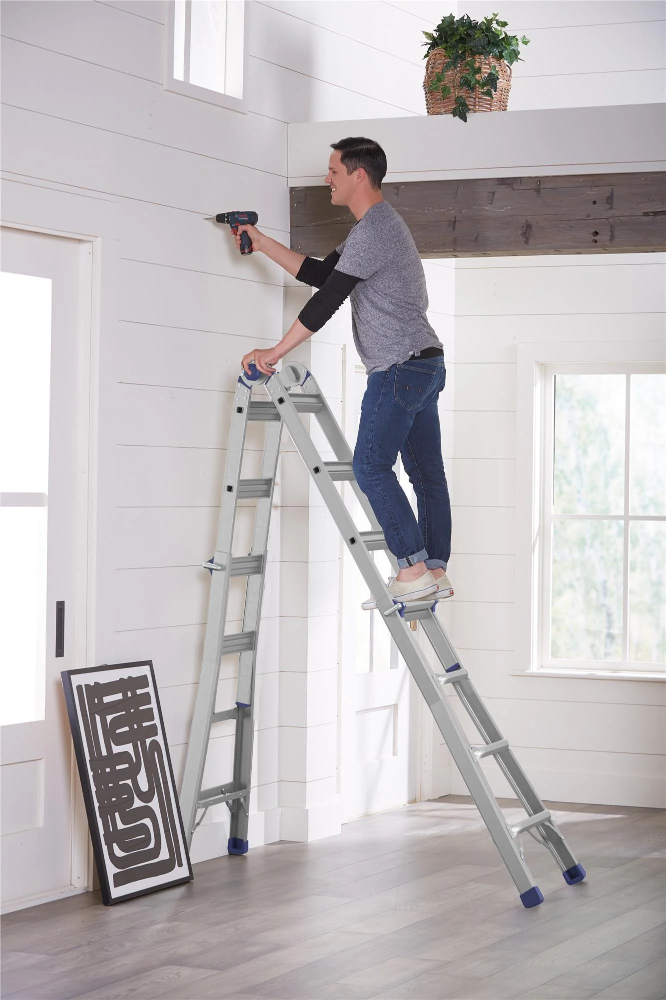 - CONVENIENT - Five ladders in one - Step ladder, Extension ladder, Scaffold, Stairway ladder, and Wall ladder