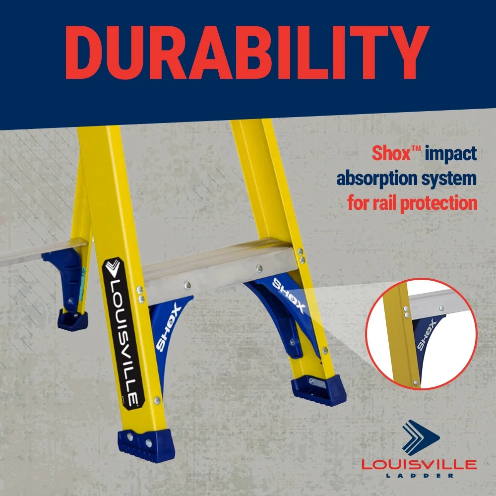 - STEP RISE: Each step rises by 12 inches, providing a comfortable and secure climbing experience on this fiberglass step ladder.