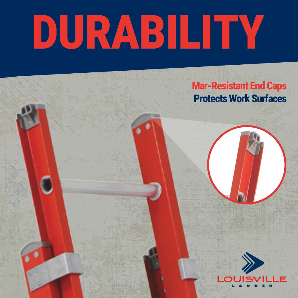 - NON-CONDUCTIVE: Crafted with fiberglass for non-conductive safety assurance, this extension ladder combines strength and durability.