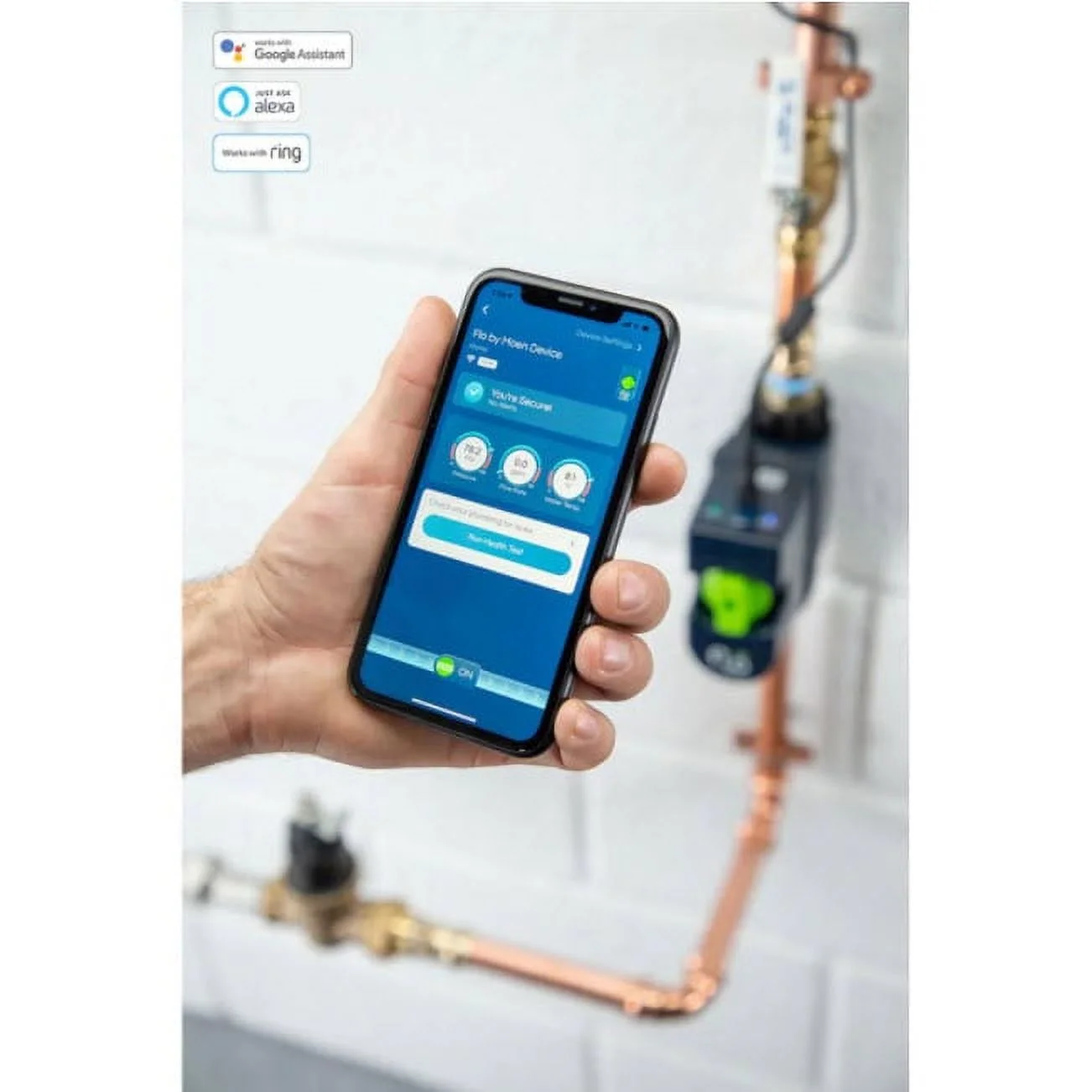 - 24/7 protection from catastrophic water damage, allowing you to turn your water on/off from the app manually, or Flo by Moen will automatically turn off the water for you to protect the home