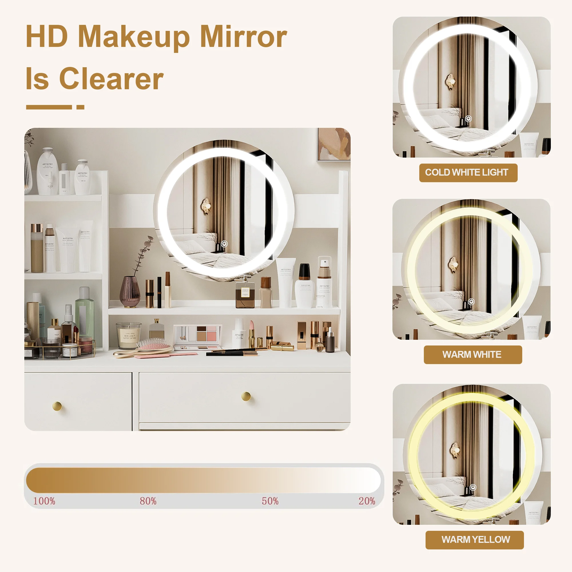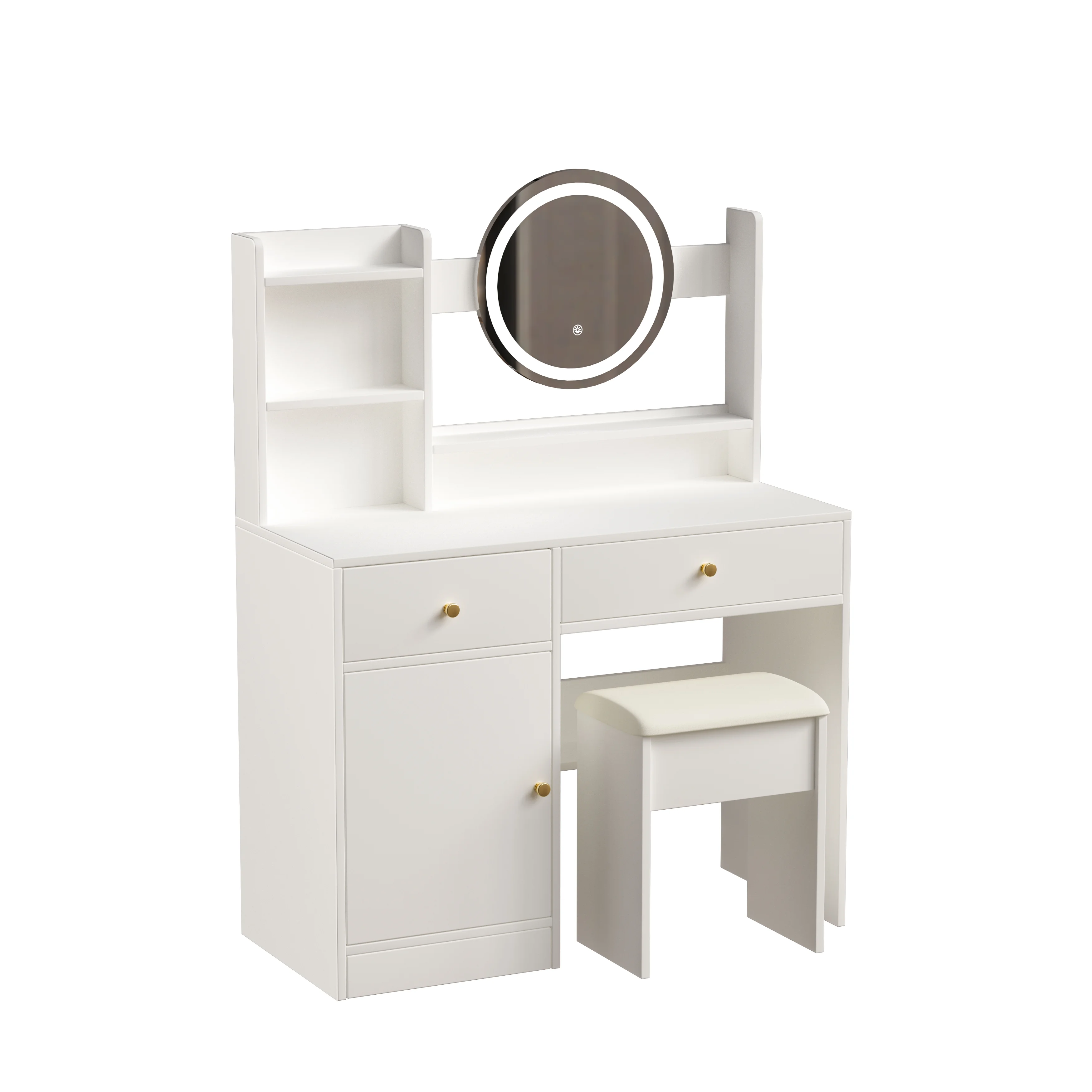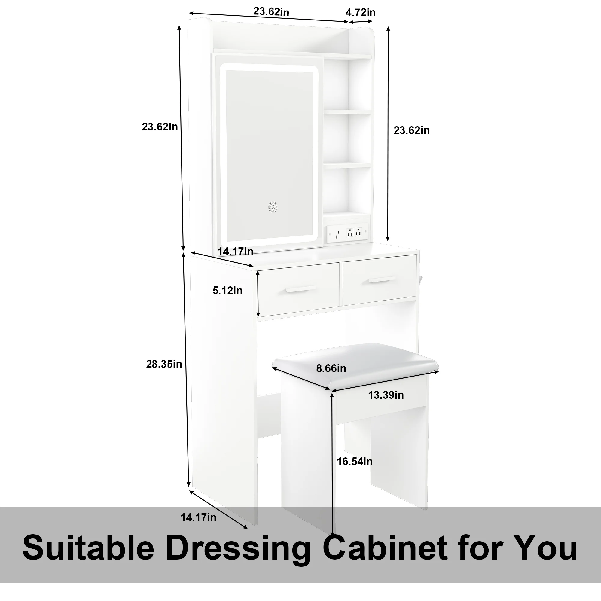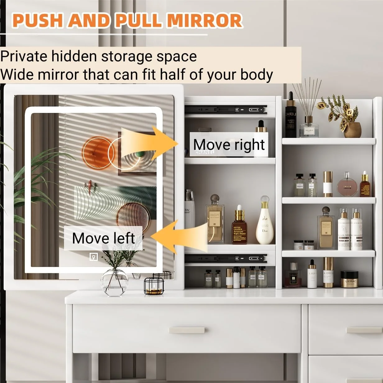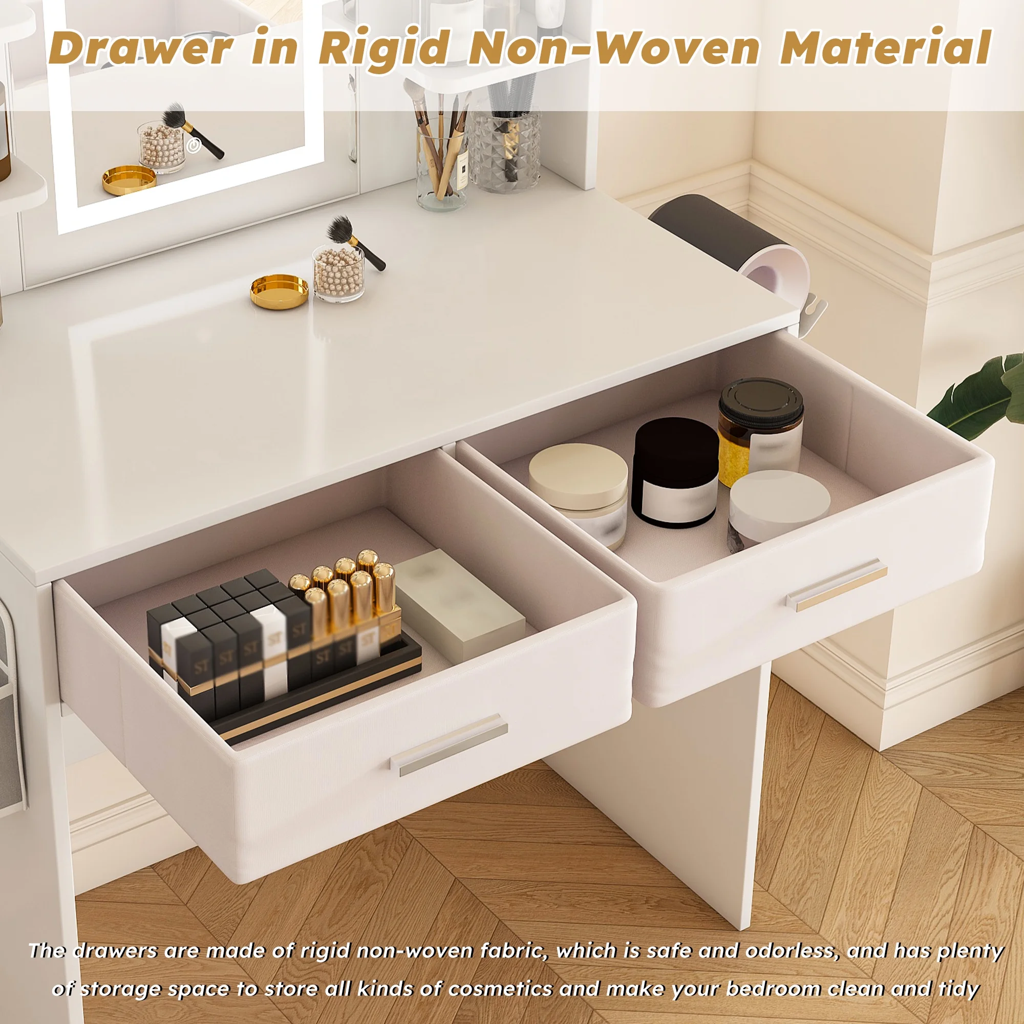 Montary Modern Mini Vanity Set w/Adjustable LED Mirror - Space-Saving Makeup Station & Hidden Storage (White)