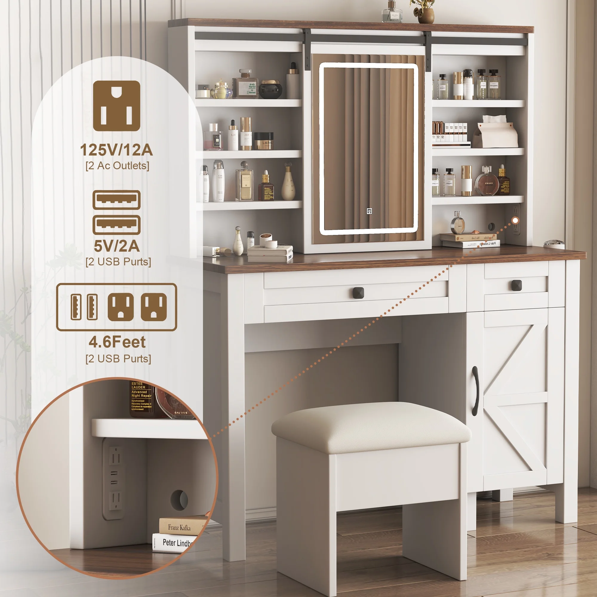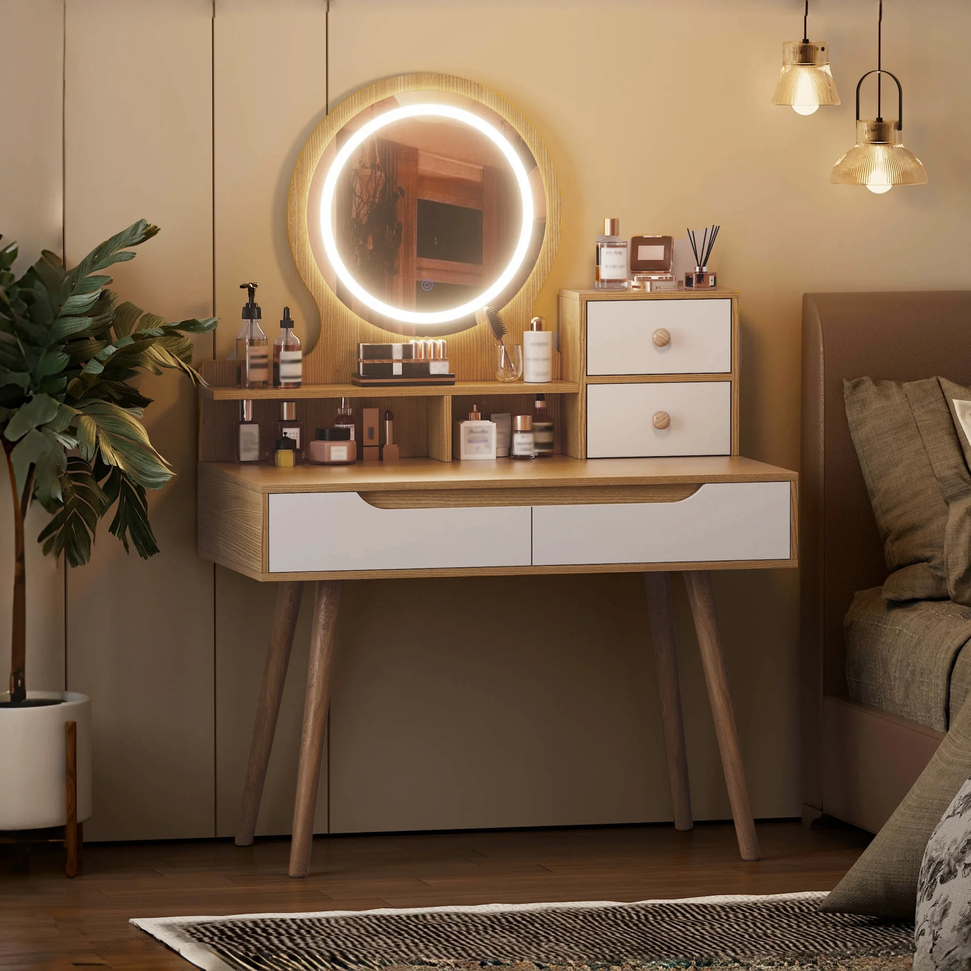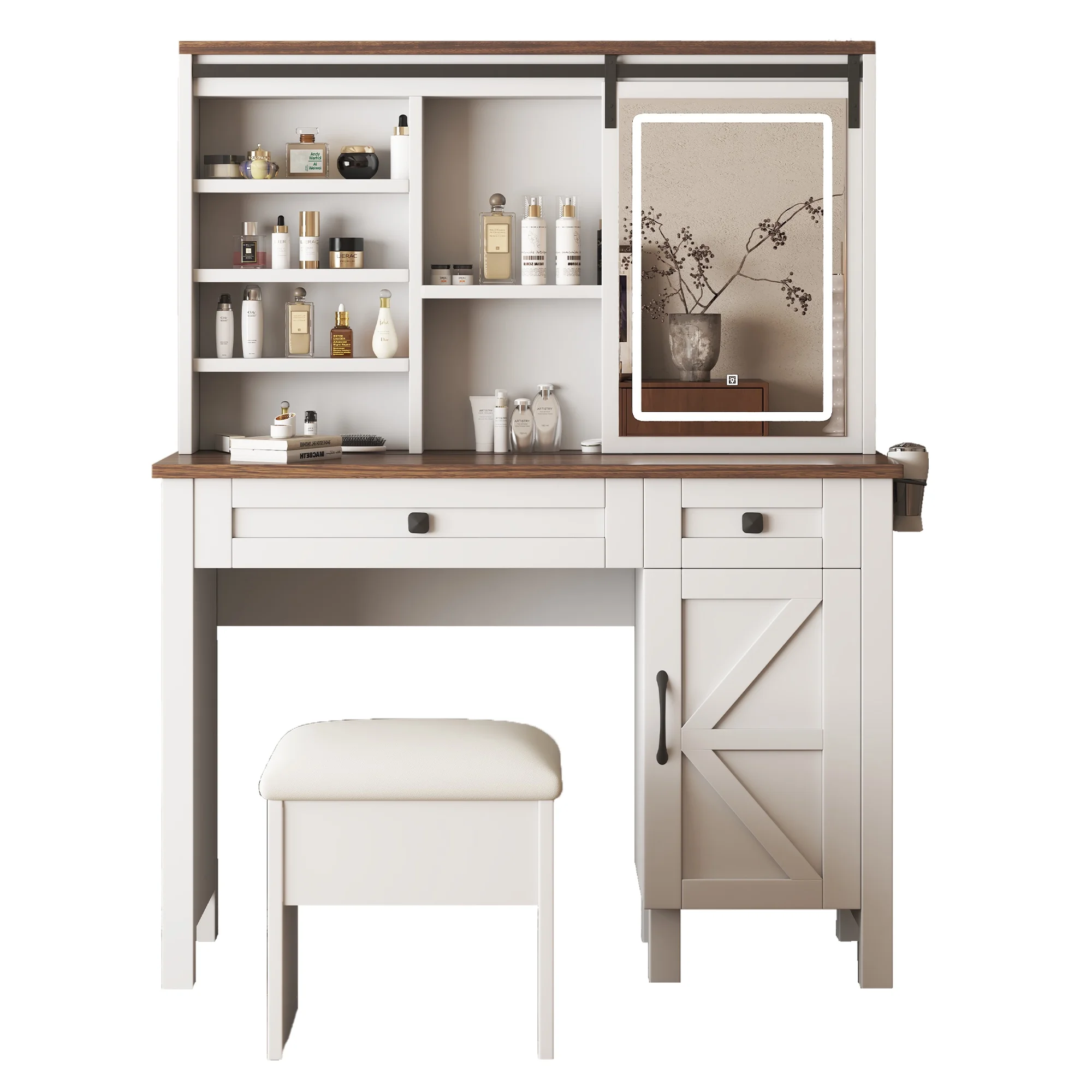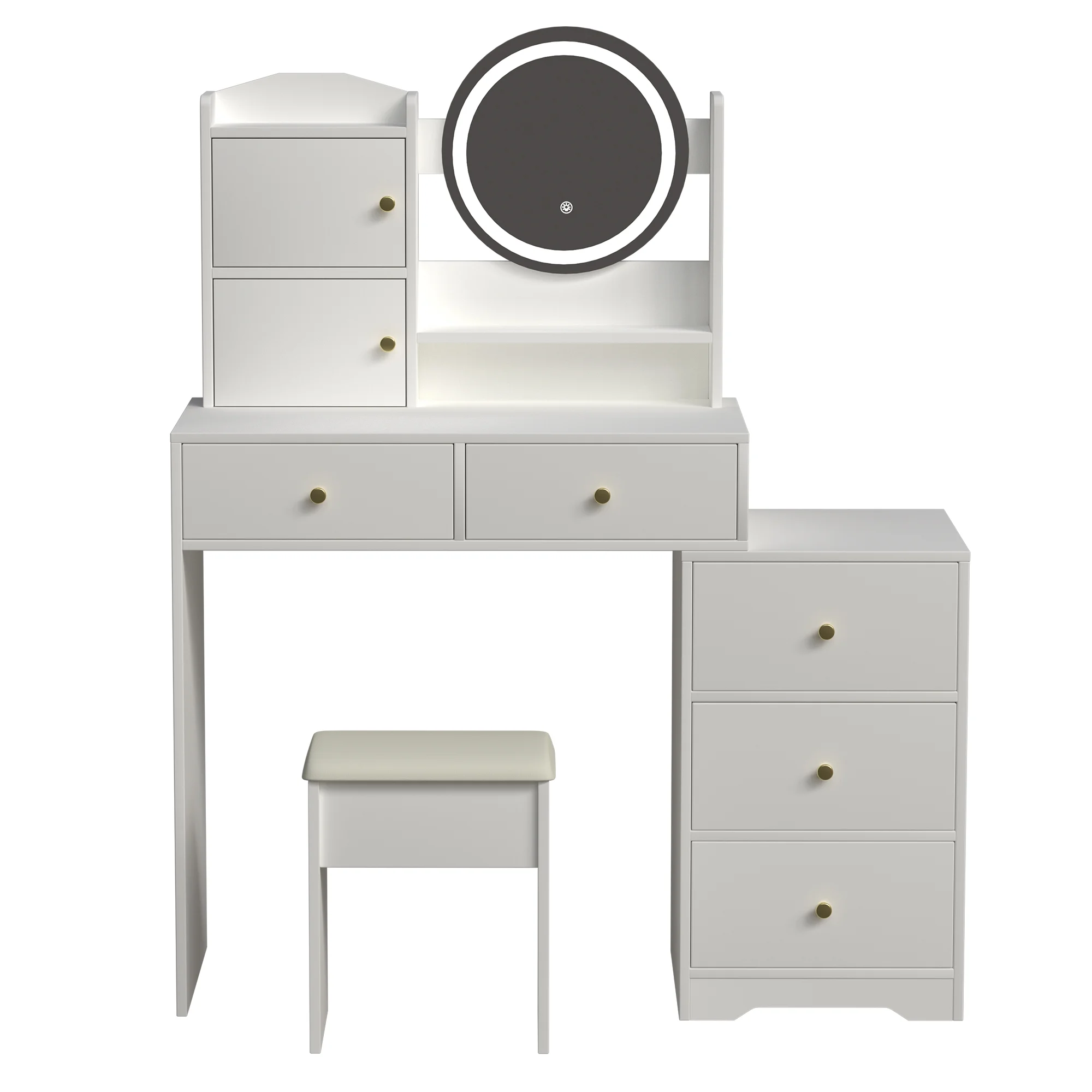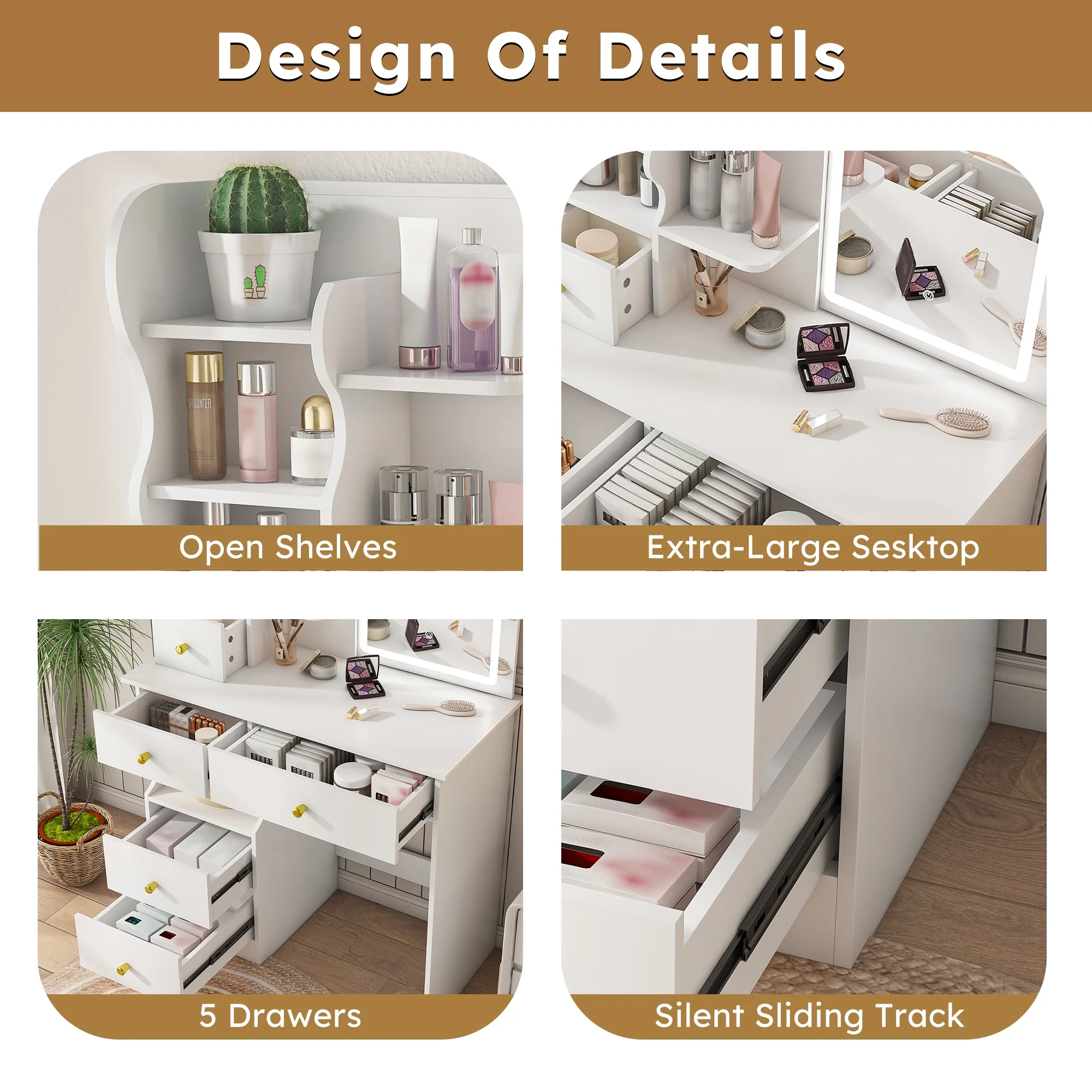 Montary Modern Mini Vanity Set w/Adjustable LED Mirror - Space-Saving Makeup Station & Hidden Storage (White)