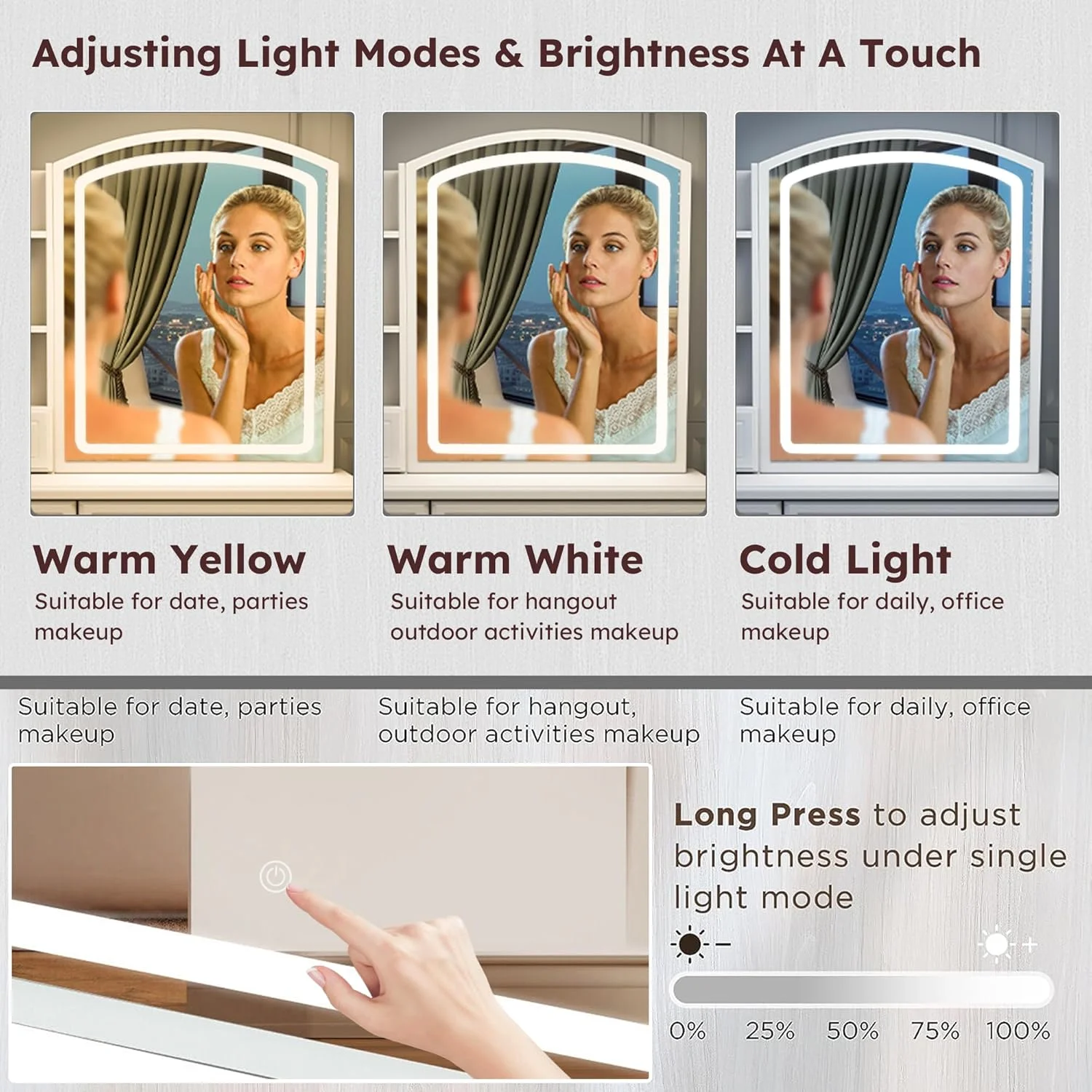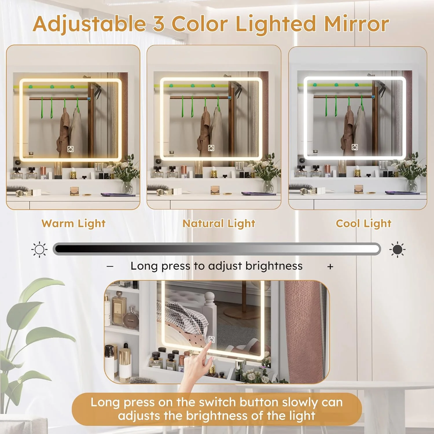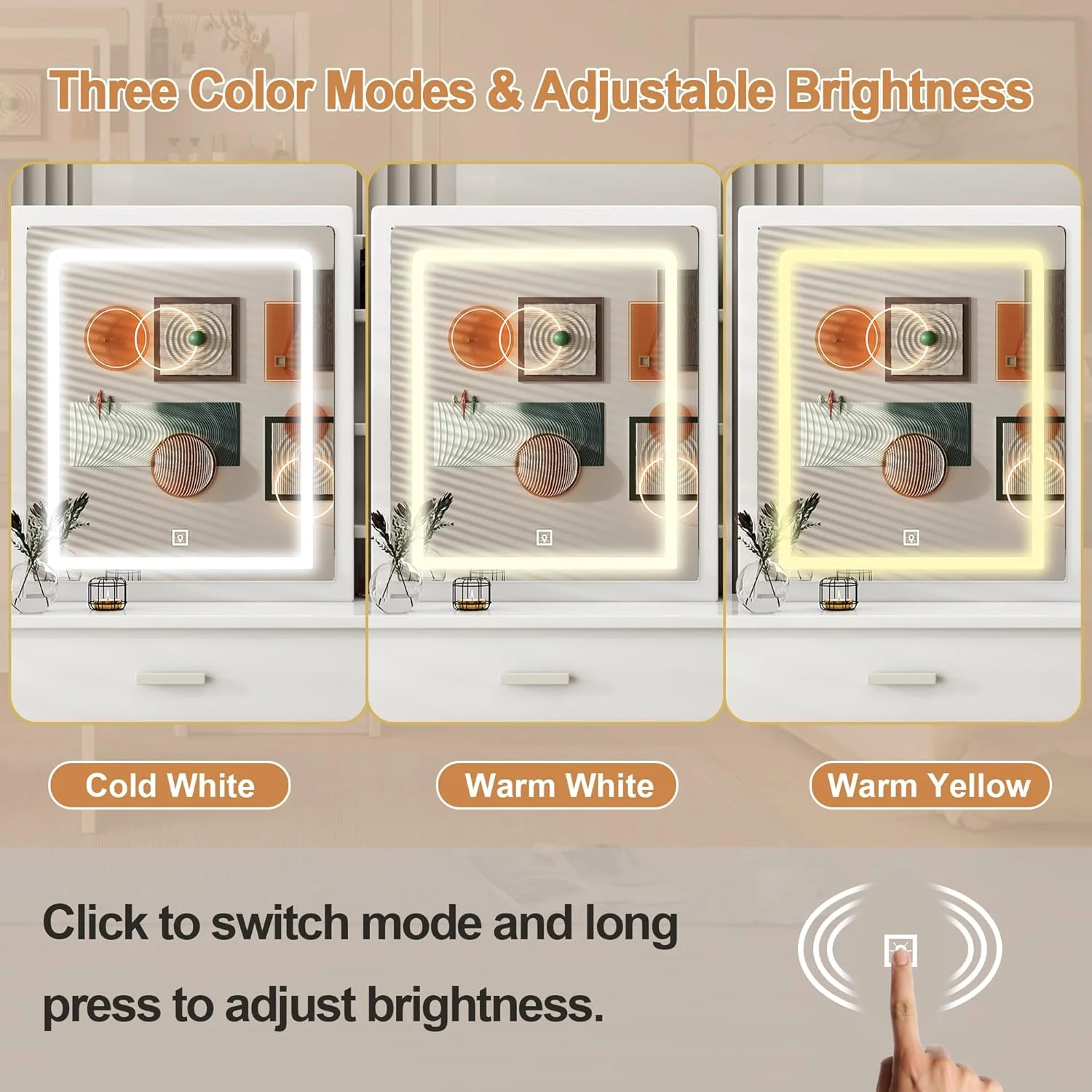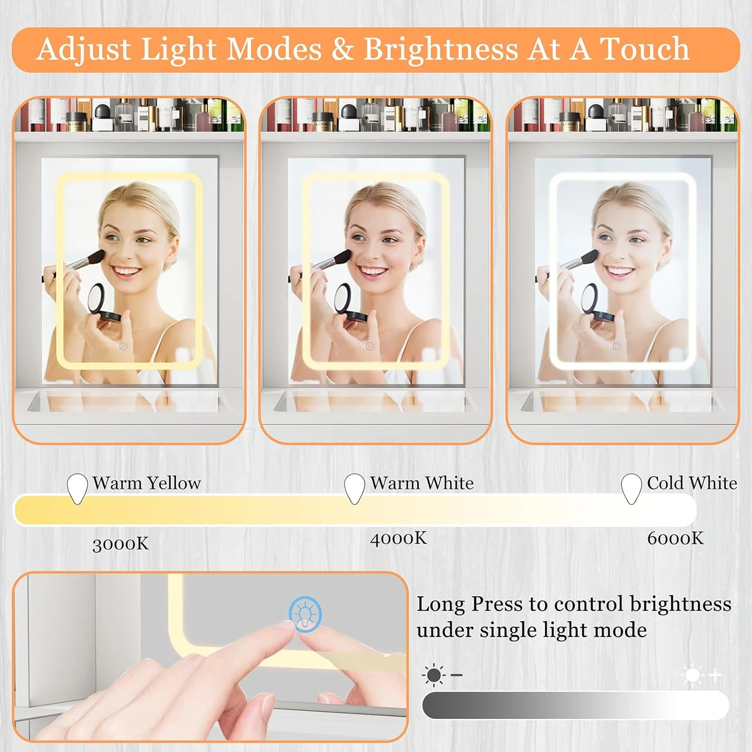 ✔️ 3-Tone LED Smart Mirror �?Natural(4500K)/Warm(3000K)/Cool(6000K) lighting mimics daylight/evening/office environments.