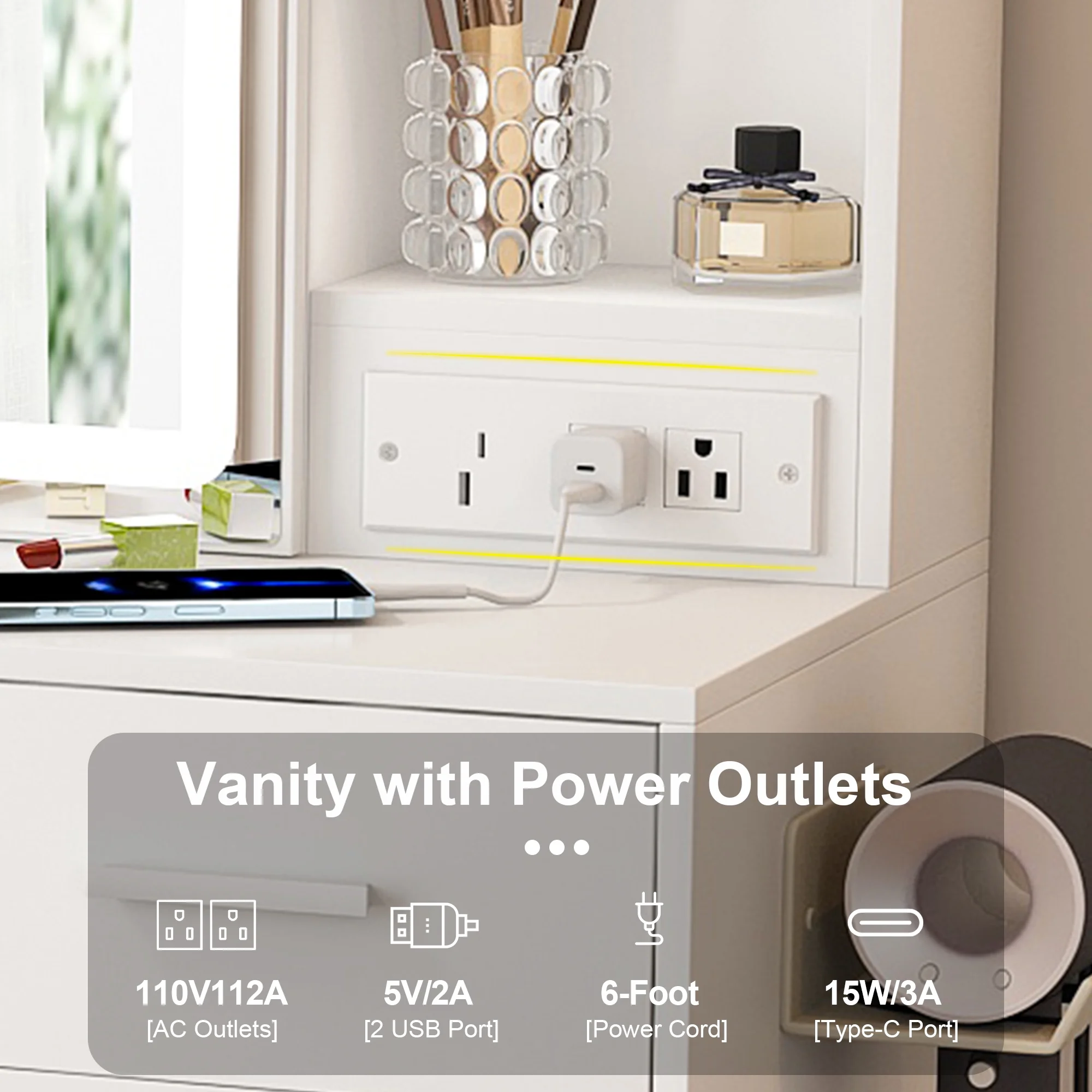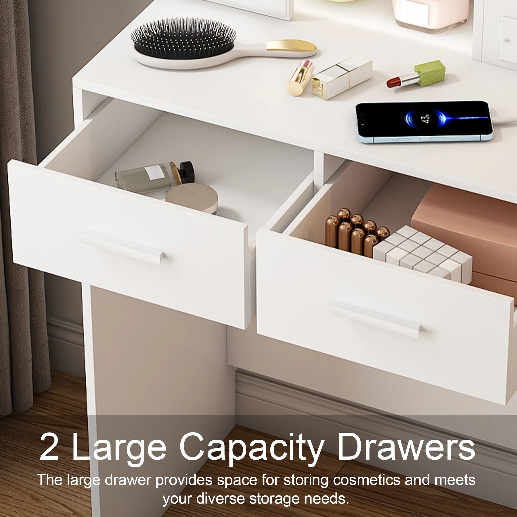 - 【Complete Vanity Set】Includes matching padded stool and ergonomic table surface