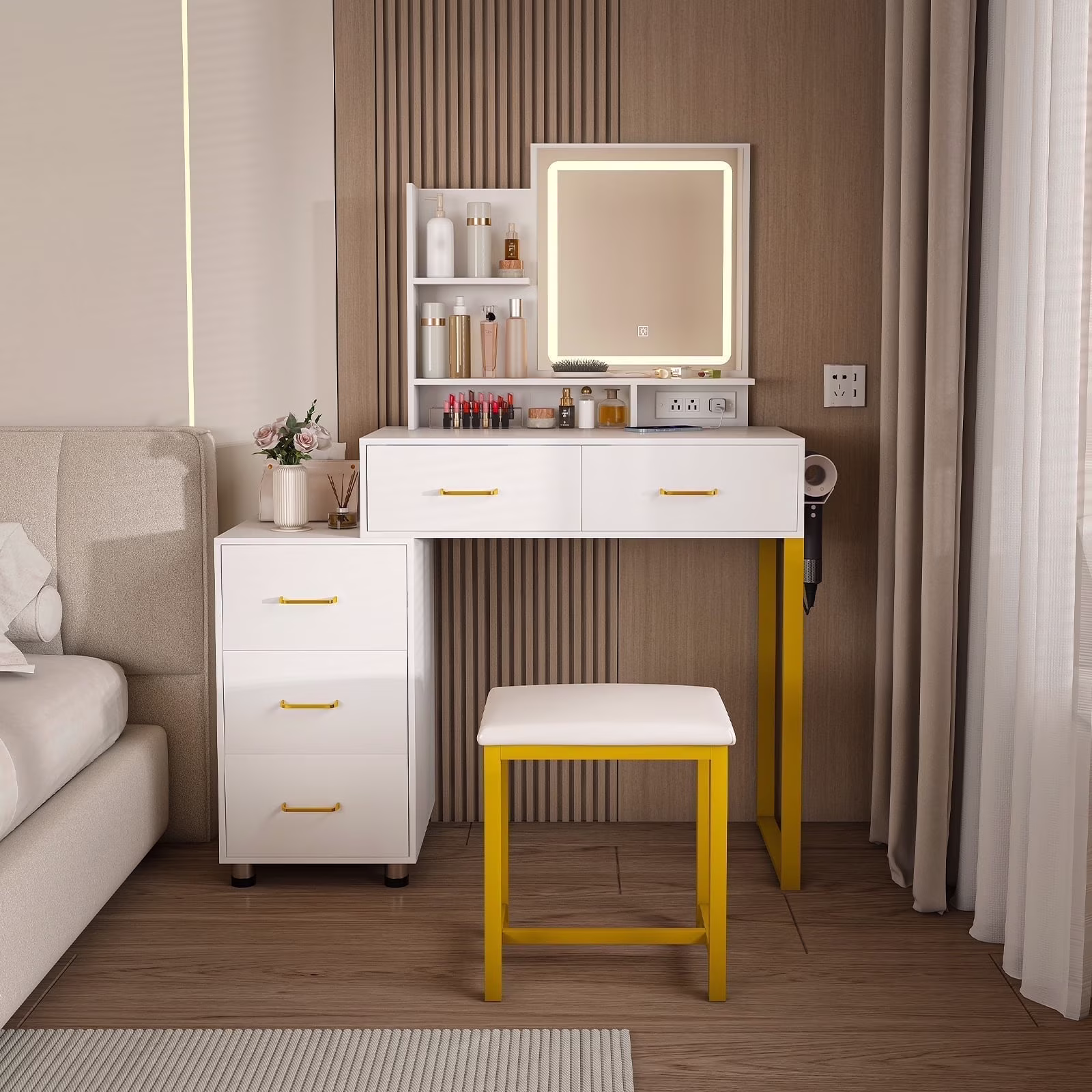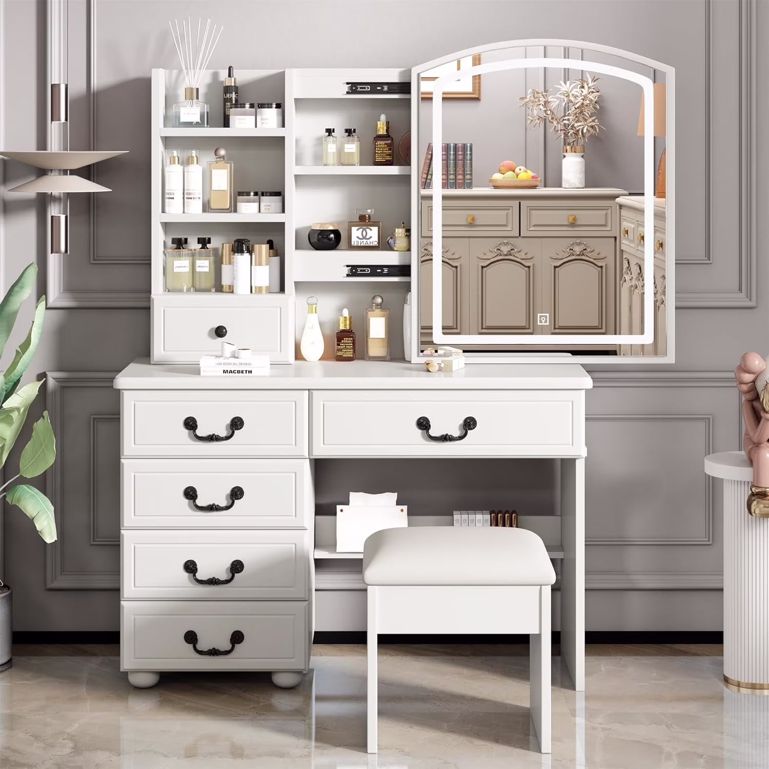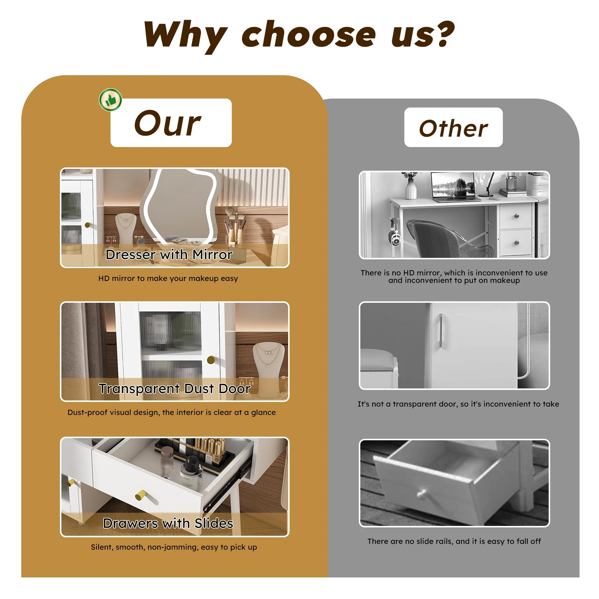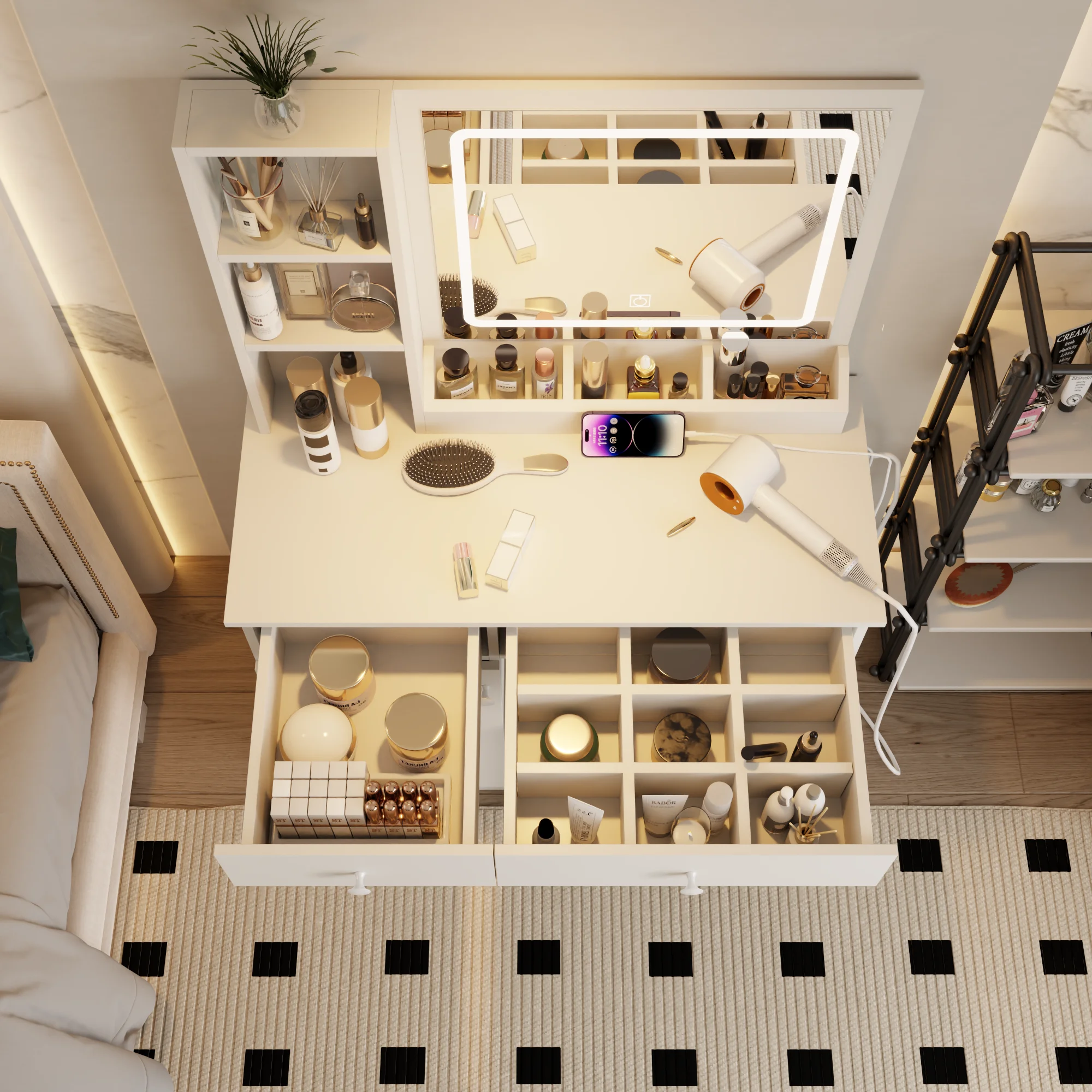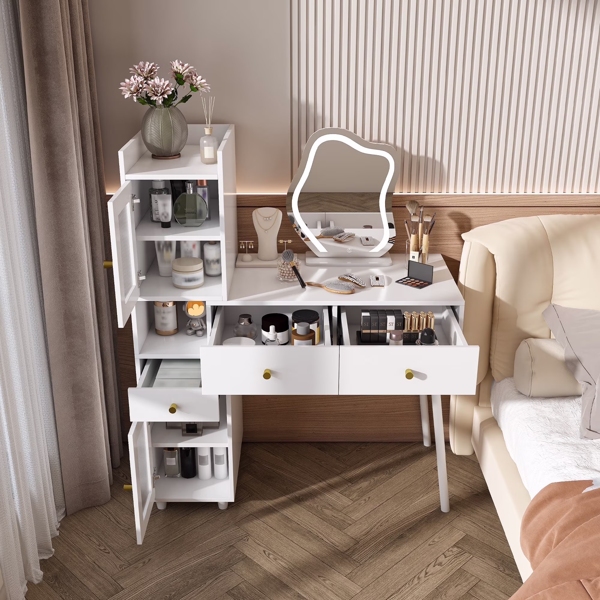- 【Smart Storage Solutions】Hidden compartments + multi-tier shelving system keeps cosmetics organized while preventing dust accumulation.