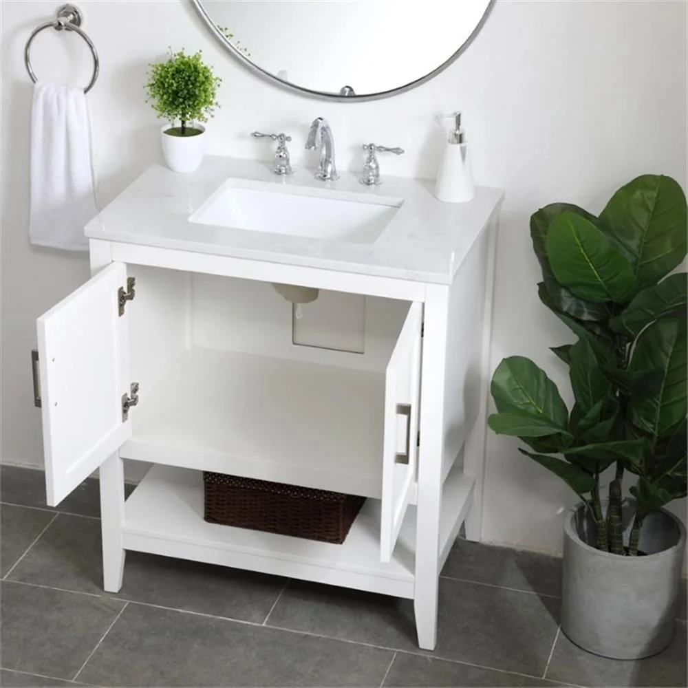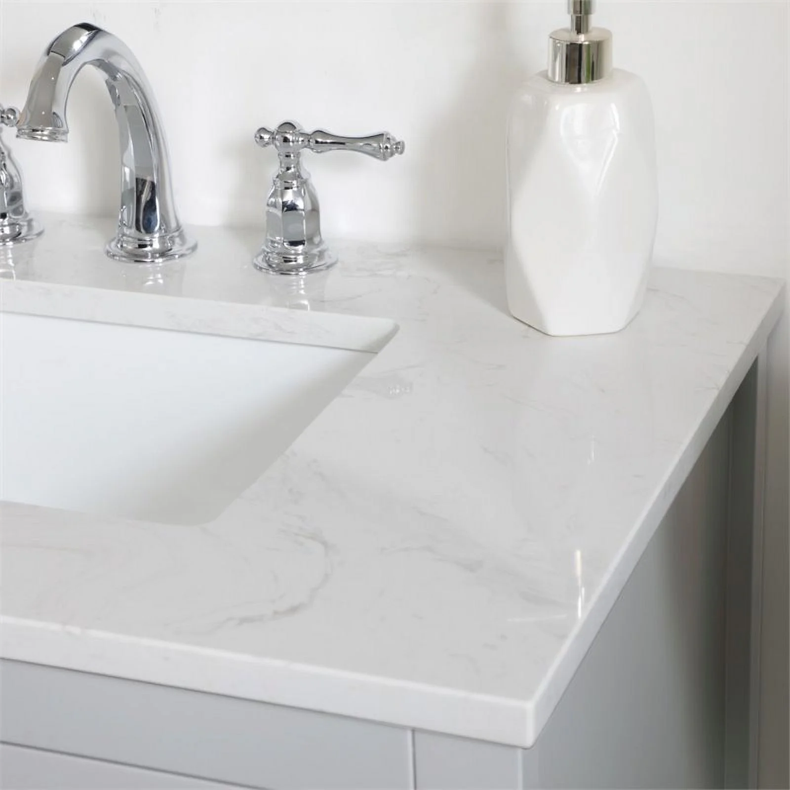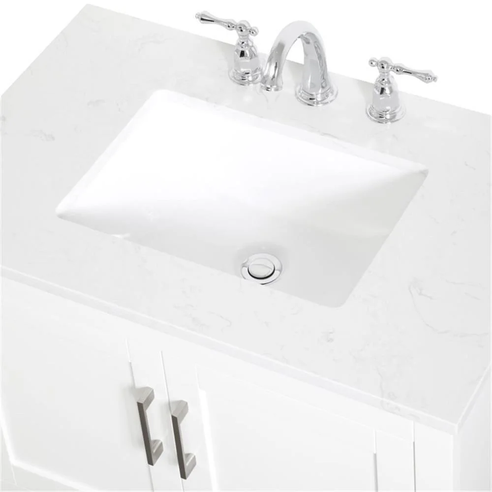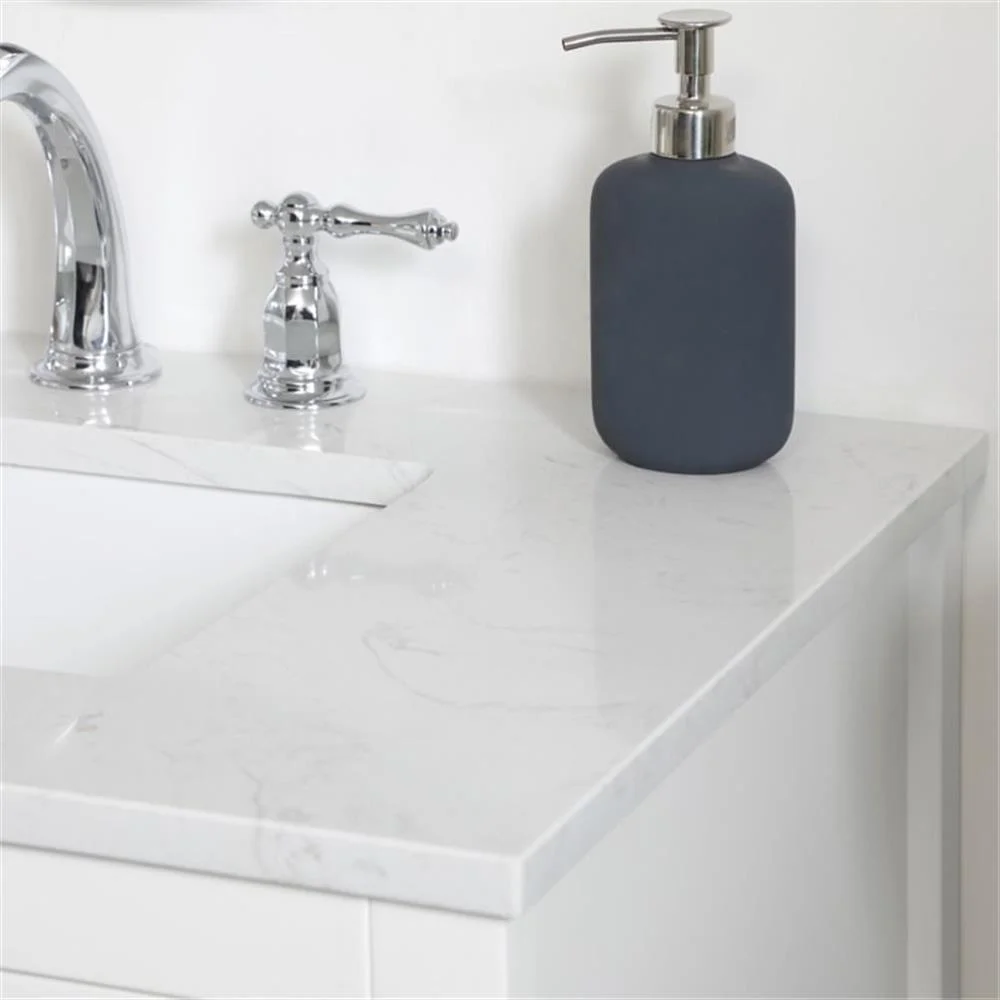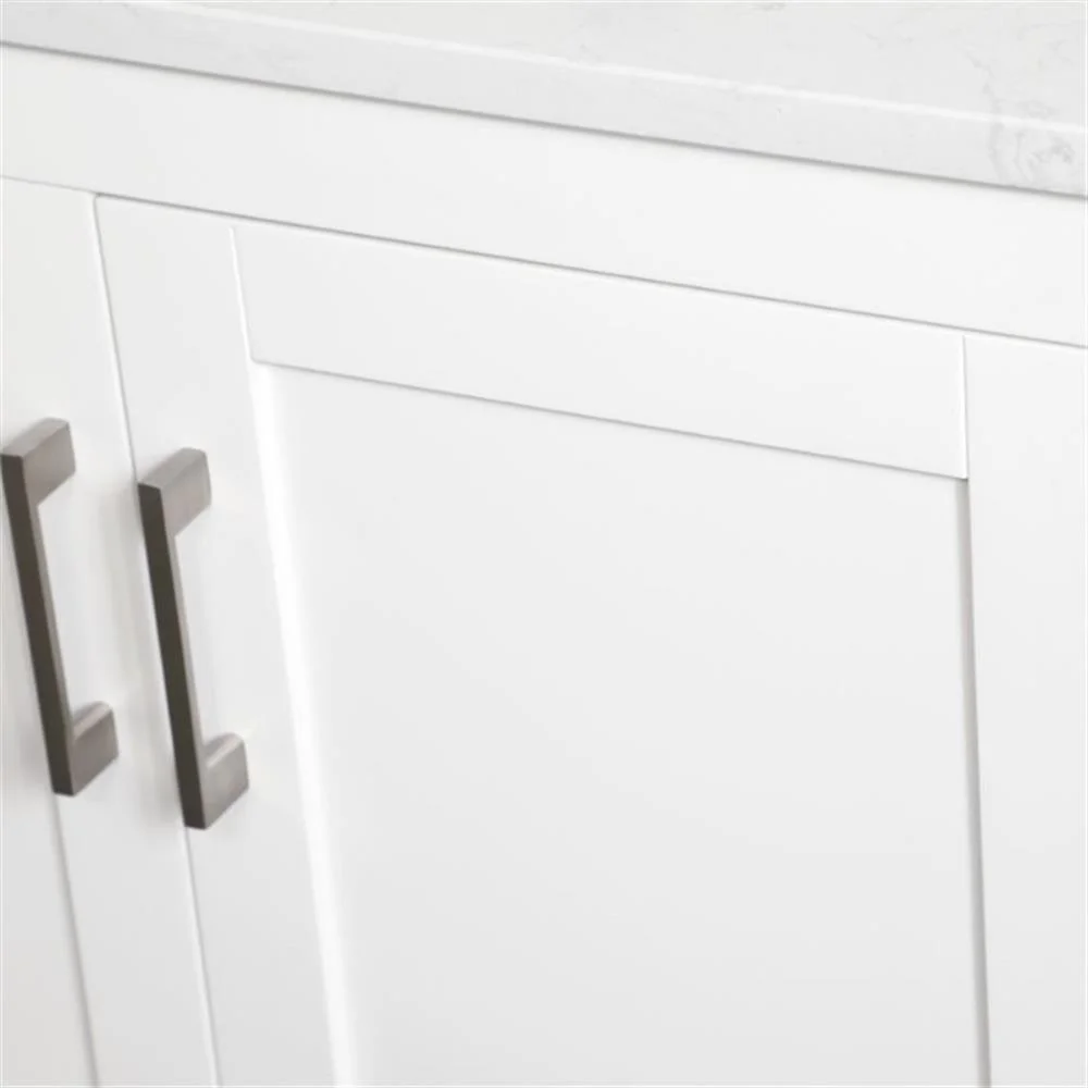 - White finish with Calacatta quartz countertop