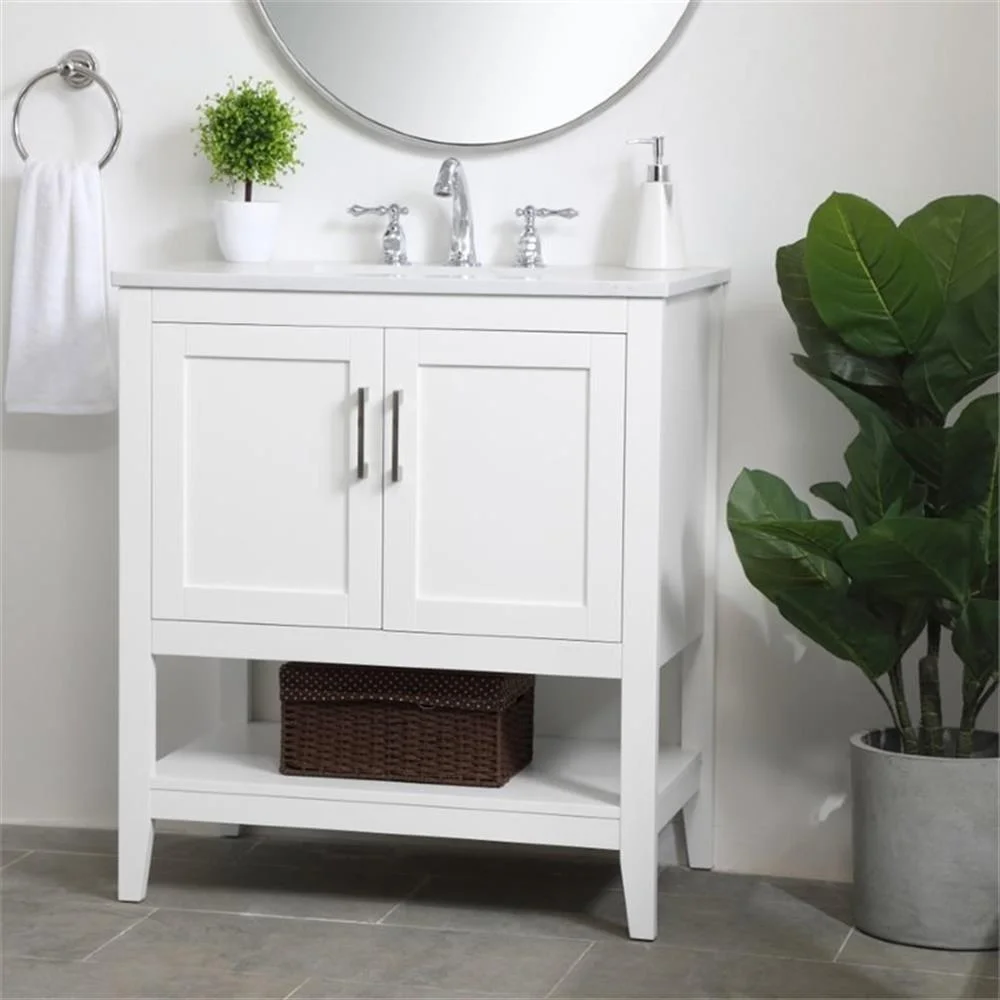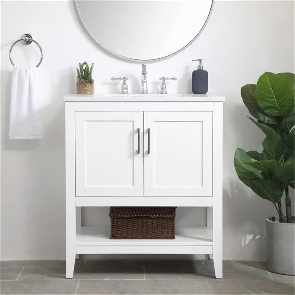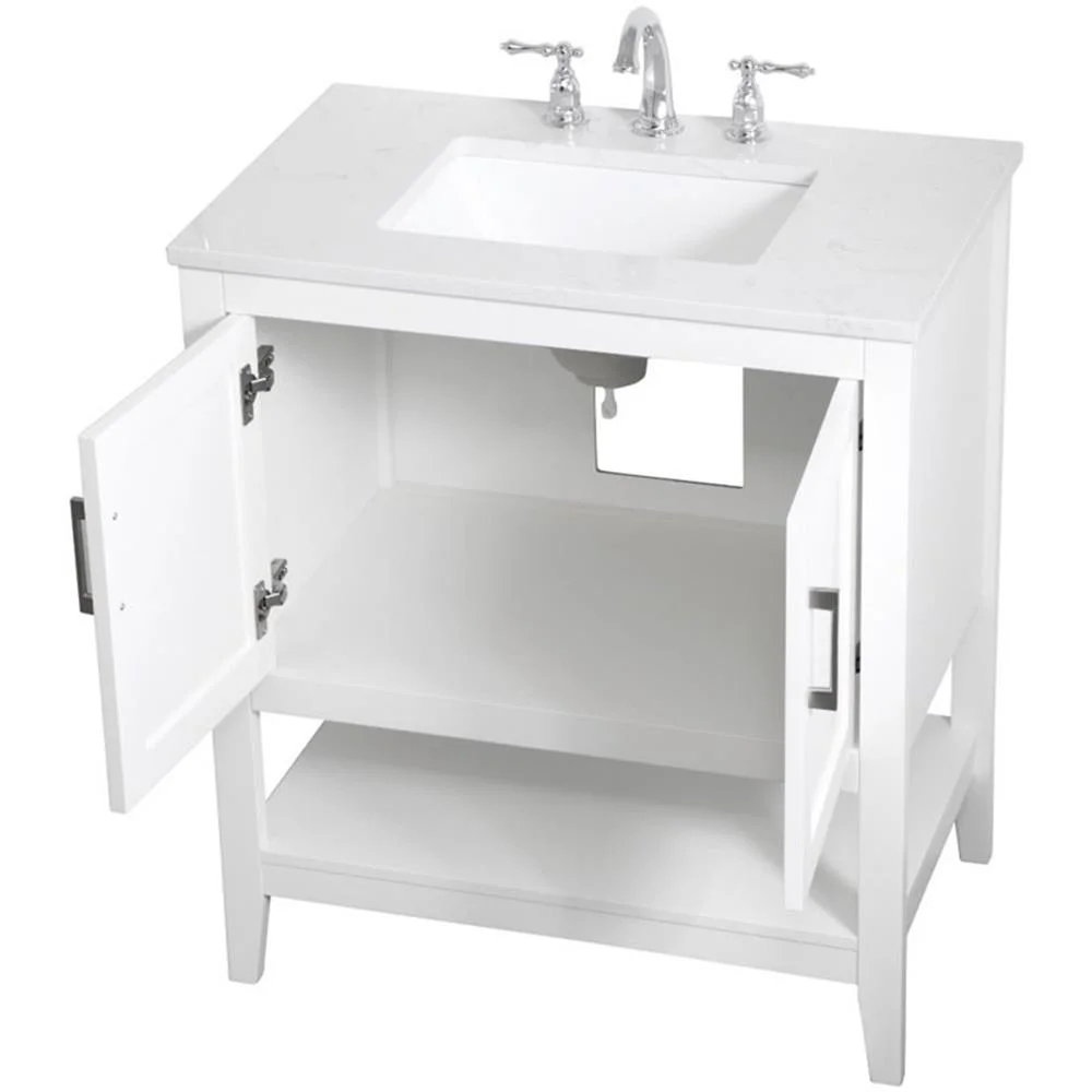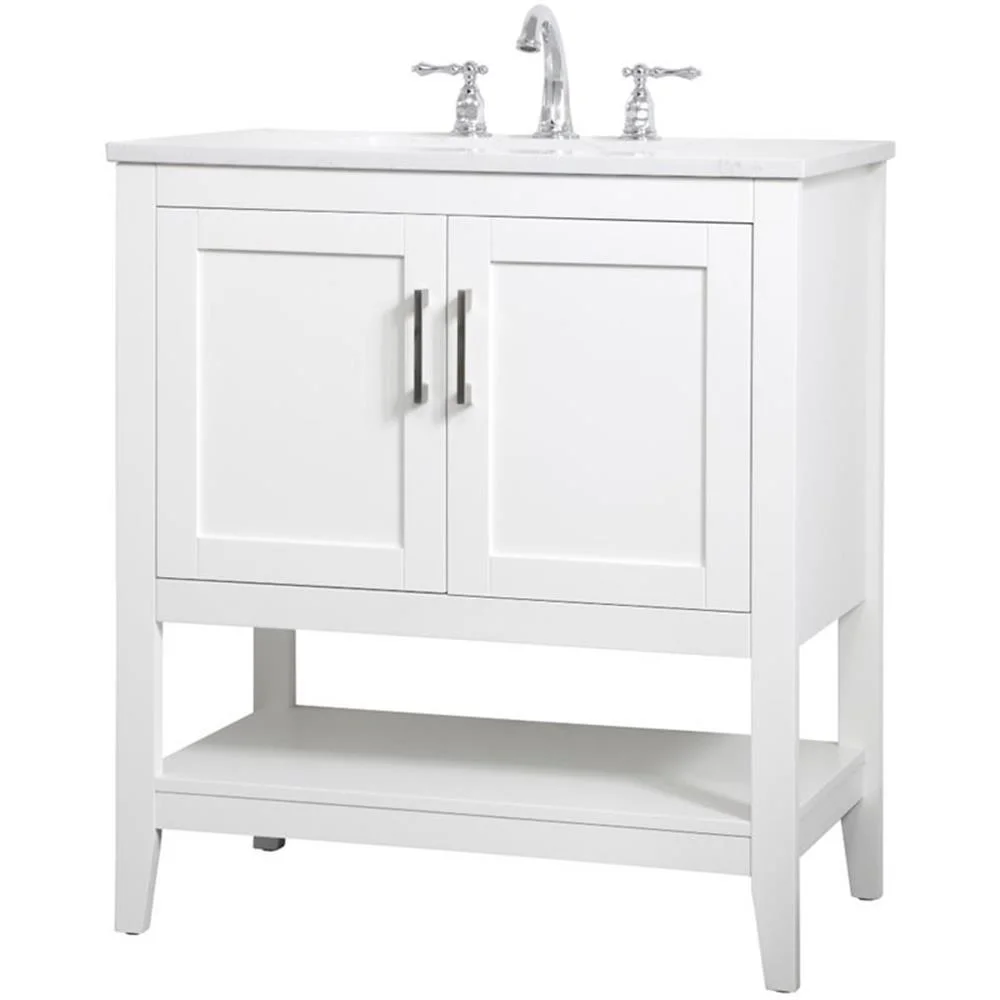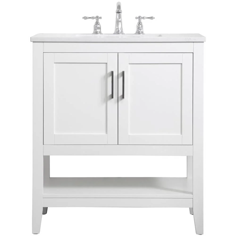 - White finish with Calacatta quartz countertop