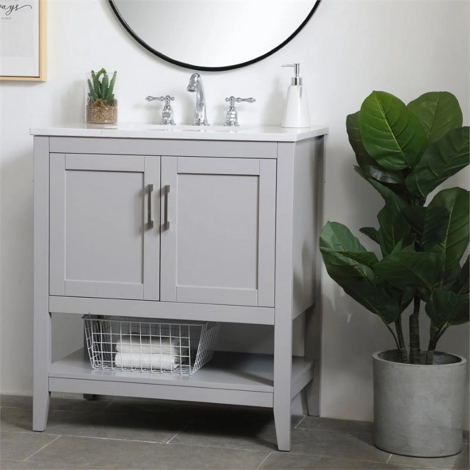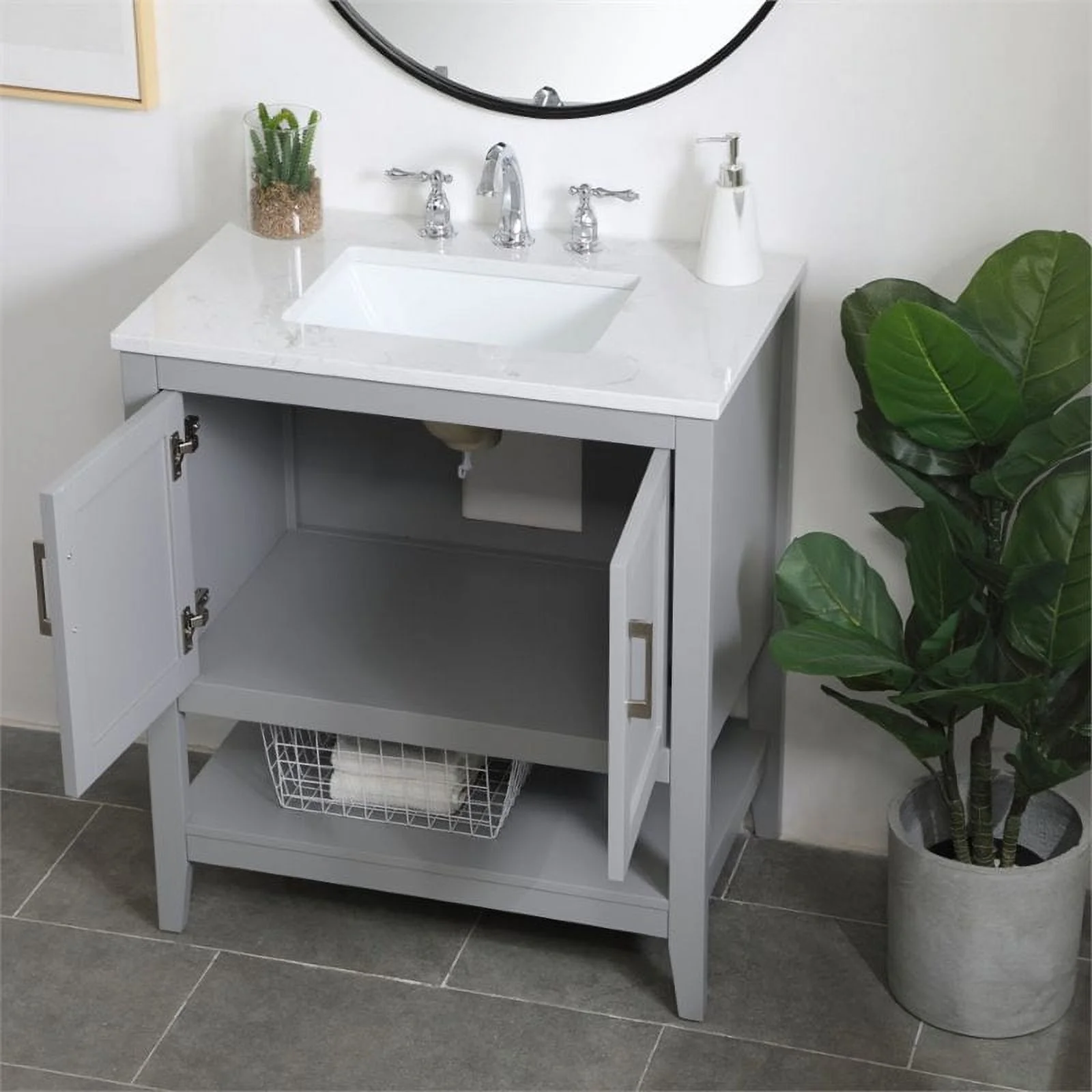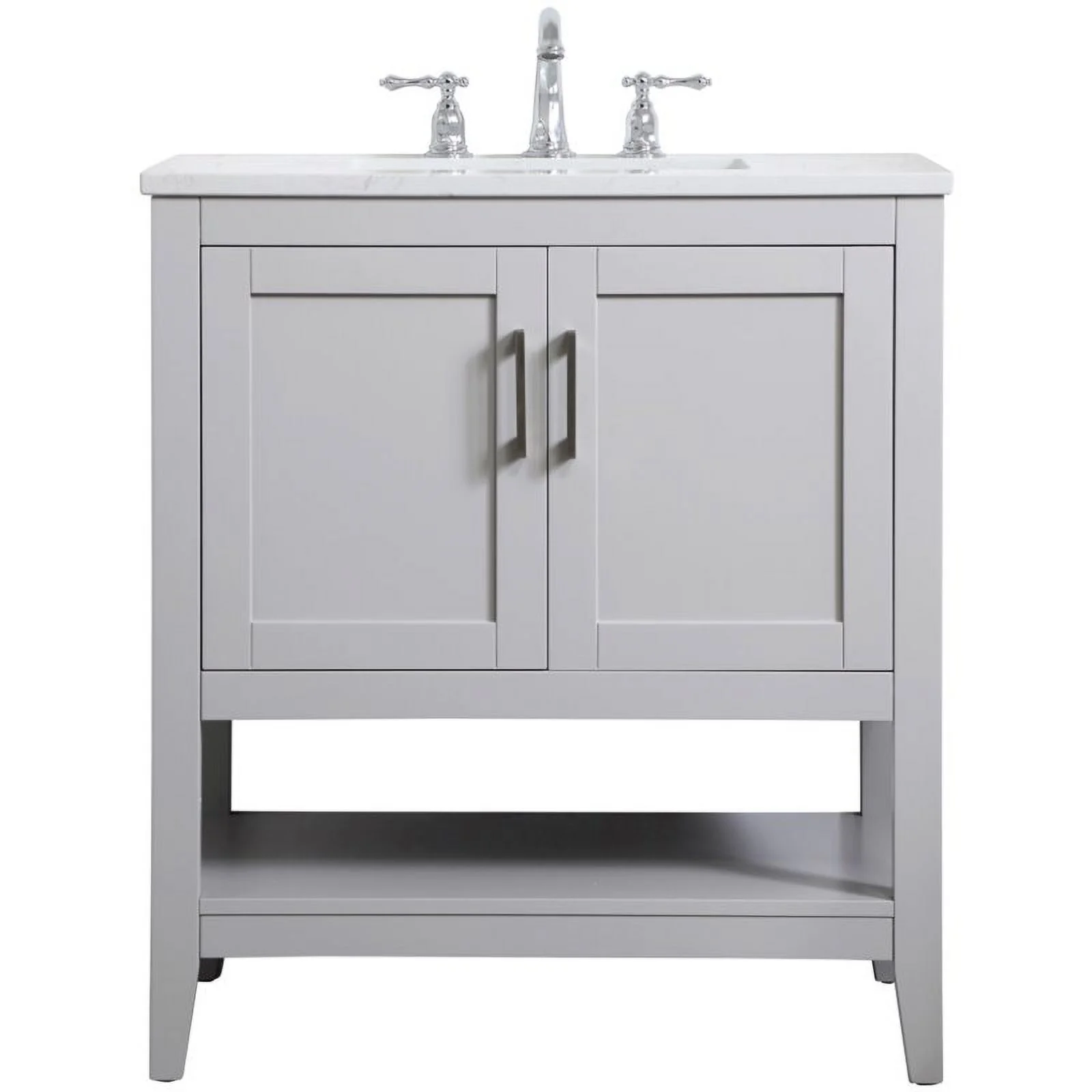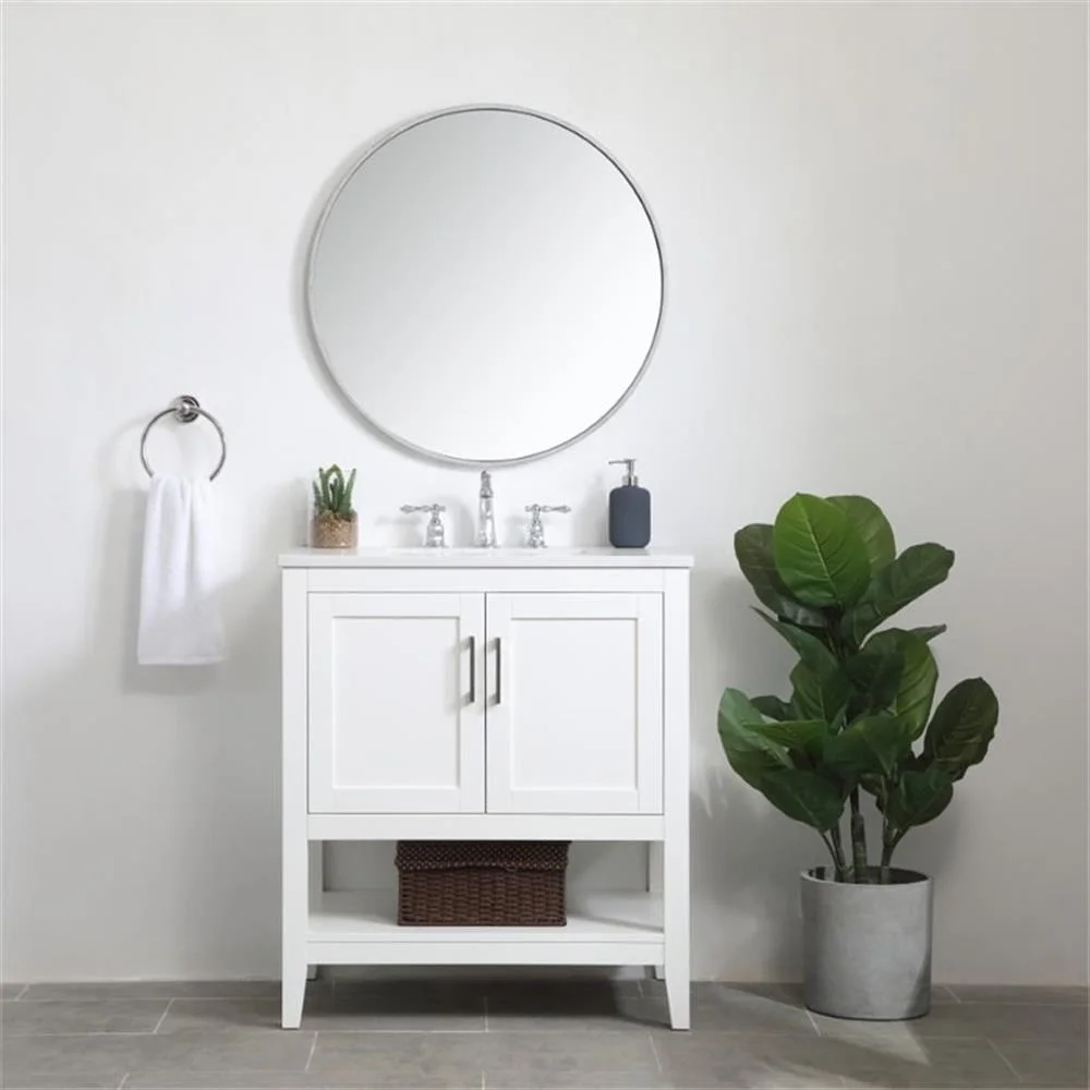 - White finish with Calacatta quartz countertop