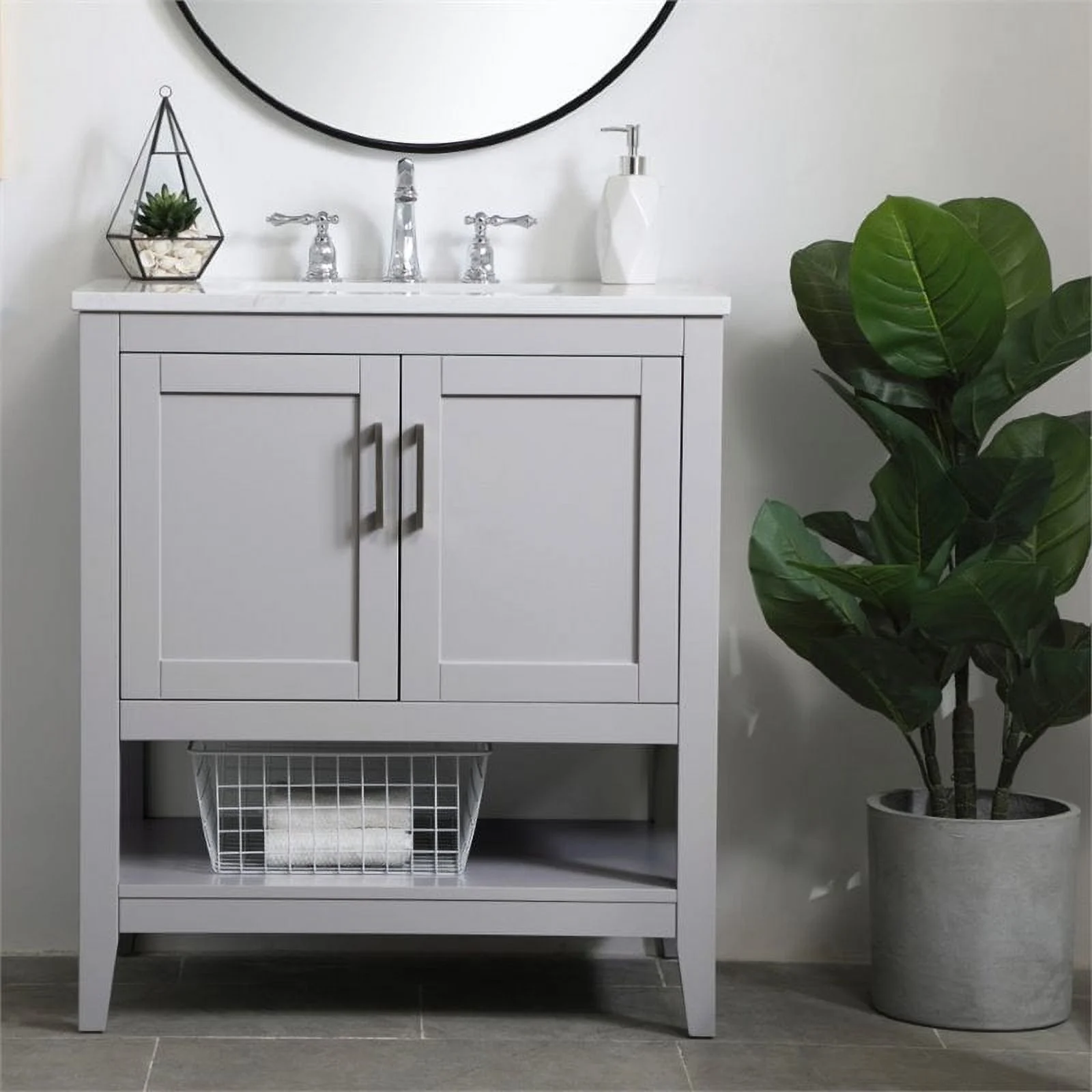 - Undermount porecelain sink is included
