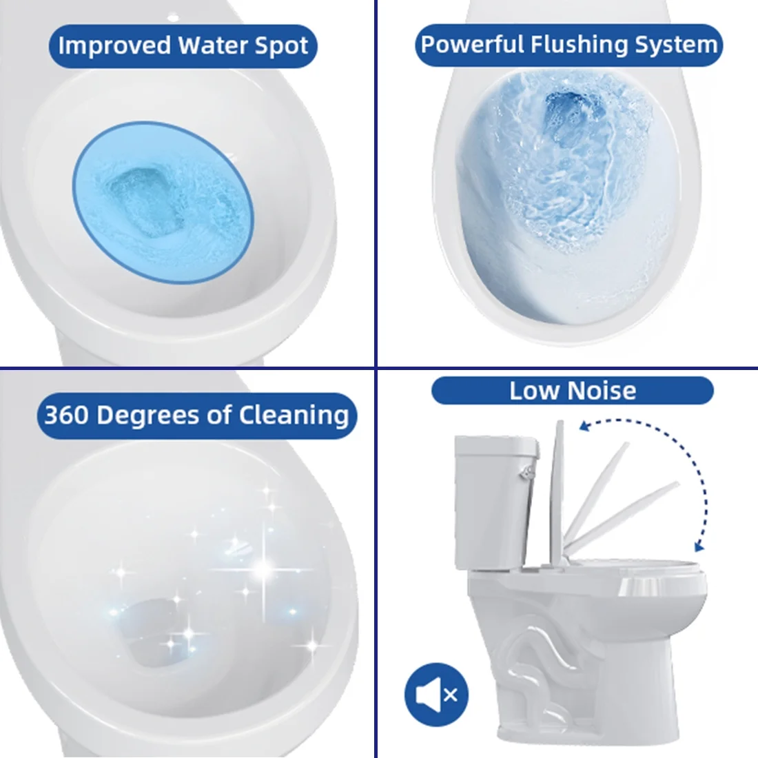 • Toilets Come with Soft Close Seat for Quiet: An elongated toilet seat allows you to close quietly. It will perfectly reduce the noise of nighttime toilet visits. Keep silent for your family