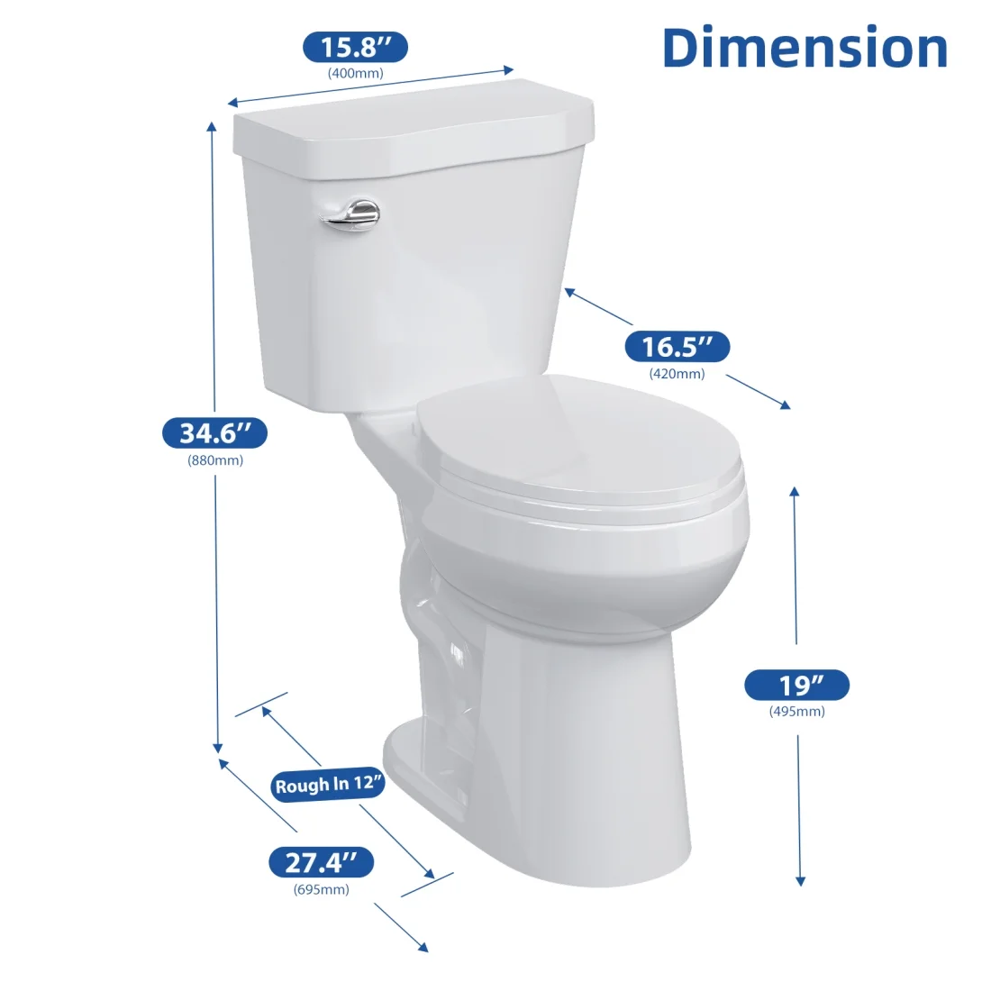 • Premium Elongated Toilet: This two-piece toilet for bathrooms is high-temperature fired, porcelainised with low glaze absorption. Comes with a push button flush. Package includes toilet, soft close toilet seat, pre-installed flush valve, premium wax ring, floor bolts, and installation instructions