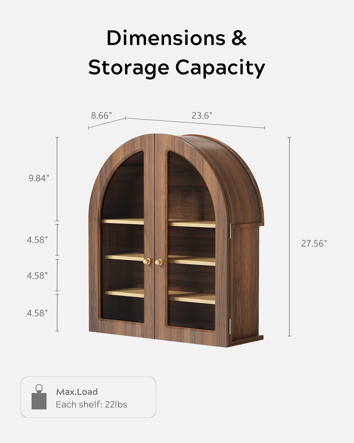 - Three adjustable shelf heights each accommodate items up to 22 lbs for customized storage