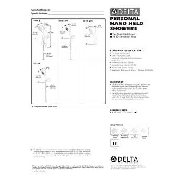 Delta Traditional Hand Shower Package Includes Hand Shower, Holder, and Hose, Available in Various Colors: