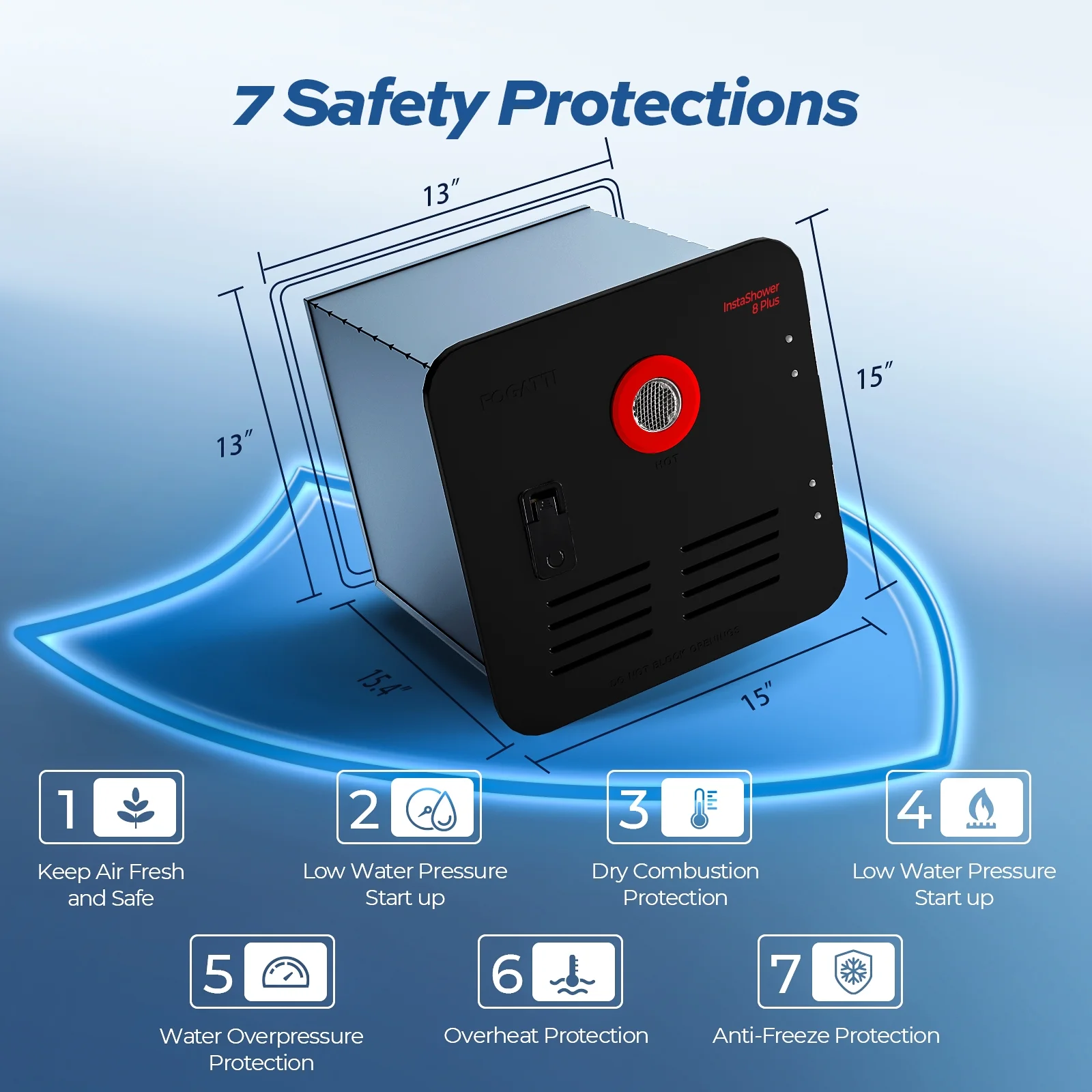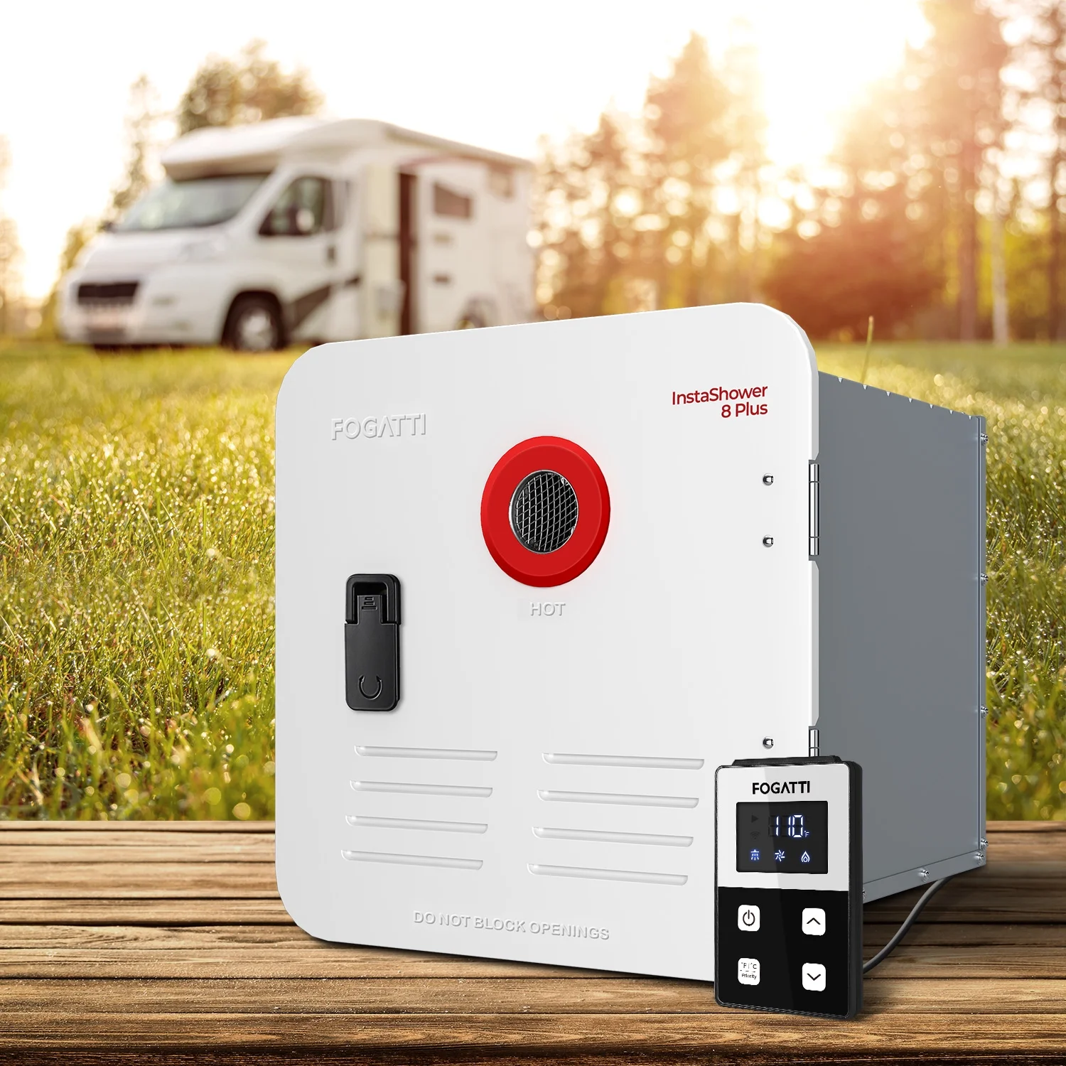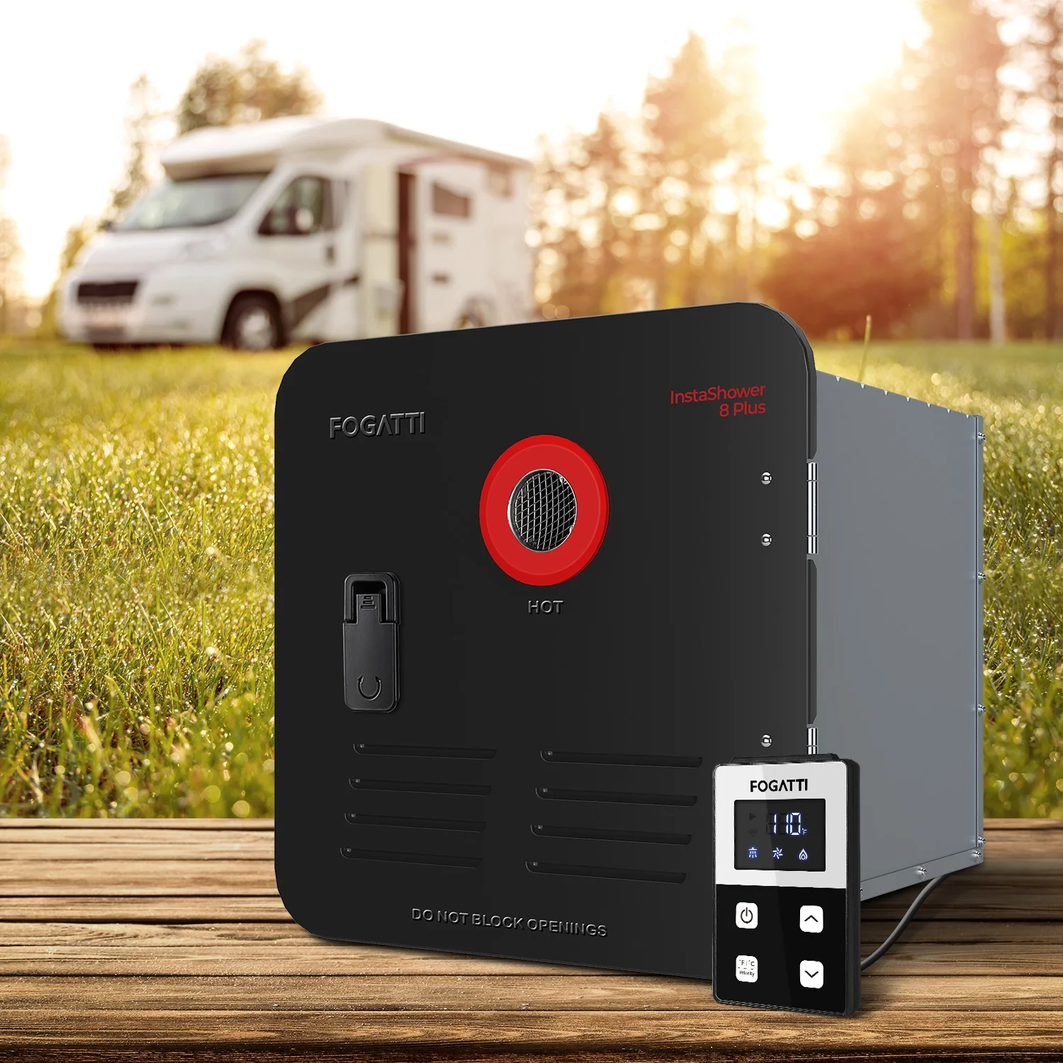 - Fogatti has always thought of you, with a pressure relief valve built into the product, so you don't have to buy and install it separately. And it also comes with a 15 x 15 door and an intelligent remote controller up to 2 meters long.