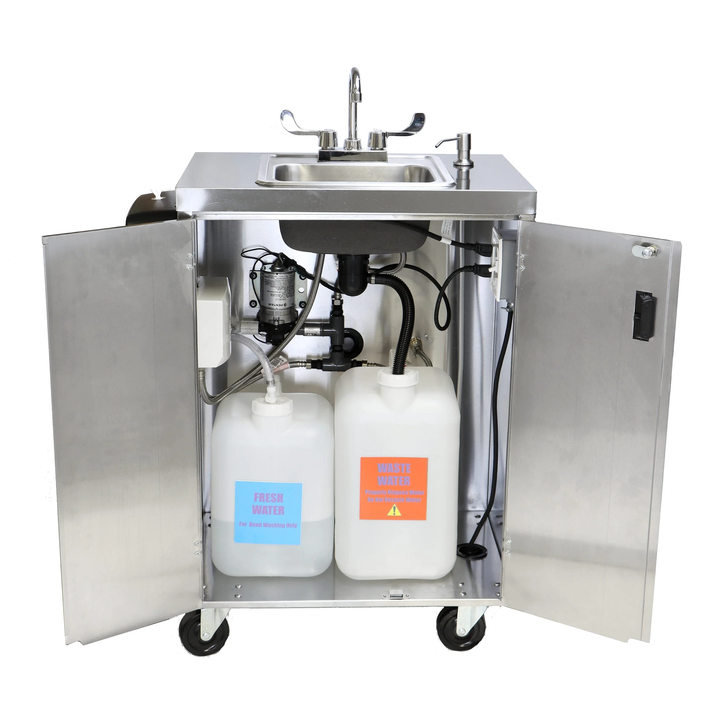 • Electric Portable Sink, with Hot Water Heater and Pump - Movable Steel Hand Washing Sink