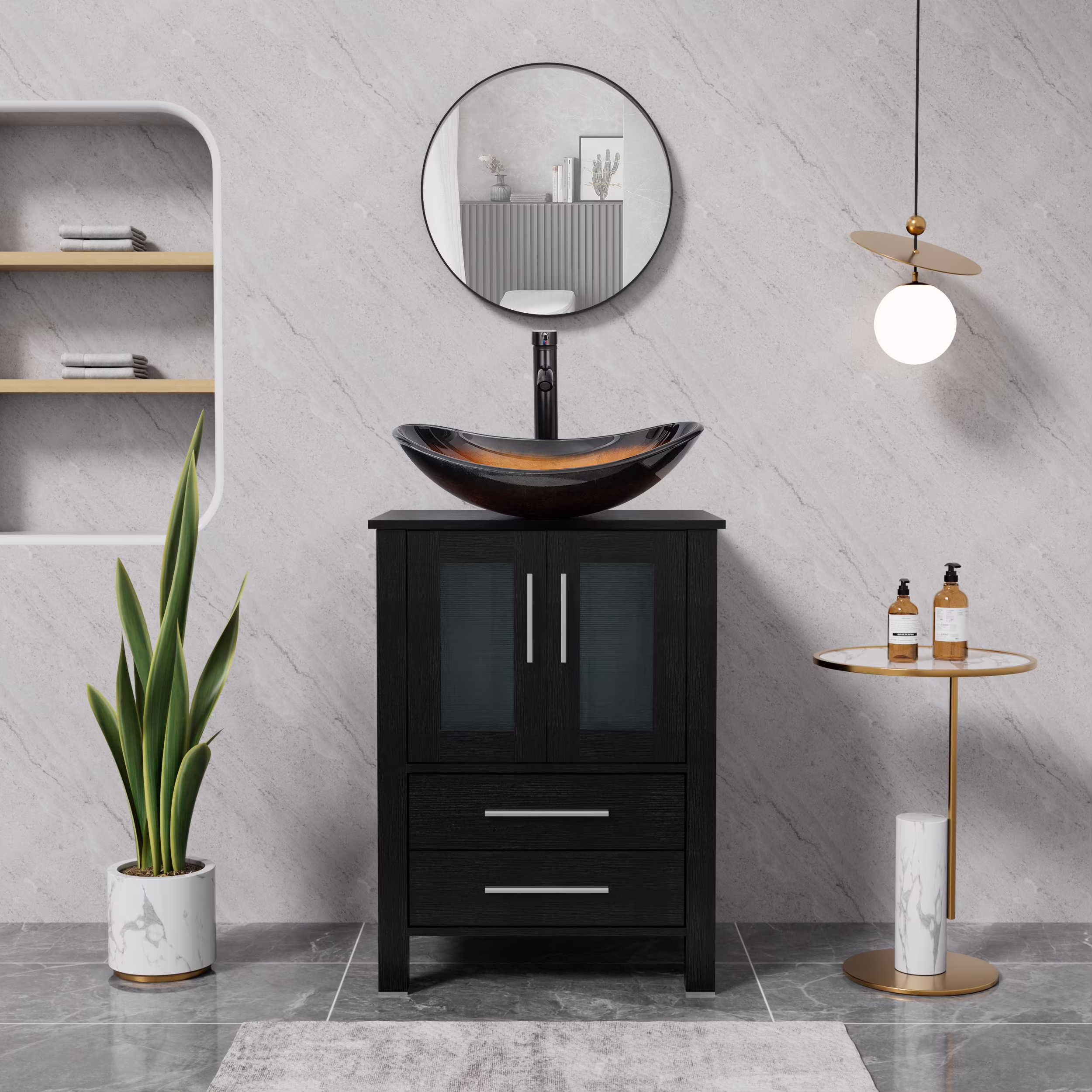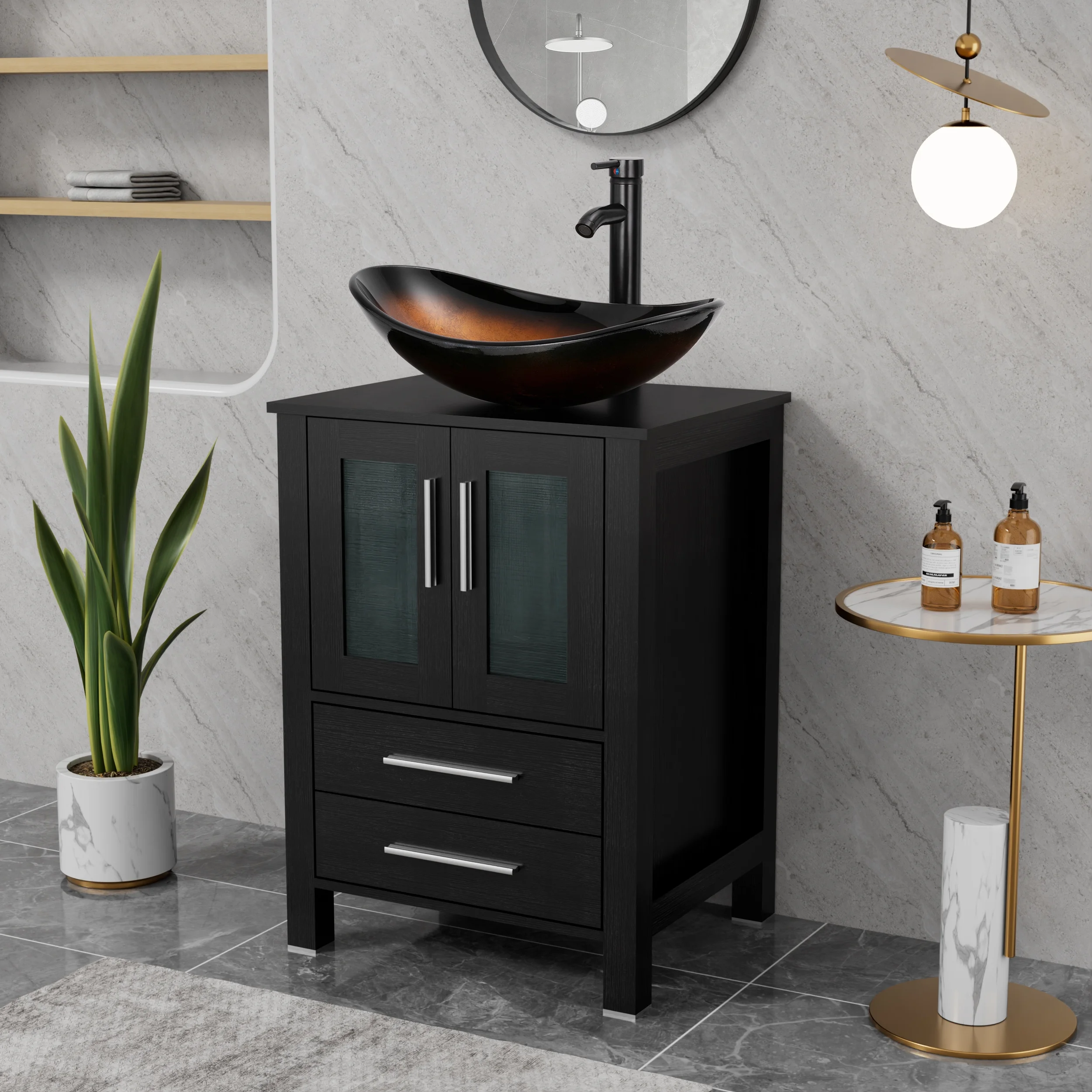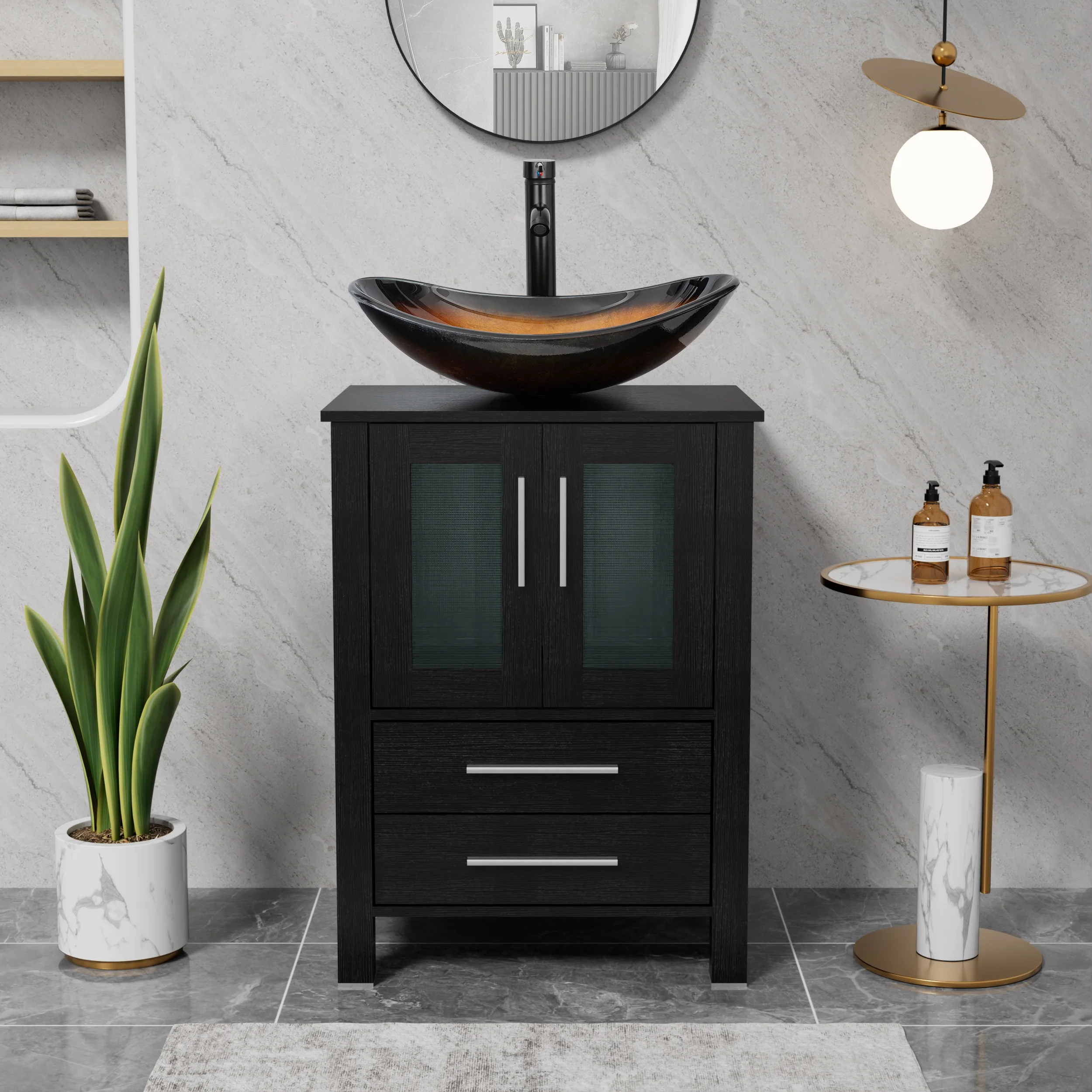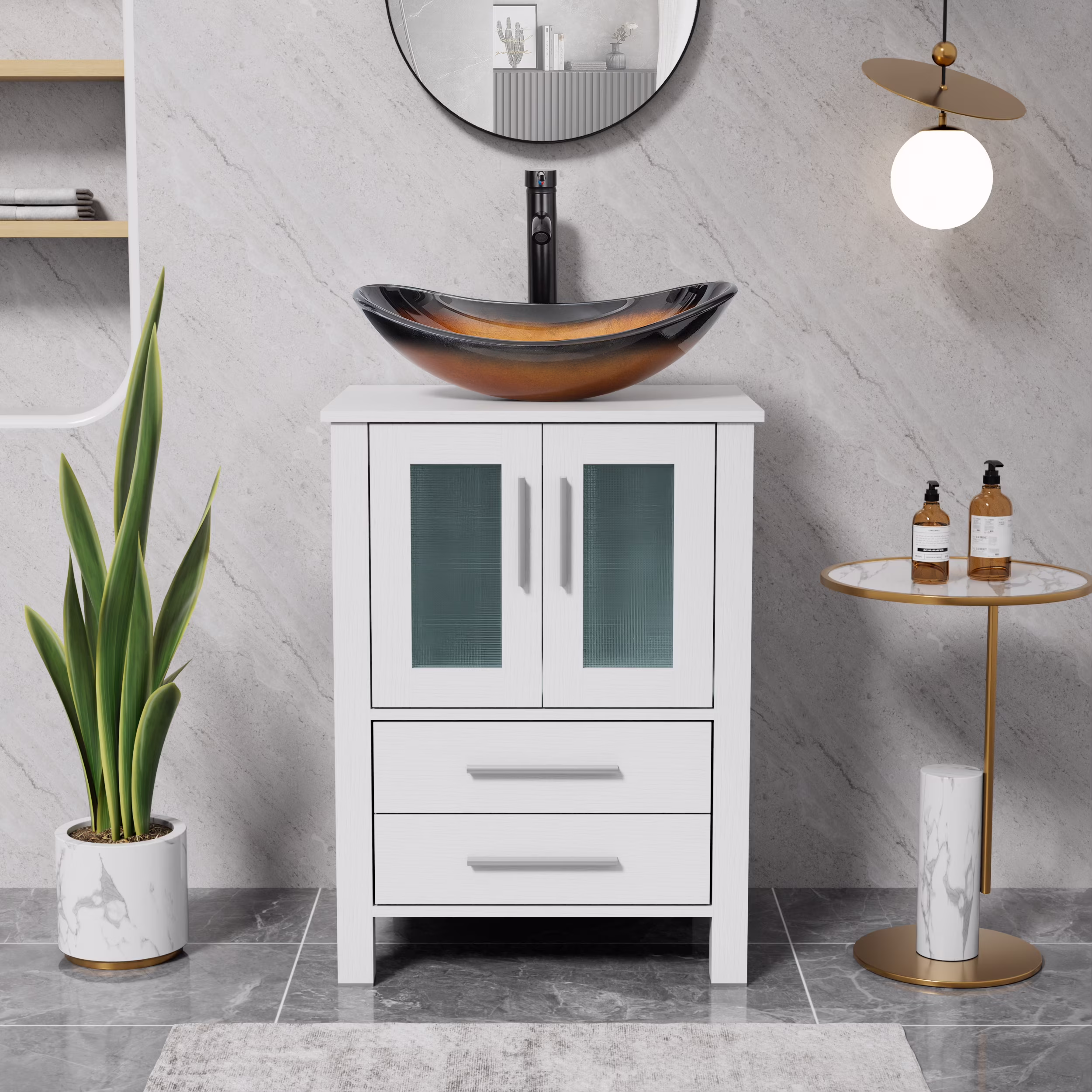 - Multiple Compartments: The bathroom storage organizer features various compartments, 2-door cabinet, and 2 gliding drawers providing ample storage options for your bathroom essentials;